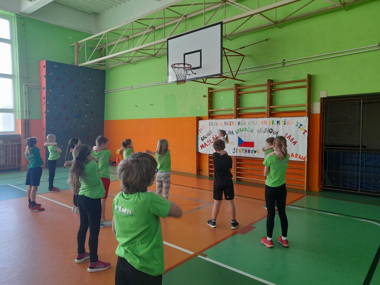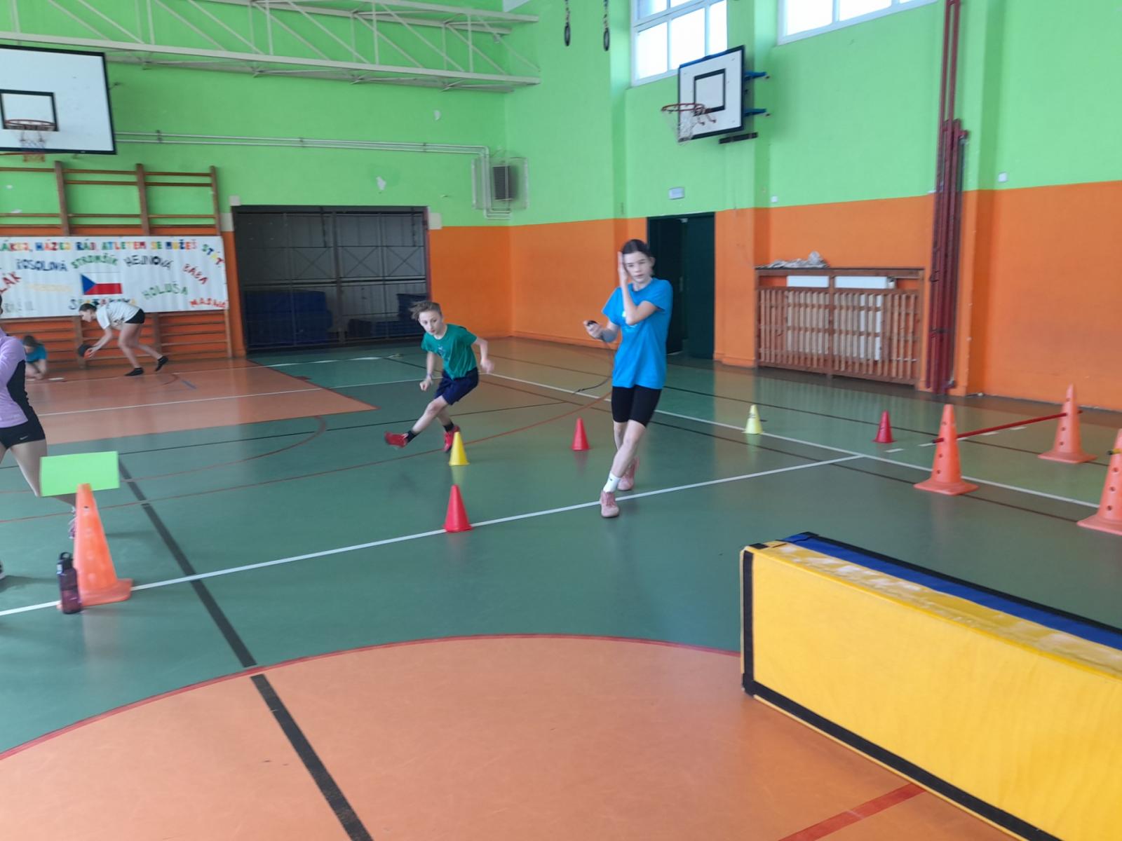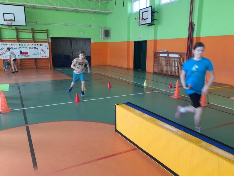 Ve středu jsme již potřetí závodili v atletickém pětiboji. Překážková dráha, hod oštěpem, skok z místa, hod medicinbalem a člunkový běh. Disciplíny jsme již znali a také jsme poctivě trénovali. Nejdříve jsme se zahřáli při společné rozcvičce a pak jsme se pustili do bojů o medaile. Tak uvidíme, snad to cinkne.