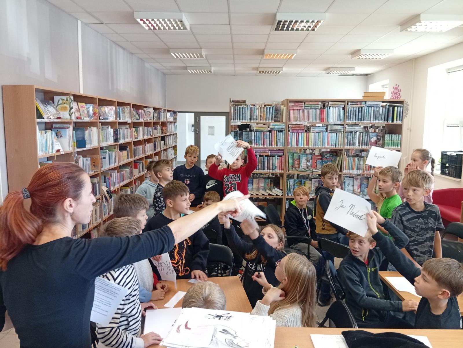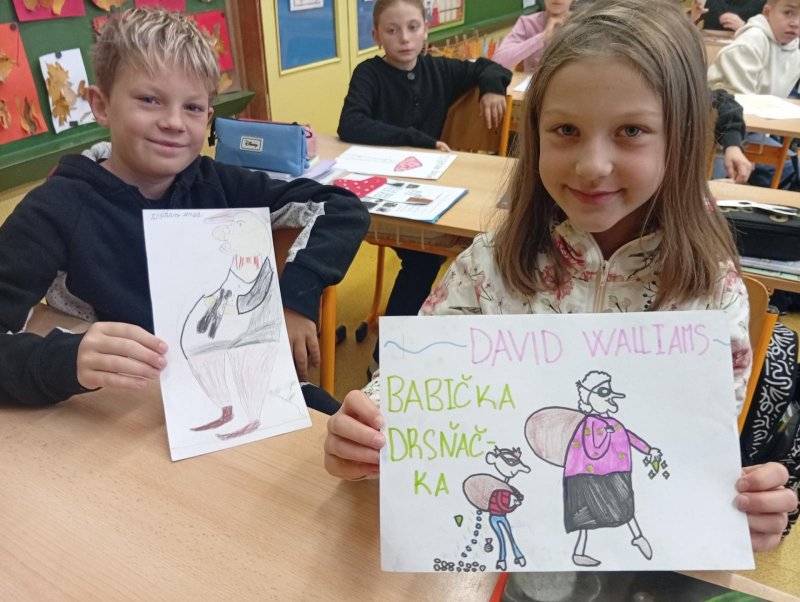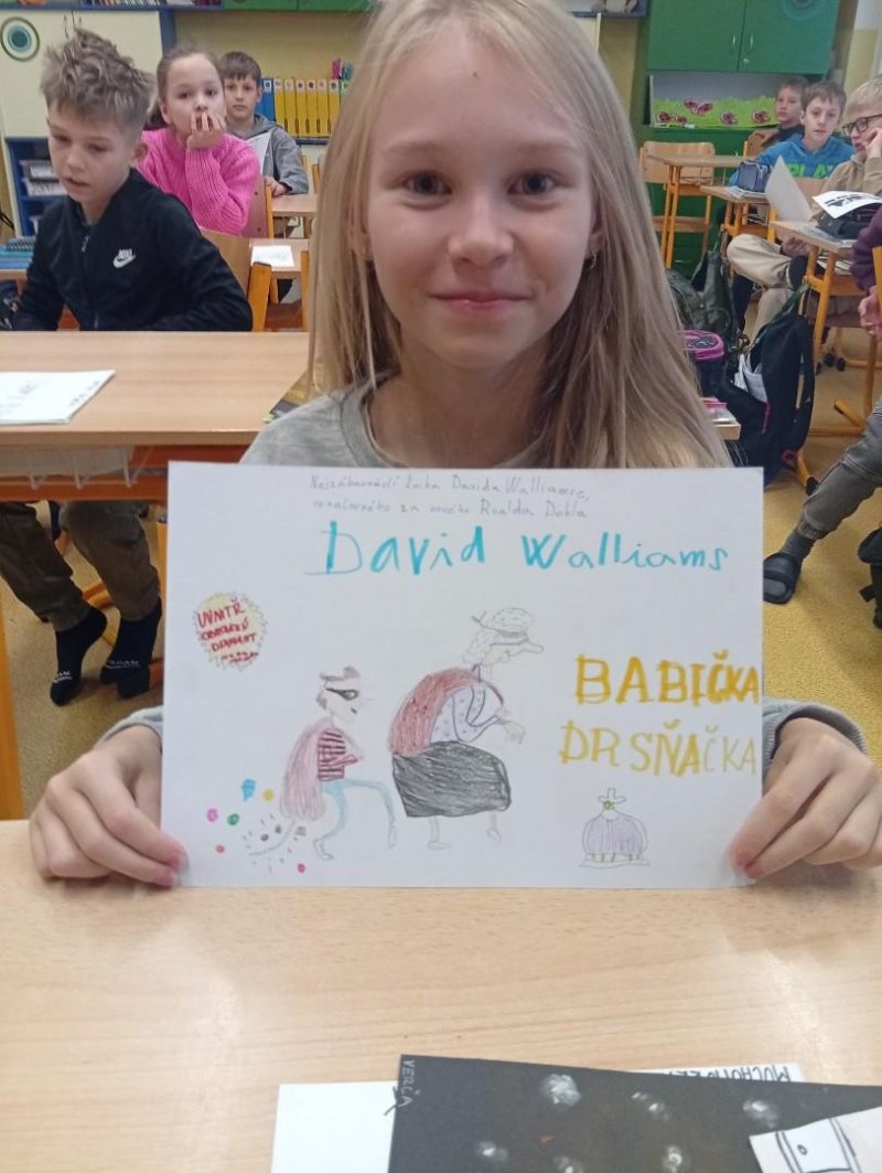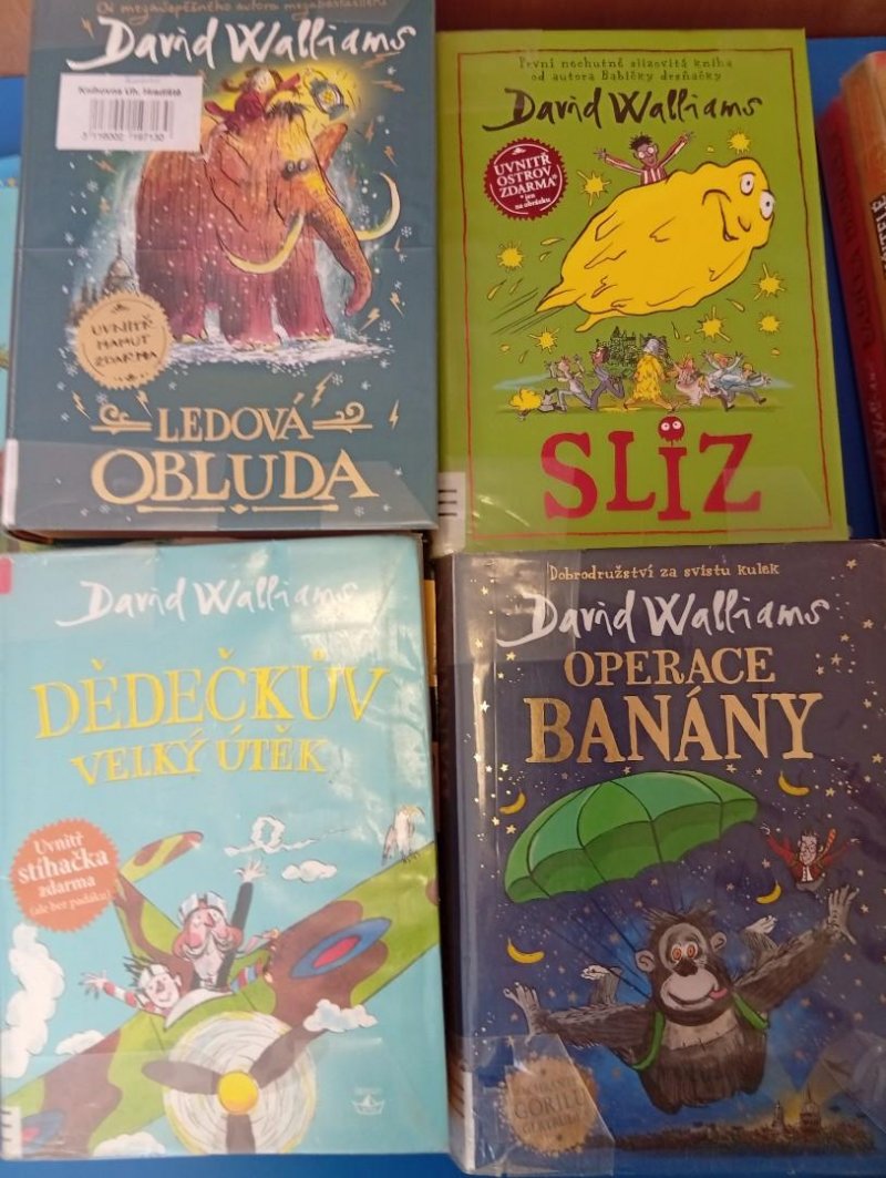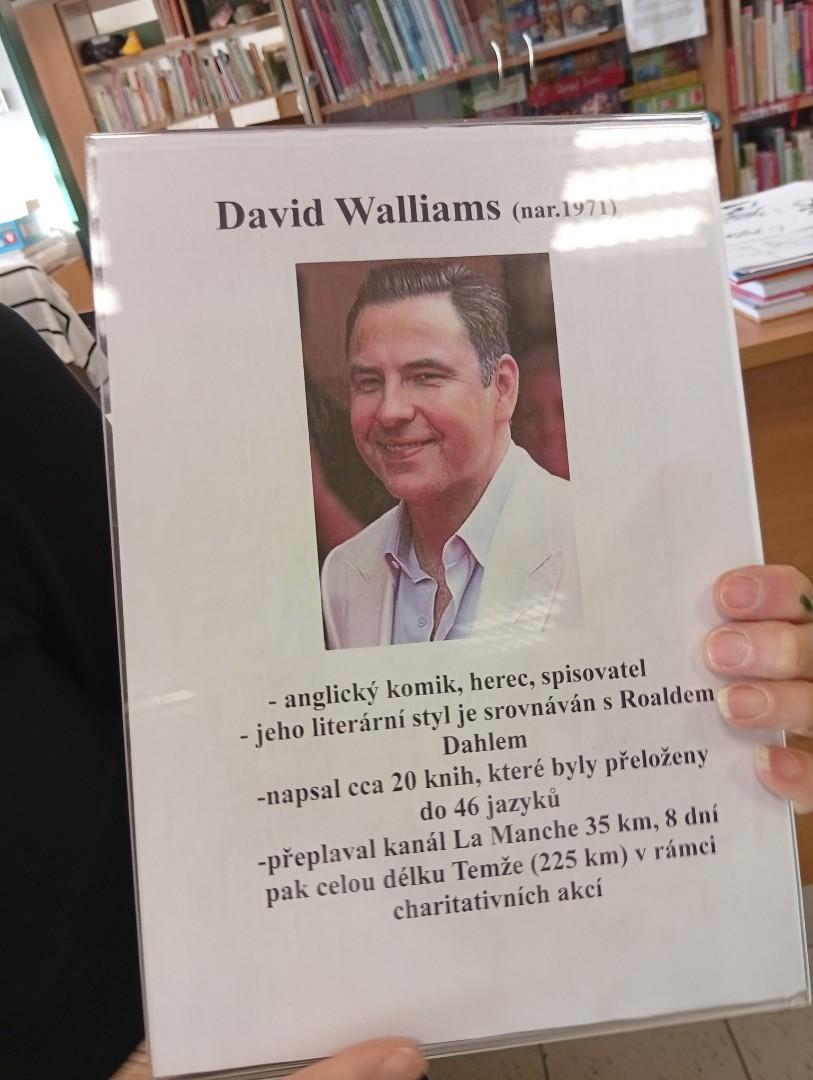 Po přečtení knihy Babička drsňačka jsme navštívili místní pobočku Kasárna, kde nám paní knihovnice připravila opět krásný a zábavný program o této knize, ale také o panu spisovateli Davidu Walliamsovi. Ten je nejen spisovatelem, ale také hercem a komikem a dokonce velkým sportovcem! Přeplaval totiž nejen kanál La Manche za 8 dní, ale také celou délku řeky Temže - 225 km! A to vše v rámci charitativních akcí.