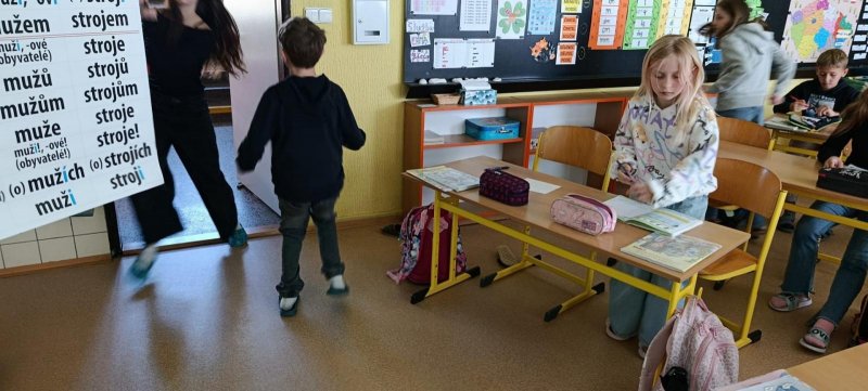 Dnes jsme procvičovali mluvnické kategorie u podstatných jmen. Už umíme také téměř všechny vzory všech rodů. Jejich určování jsme dnes procvičovali v běhu, hned nám to lépe myslelo. Sice jsme nestihli všech osm slov, ale i tak bylo práce dost.