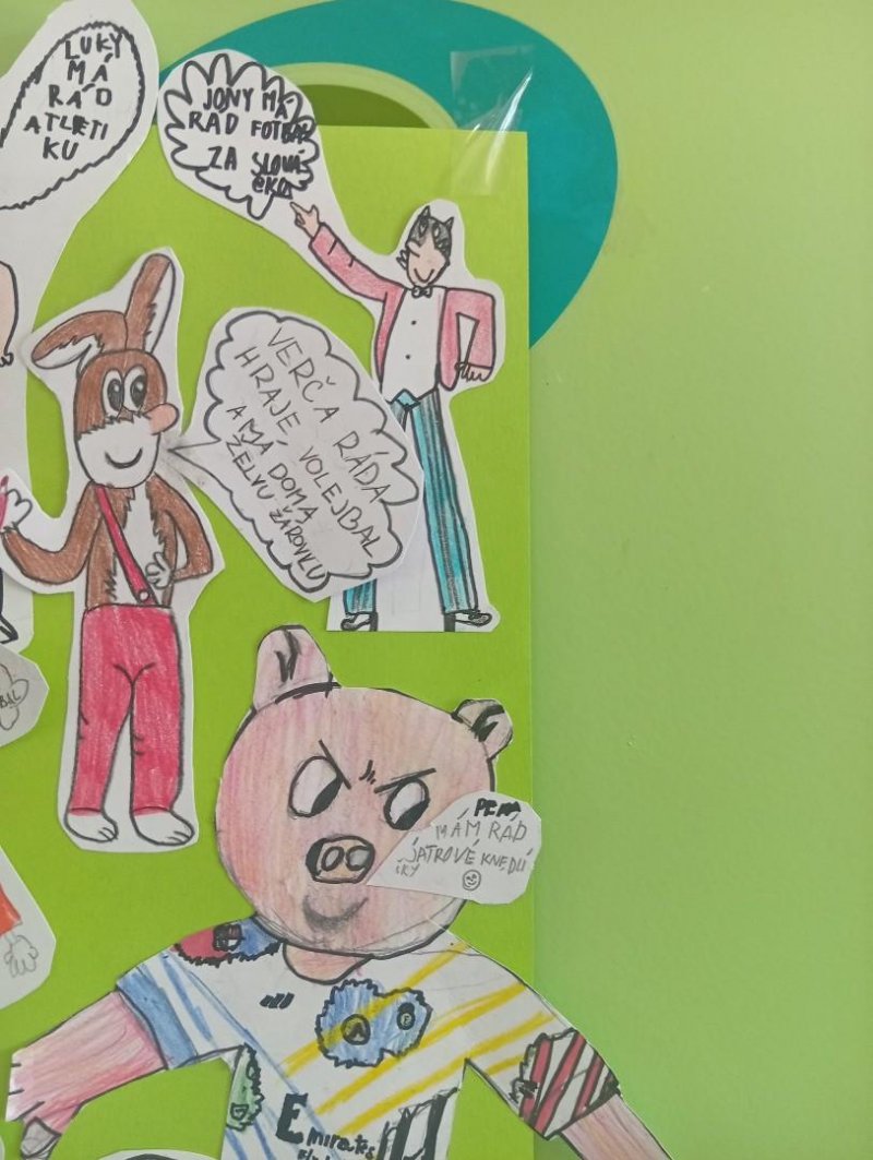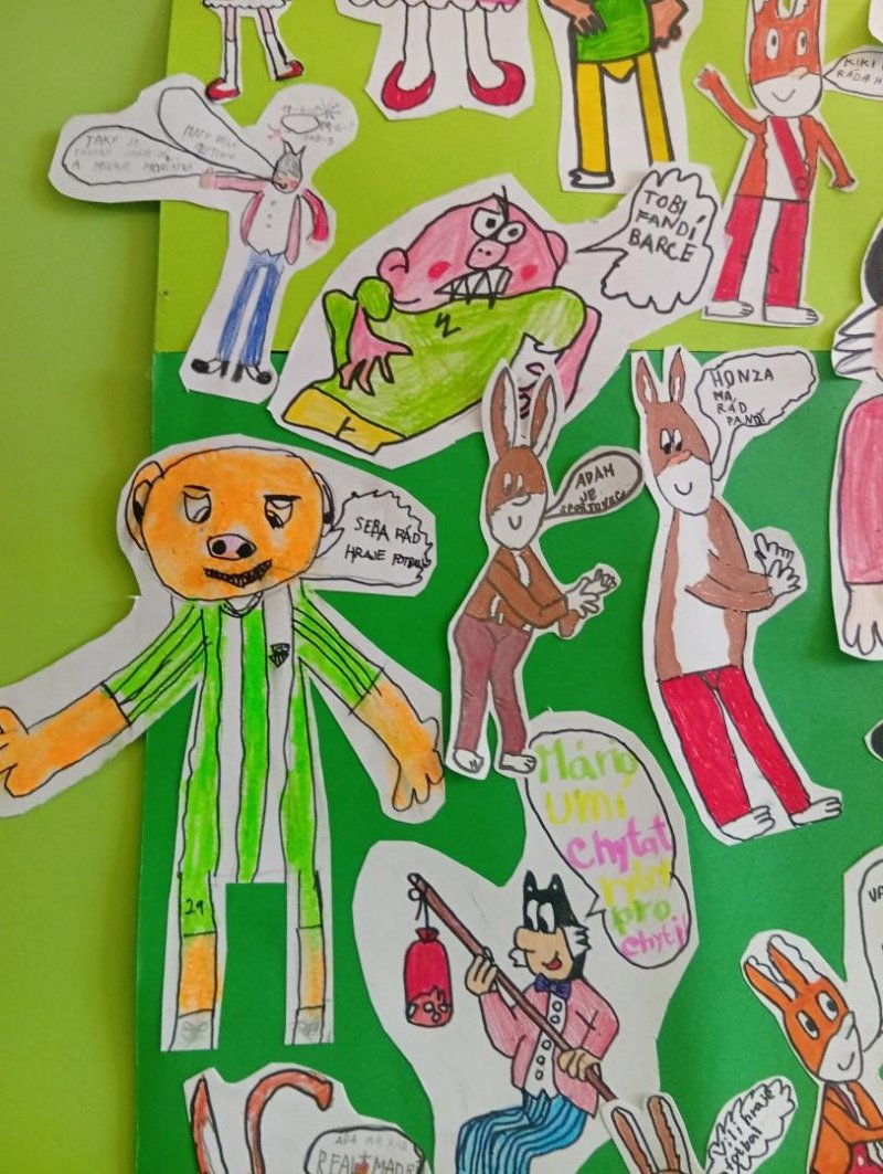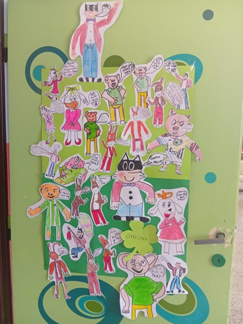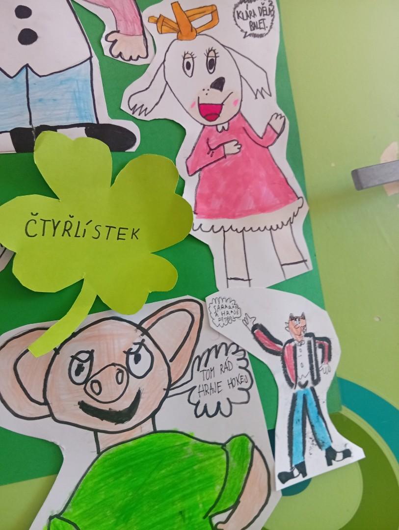 Tímto školním rokem nás provází komiksoví hrdinové Myšpulín, Pinďa, Fifinka a Bobík - tedy Čtyřlístek.) Sami jsme si jejich postavičky nakreslili a vložili jim do úst naše záliby nebo vlastnosti:)