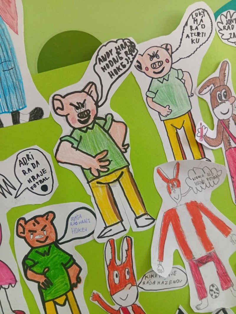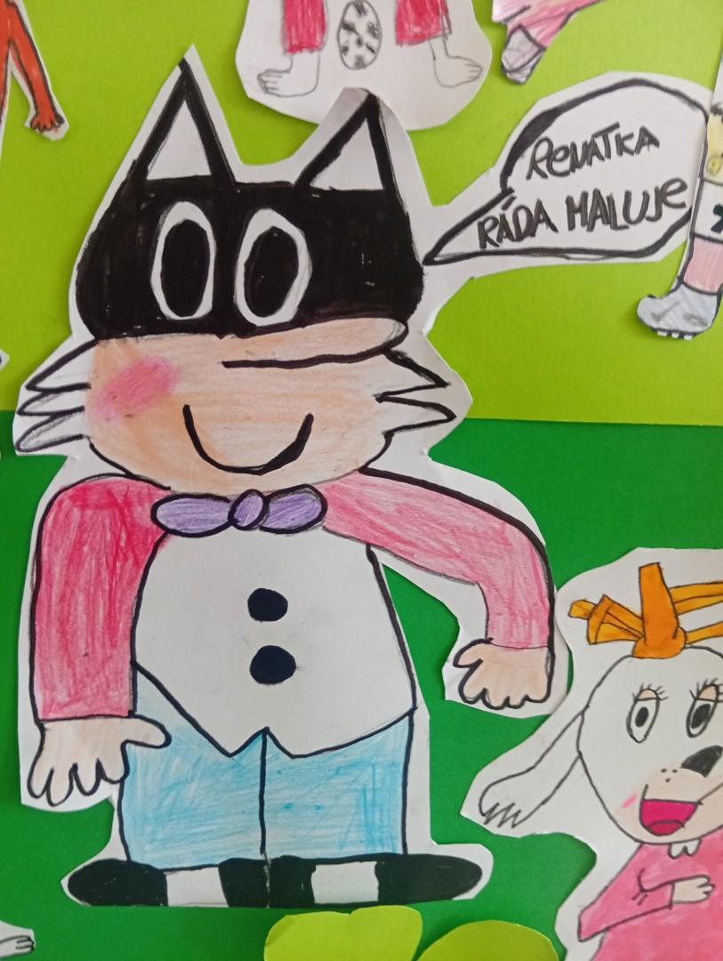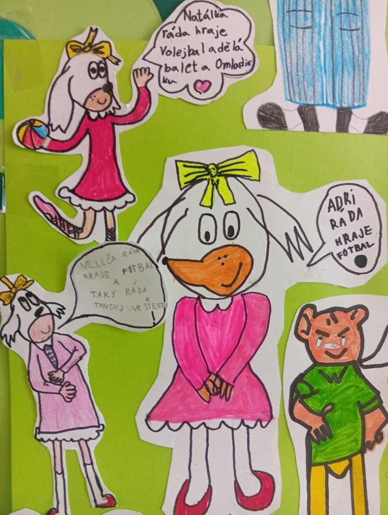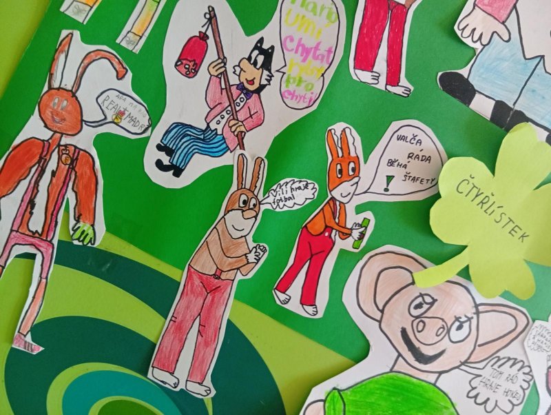 Tímto školním rokem nás provází komiksoví hrdinové Myšpulín, Pinďa, Fifinka a Bobík - tedy Čtyřlístek.) Sami jsme si jejich postavičky nakreslili a vložili jim do úst naše záliby nebo vlastnosti:)