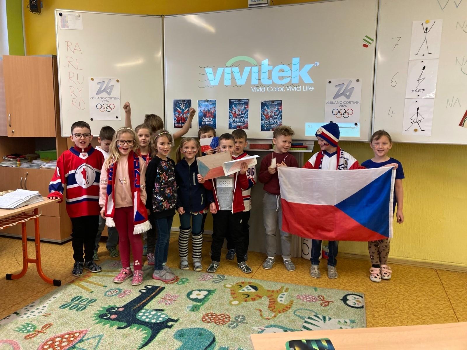 Den fanoušků olympiády všichni zúčastnění završili hromadným fanděním našim sportovcům v tělocvičně, kde si také mohli vzájemně prohlédnout, jak přišli do školy oblečení spolužáci z ostatních tříd.