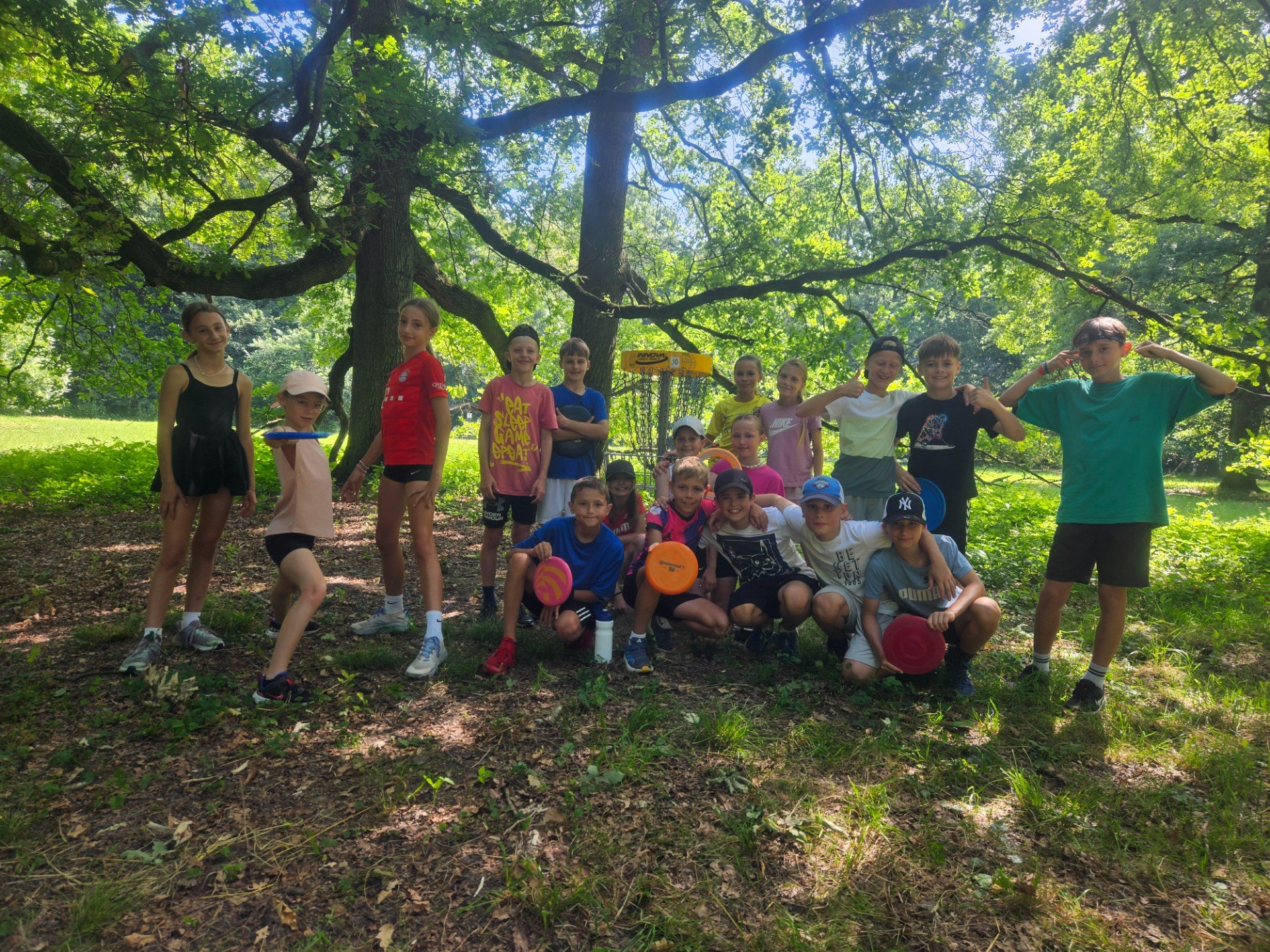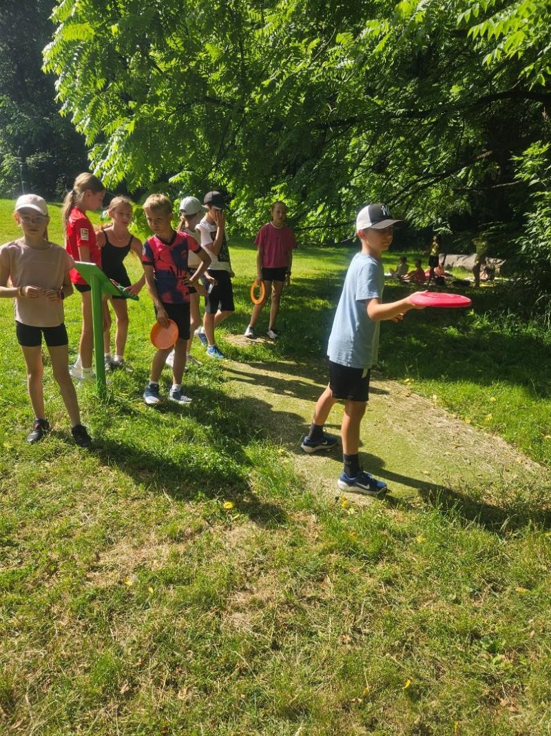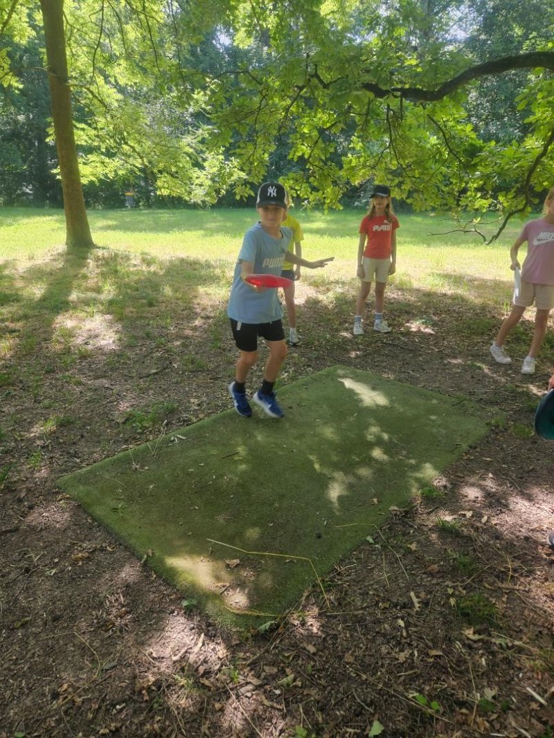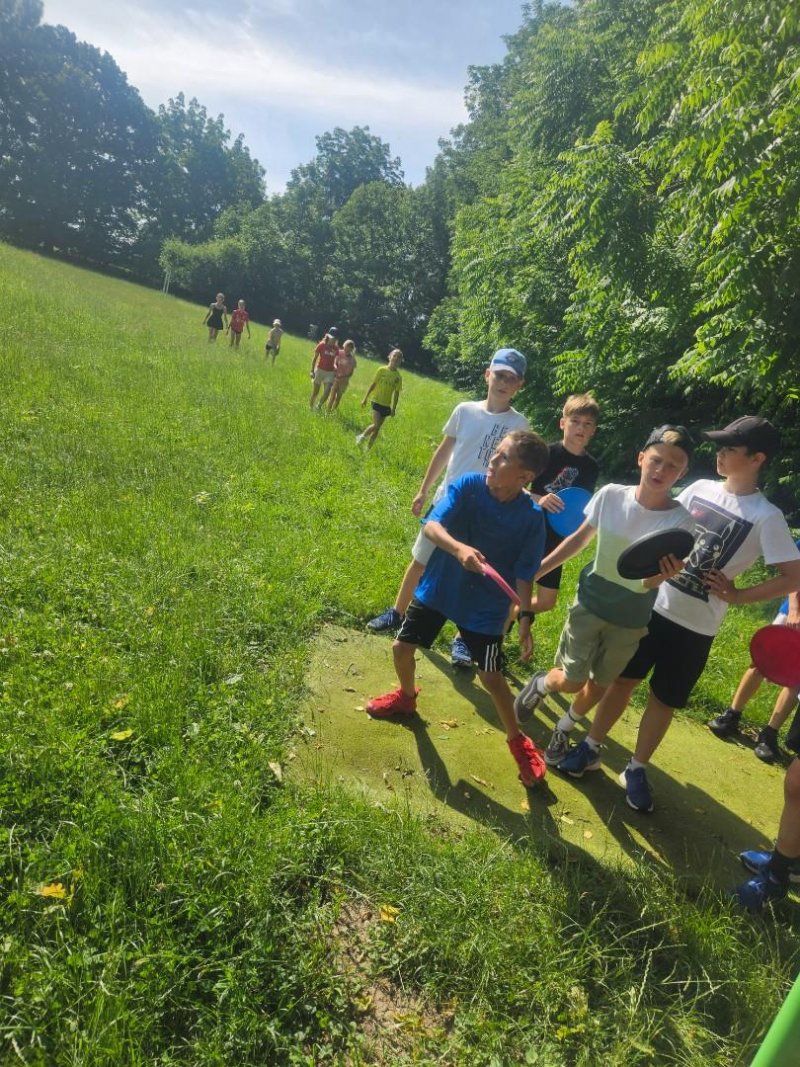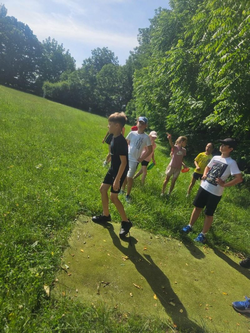 Ve čtvrtek 26.6. jsme vyrazili do Kunovského lesa na discgolf. Moc jsme si tuhle netradiční aktivitu užili, nechyběla ani "challenge" - shoď ze stromu uvězněný disk nebo najdi (za zmrzku) ztracený disk paní učitelky.