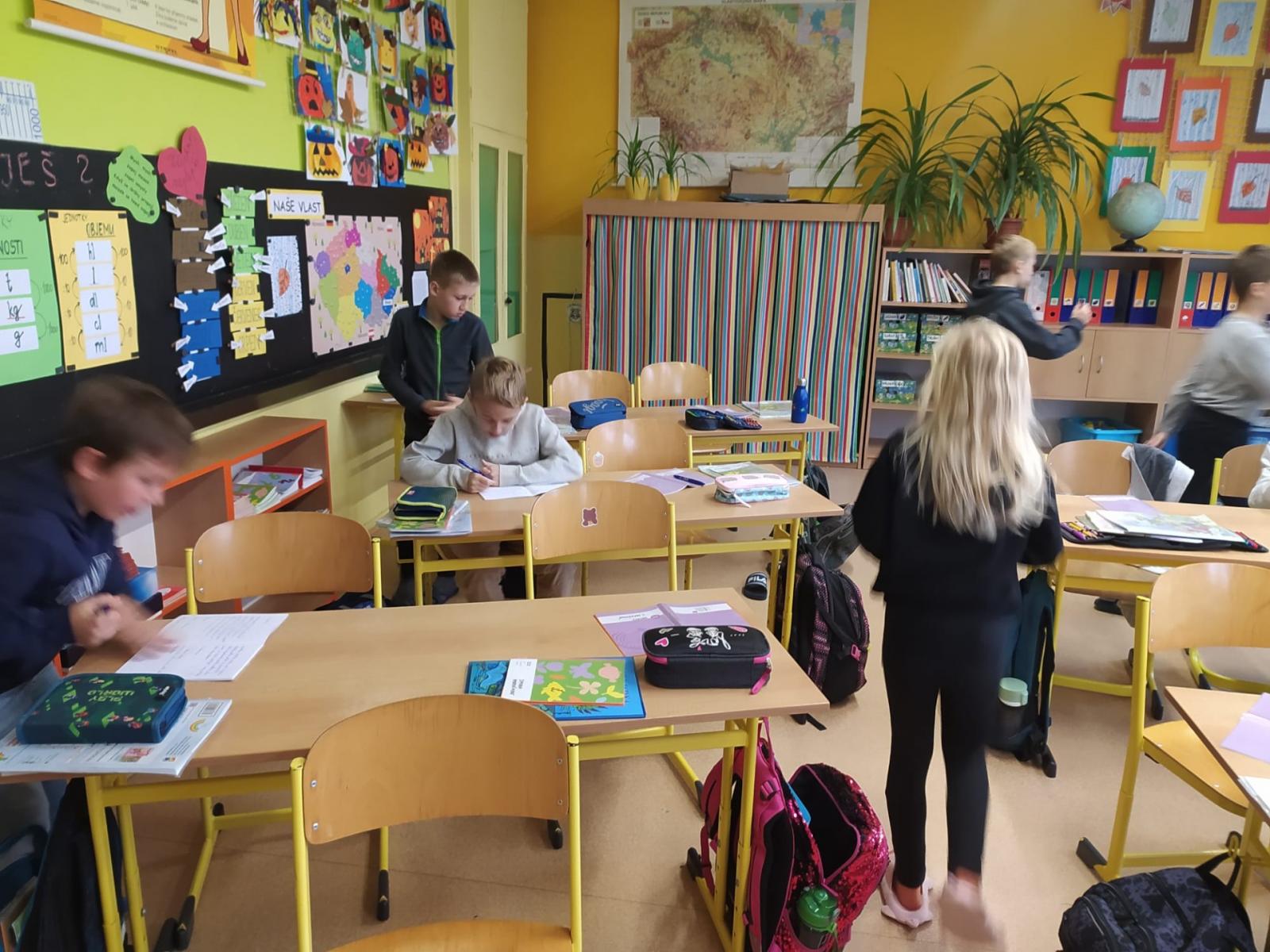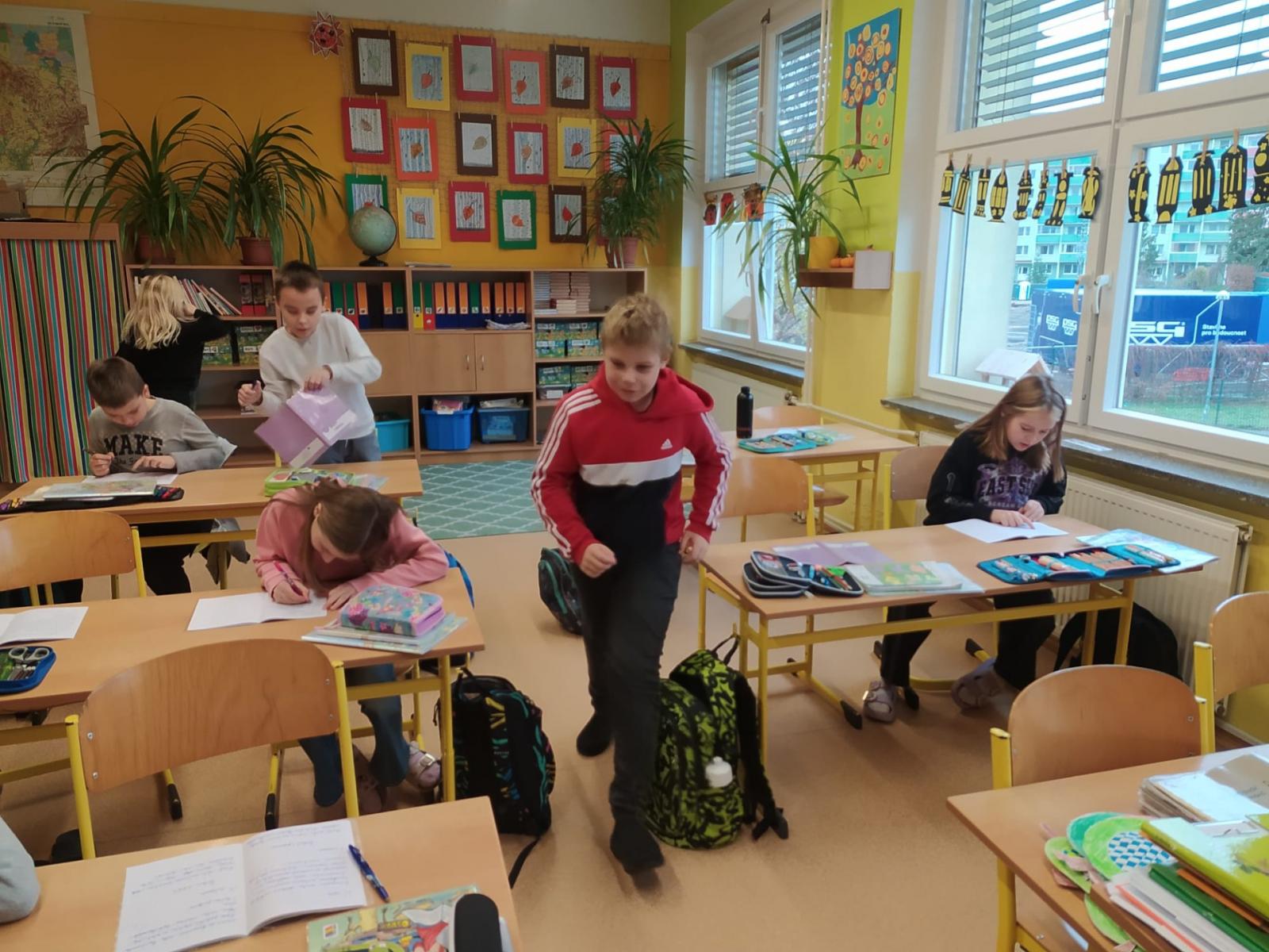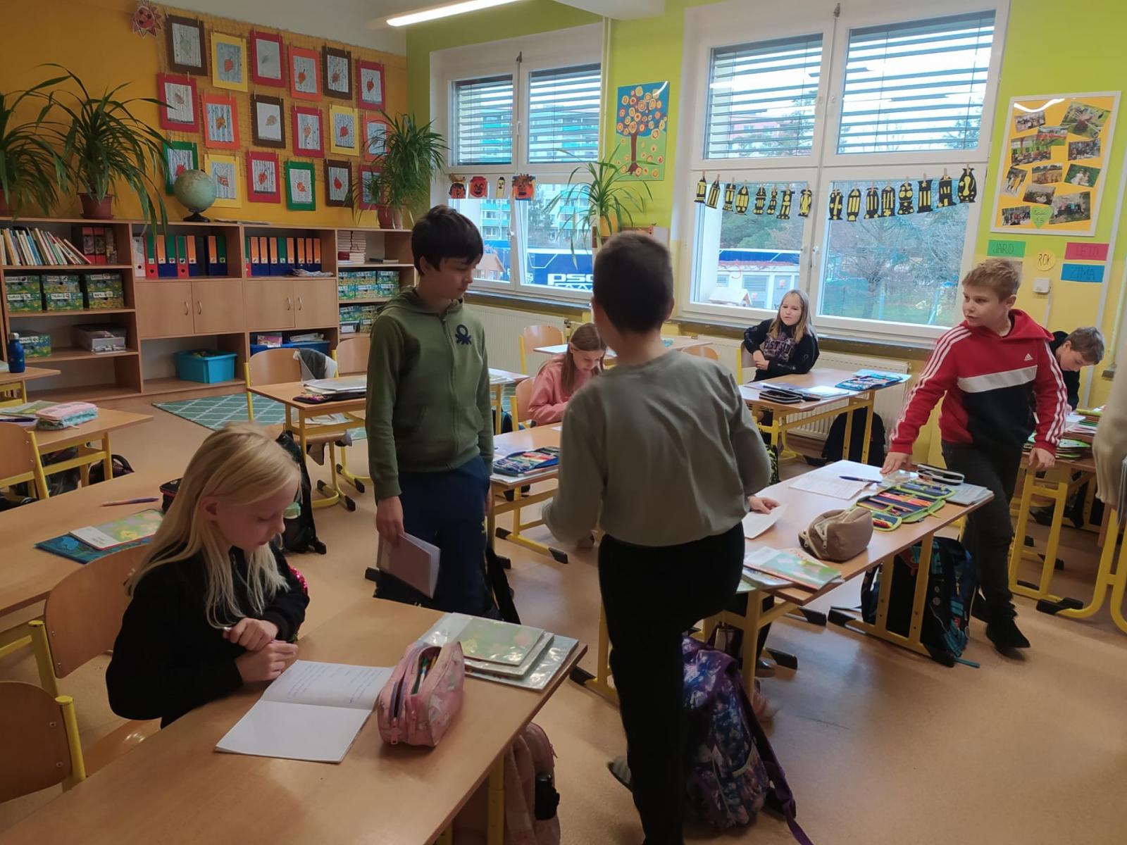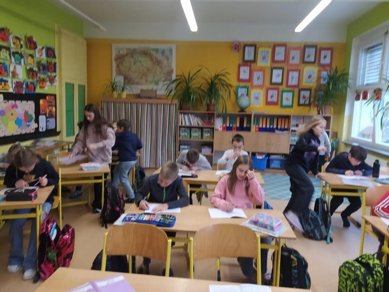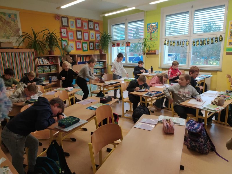 Opakovat vyjmenovaná slova jenom tak v lavici je docela nuda. Když k tomu přidáte pohyb, najednou vám to půjde mnohem lépe. Vyzkoušeli jsme si, že je to pravda. Měli jsme schováno deset kartiček se slovními spojeními. Bylo důležité všechny najít a hlavně správně napsat do sešitu. Skoro všem se to podařilo, zasloužíte velkou pochvalu.