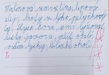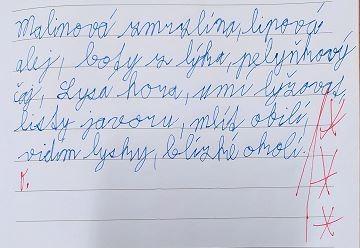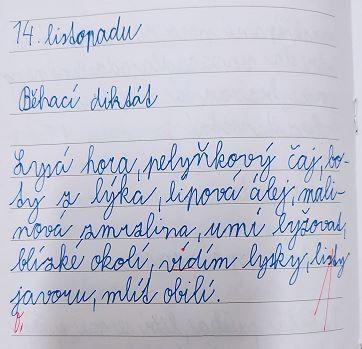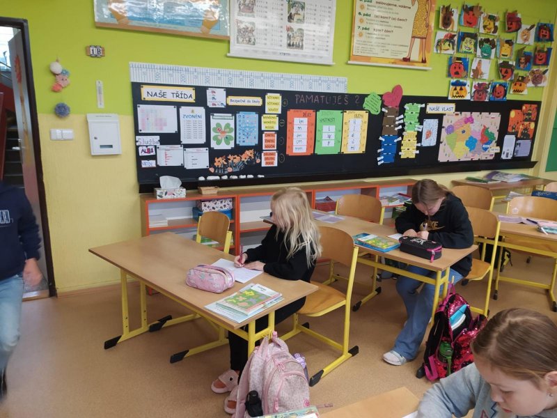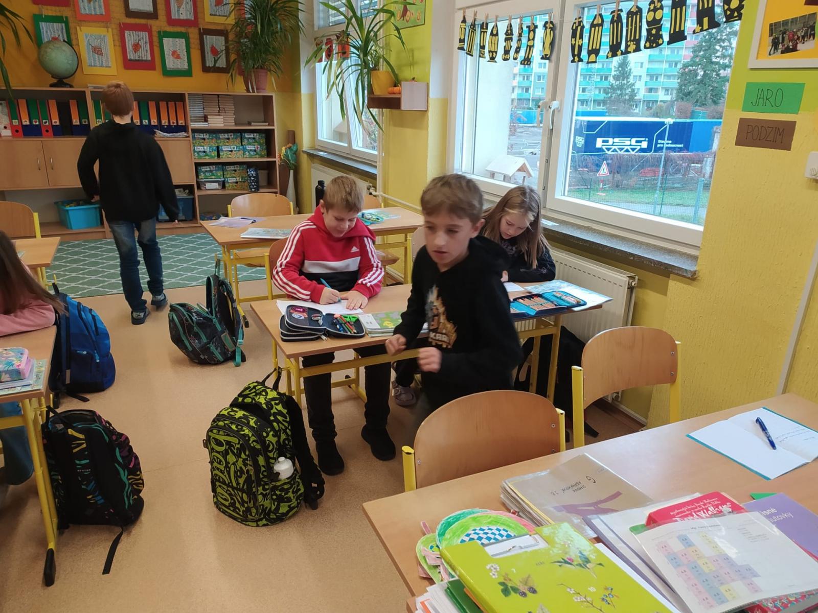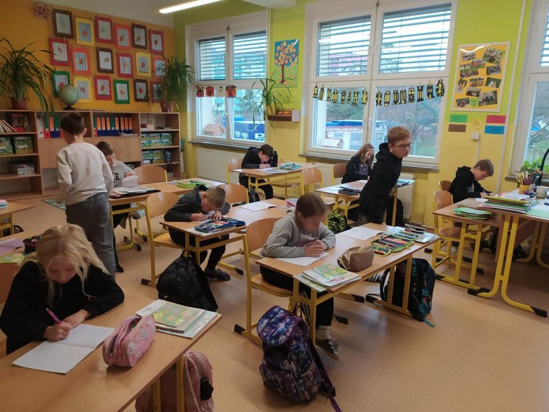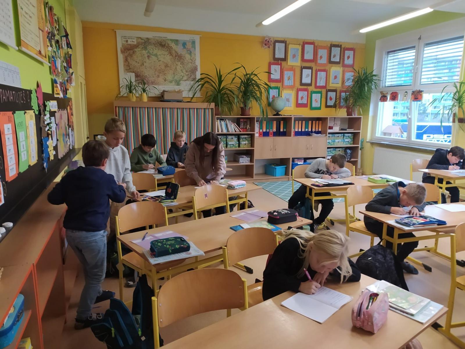Opakovat vyjmenovaná slova jenom tak v lavici je docela nuda. Když k tomu přidáte pohyb, najednou vám to půjde mnohem lépe. Vyzkoušeli jsme si, že je to pravda. Měli jsme schováno deset kartiček se slovními spojeními. Bylo důležité všechny najít a hlavně správně napsat do sešitu. Skoro všem se to podařilo, zasloužíte velkou pochvalu.