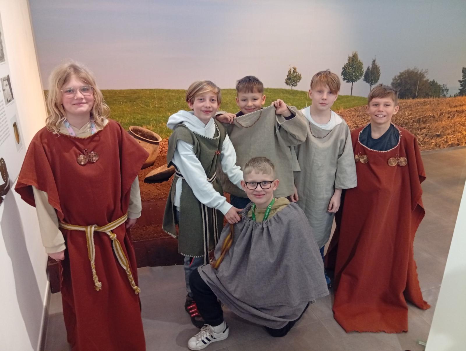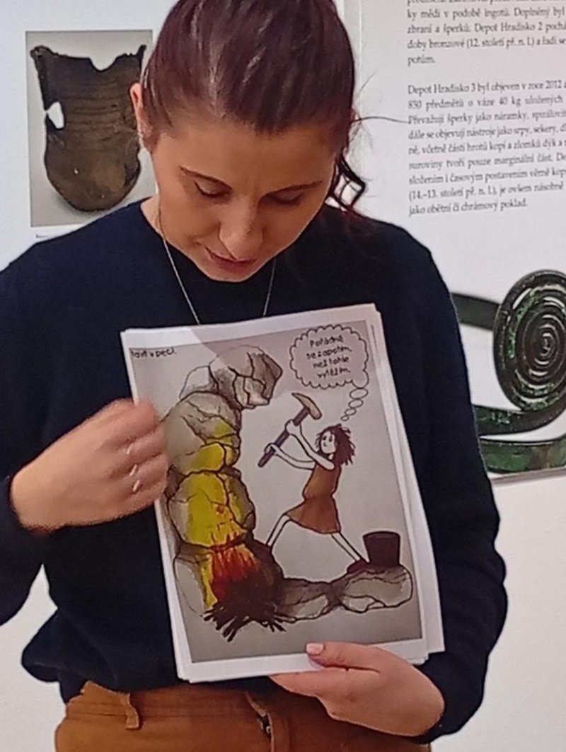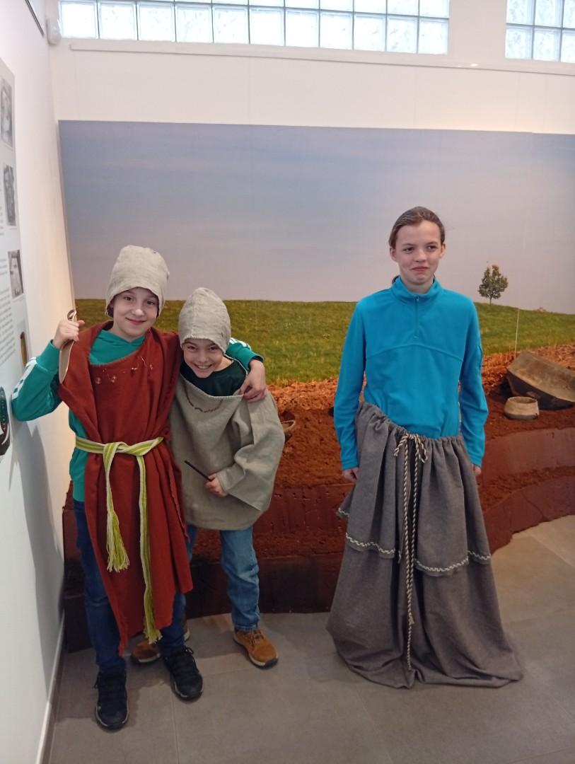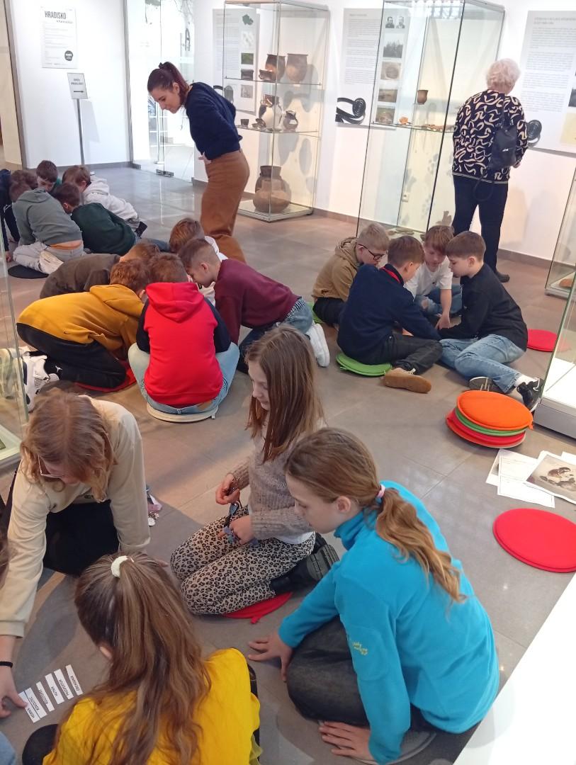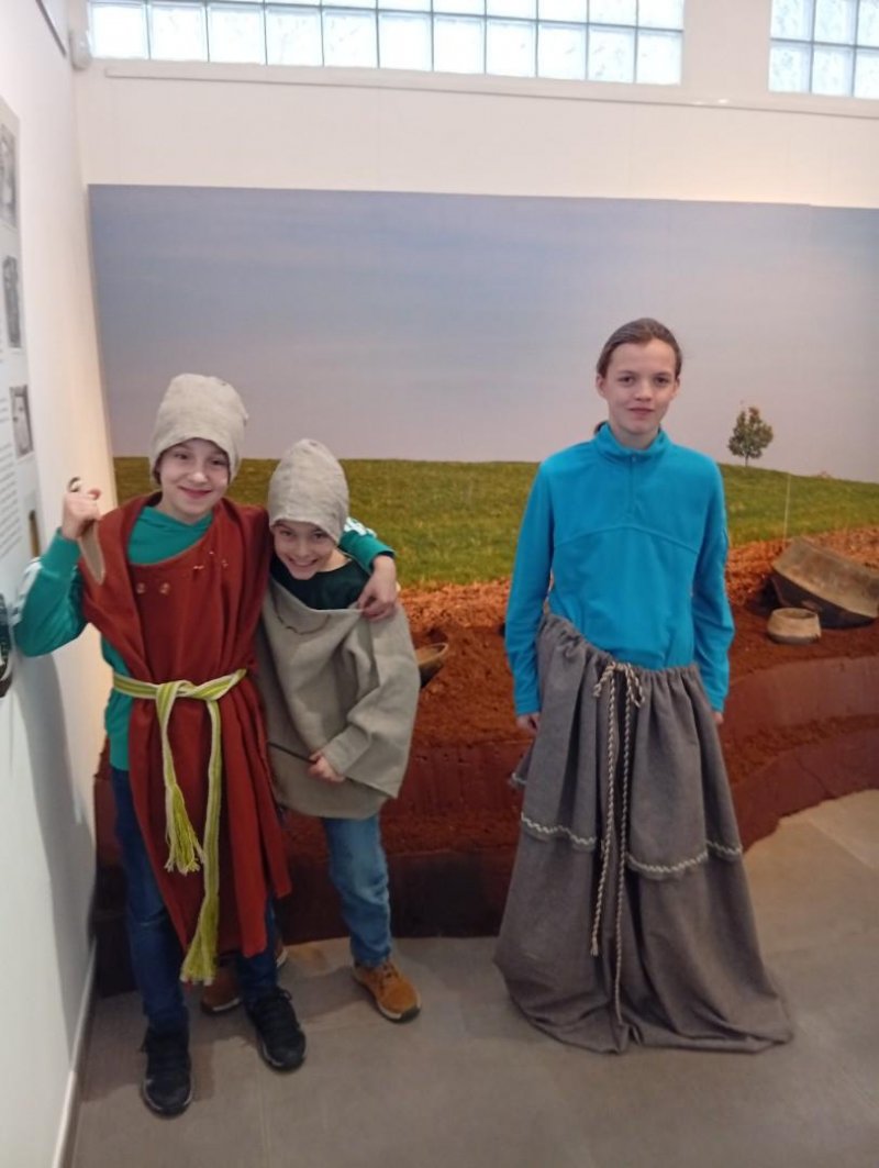 Hned první školní den po jarních prázdninách jsme navštívili slovácké muzeum, kde nám paní průvodkyně povyprávěla o životě lidí doby bronzové, o archeologických vykopávkách i o nástrojích a řemeslech tohoto období. Dozvěděli jsme se, že největším nalezištěm těchto předmětů byla právě obec Hradisko na Kroměřížsku. Kdo chtěl, oblekl se do oděvů a vyzkoušel si různé šperky právě z doby bronzové. Nakonec si všichni vyzkoušeli i tzv. kovotepectví při zdobení vázy, i když jen s papírem a špejlí.