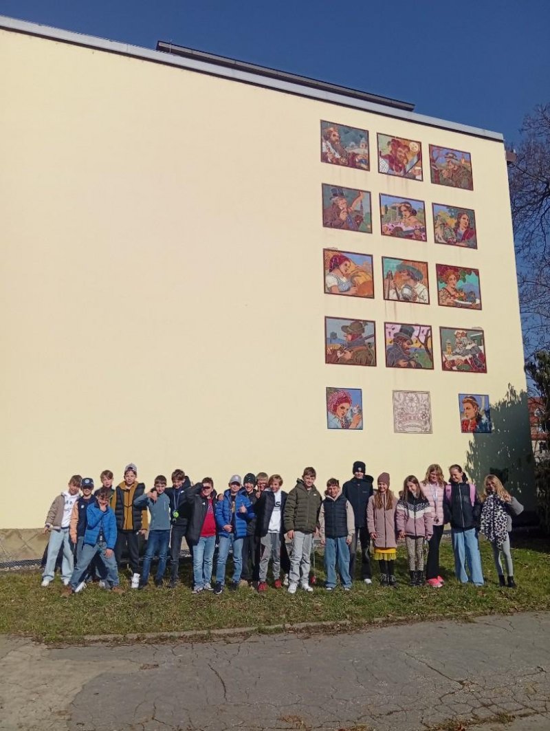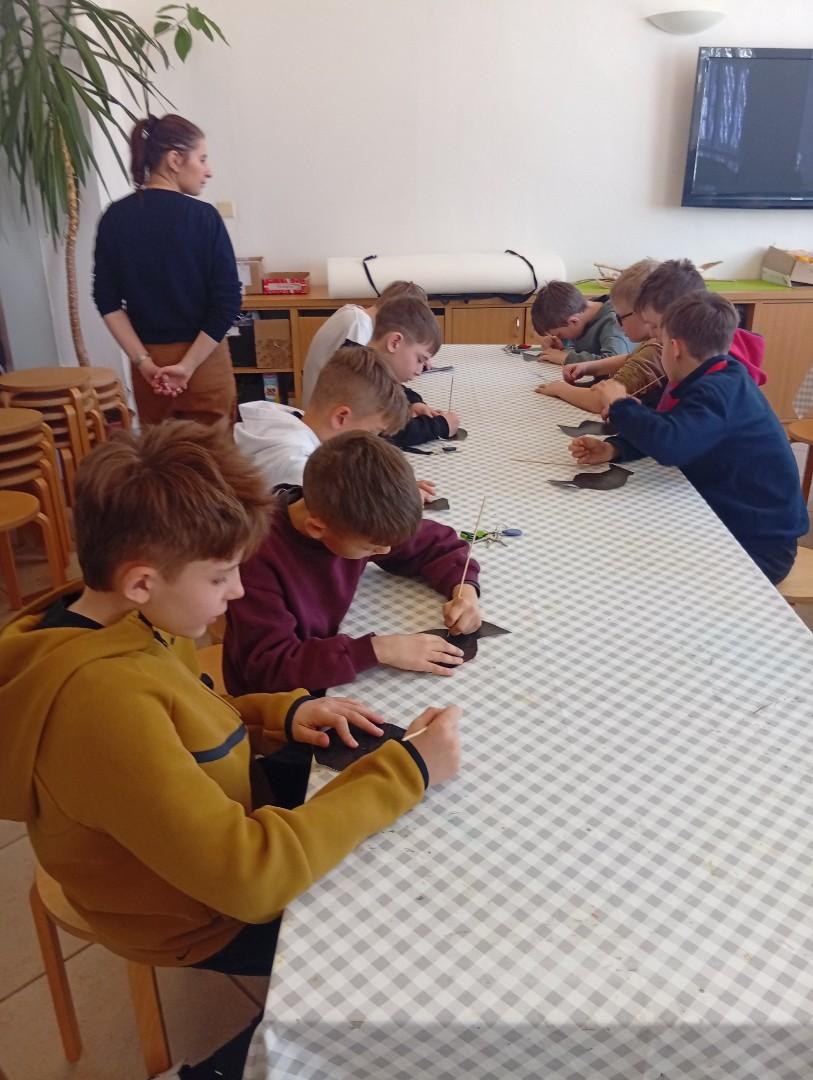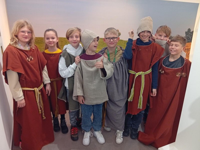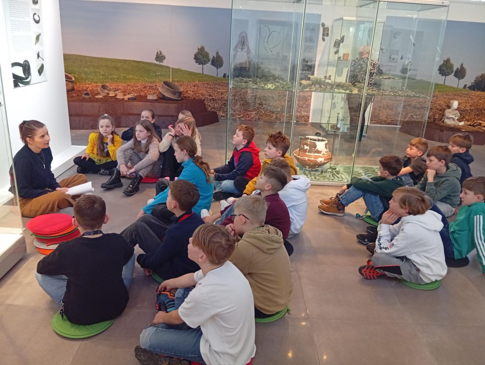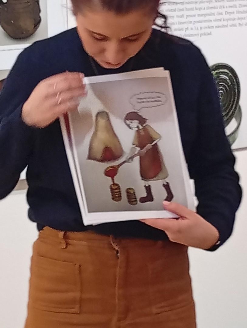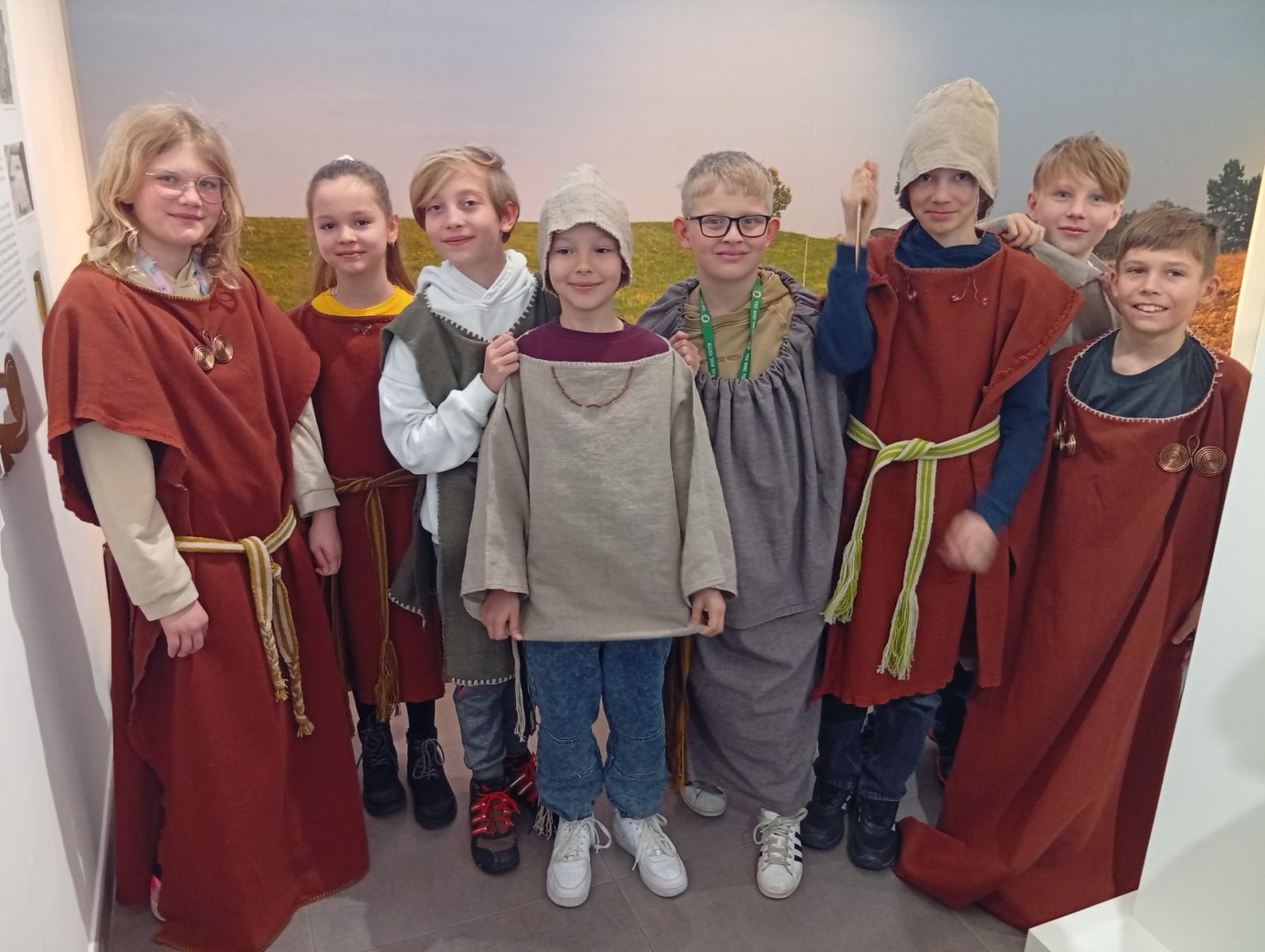 Hned první školní den po jarních prázdninách jsme navštívili slovácké muzeum, kde nám paní průvodkyně povyprávěla o životě lidí doby bronzové, o archeologických vykopávkách i o nástrojích a řemeslech tohoto období. Dozvěděli jsme se, že největším nalezištěm těchto předmětů byla právě obec Hradisko na Kroměřížsku. Kdo chtěl, oblekl se do oděvů a vyzkoušel si různé šperky právě z doby bronzové. Nakonec si všichni vyzkoušeli i tzv. kovotepectví při zdobení vázy, i když jen s papírem a špejlí.