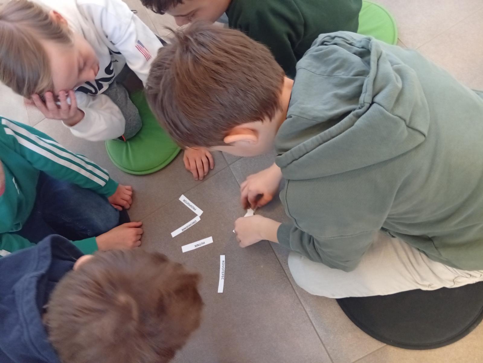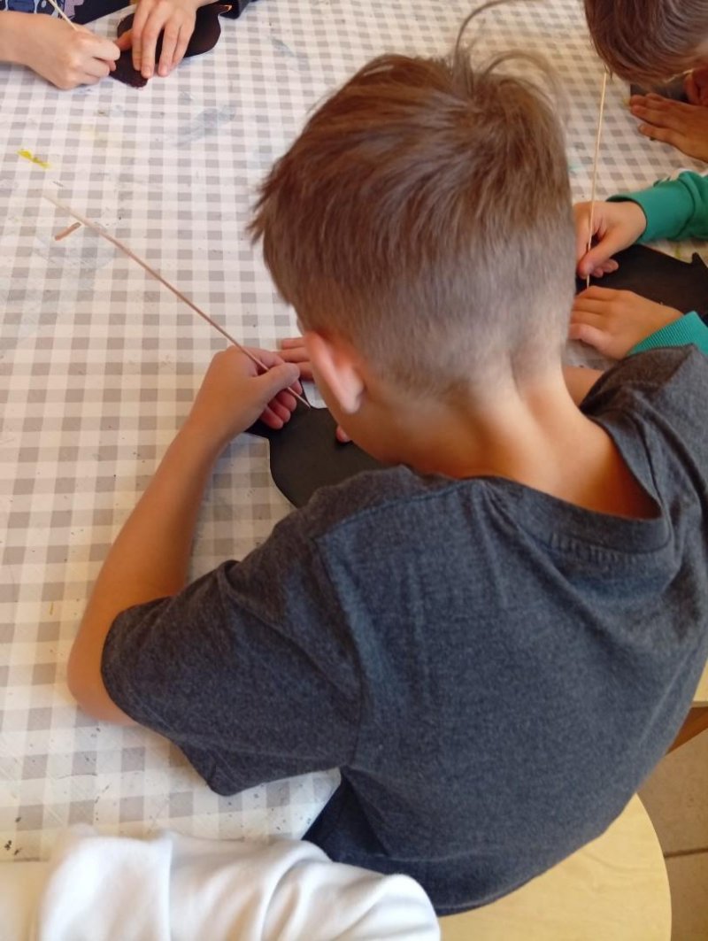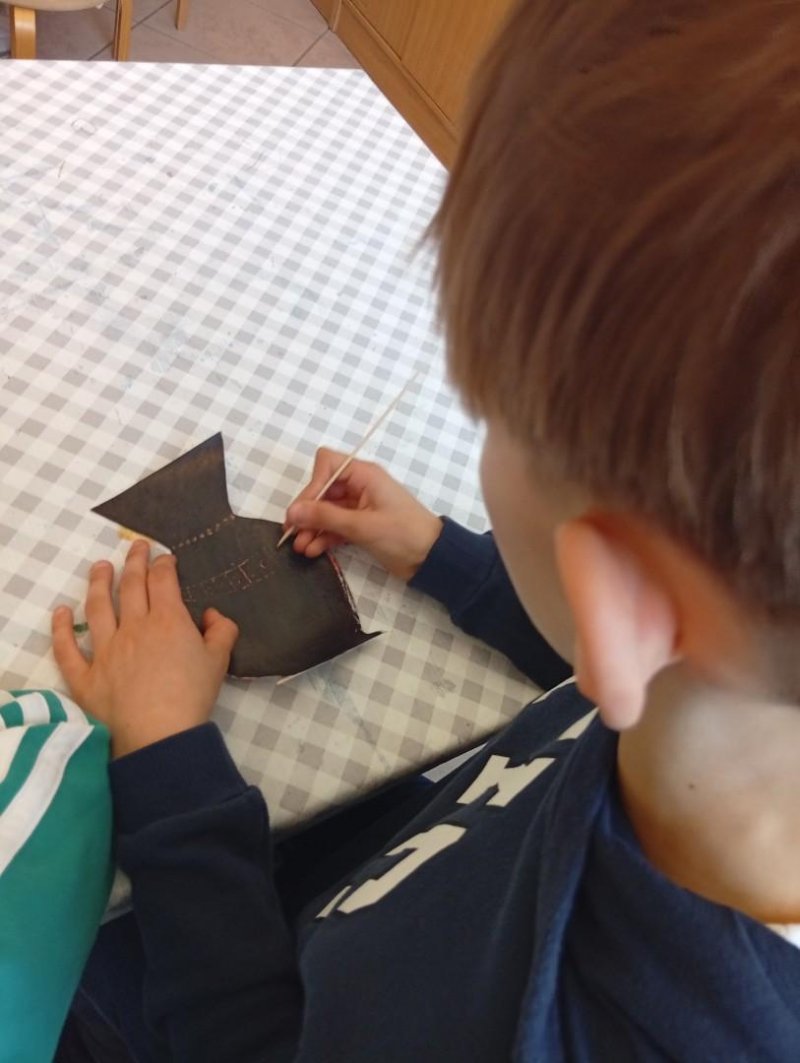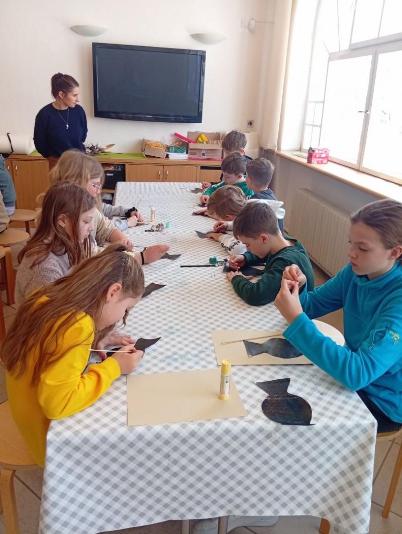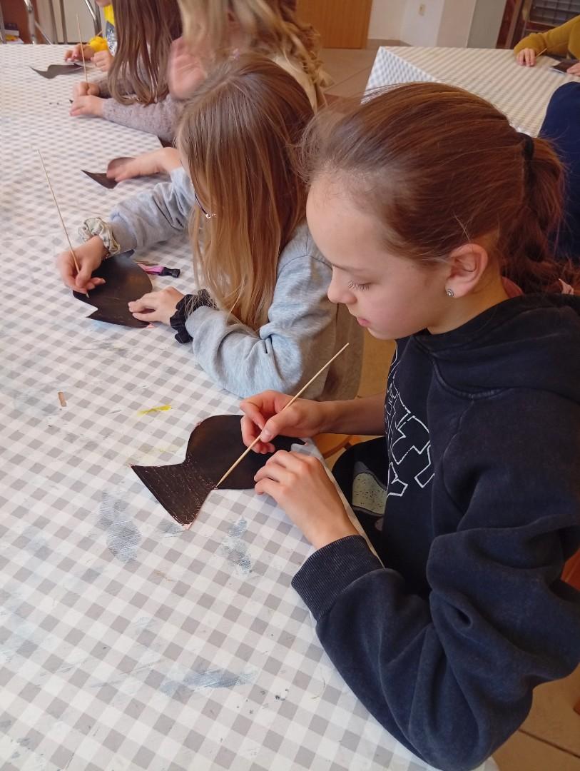Hned první školní den po jarních prázdninách jsme navštívili slovácké muzeum, kde nám paní průvodkyně povyprávěla o životě lidí doby bronzové, o archeologických vykopávkách i o nástrojích a řemeslech tohoto období. Dozvěděli jsme se, že největším nalezištěm těchto předmětů byla právě obec Hradisko na Kroměřížsku. Kdo chtěl, oblekl se do oděvů a vyzkoušel si různé šperky právě z doby bronzové. Nakonec si všichni vyzkoušeli i tzv. kovotepectví při zdobení vázy, i když jen s papírem a špejlí.