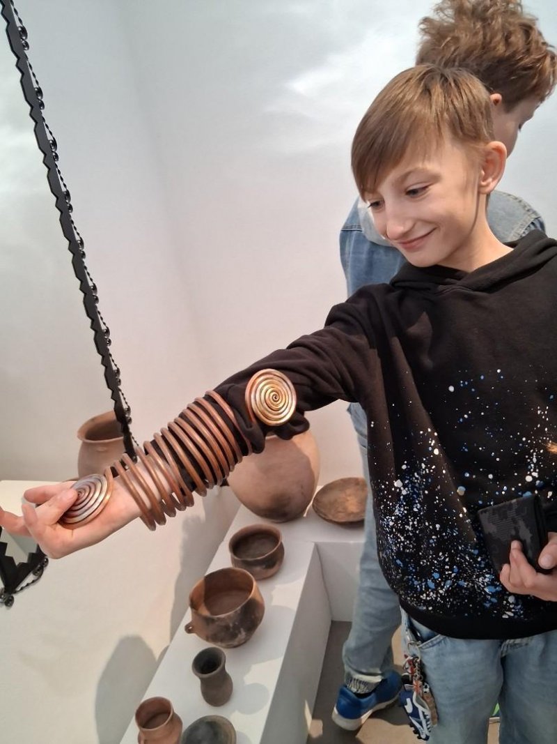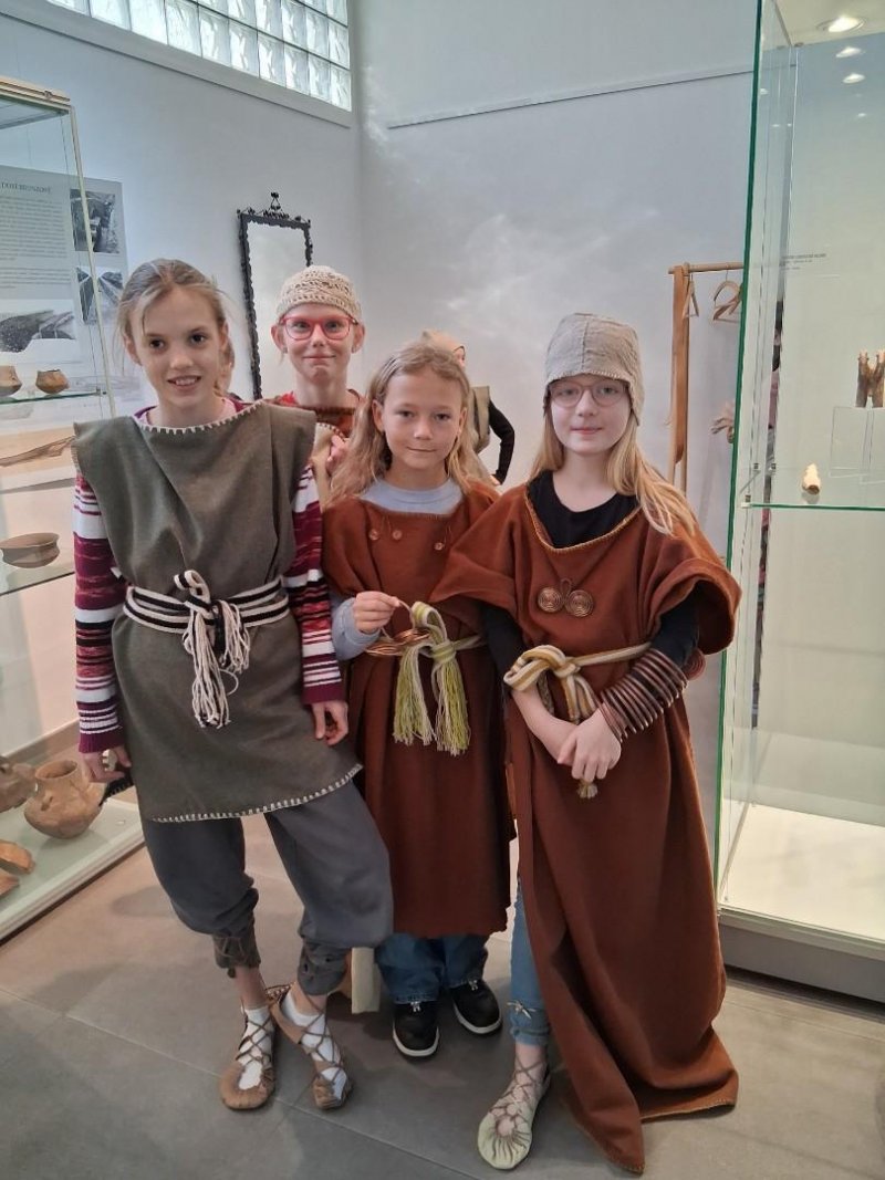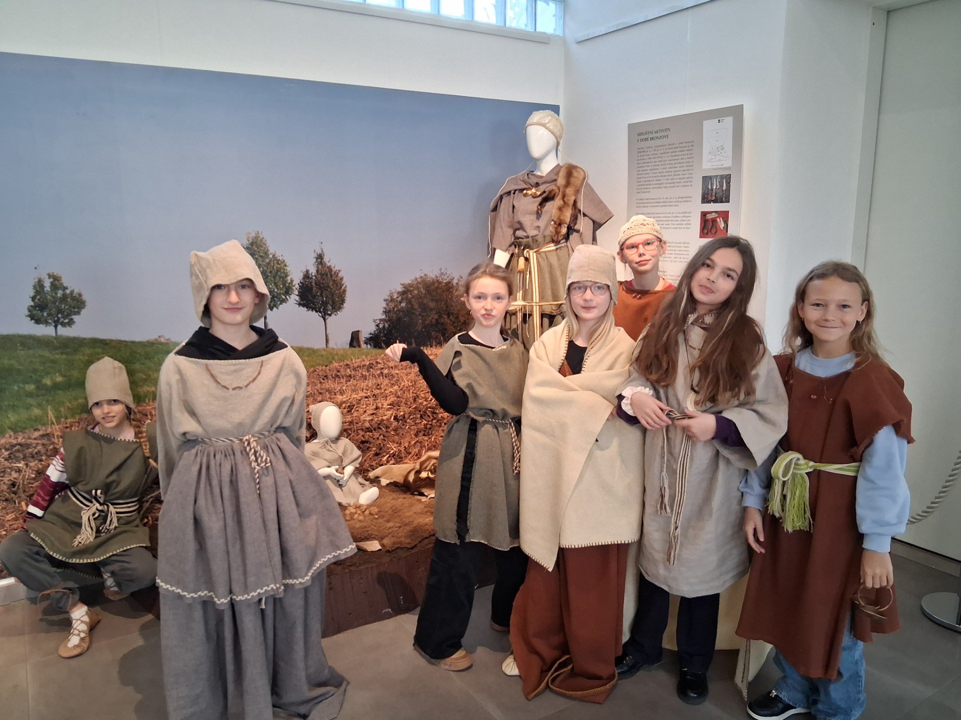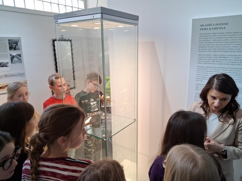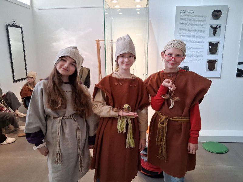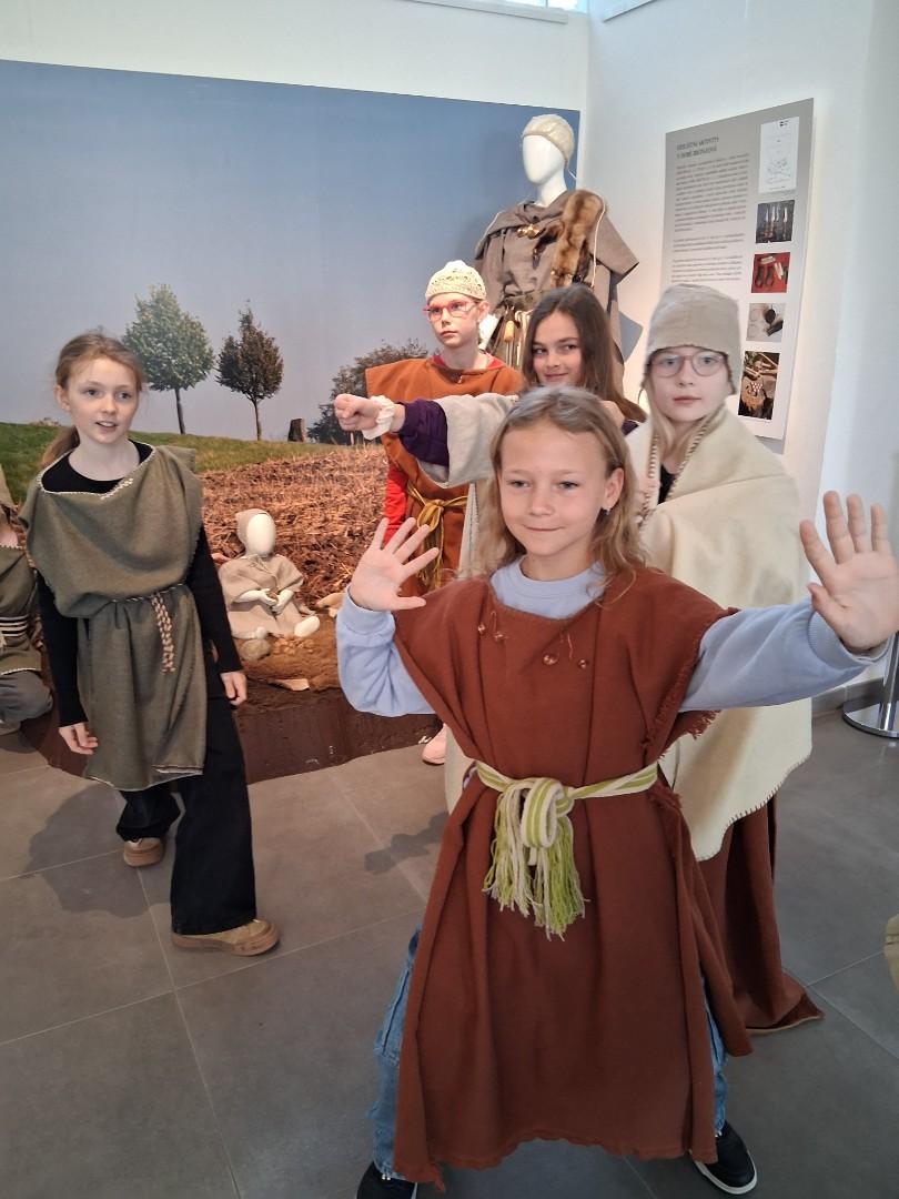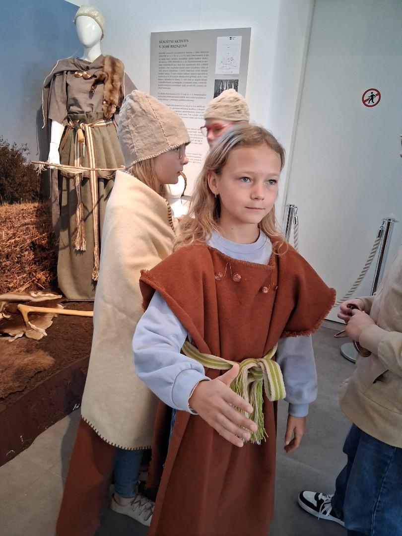 V úterý jsme navštívili v muzeu interaktivní výstavu, která nás zavedla do doby bronzové. Ocitli jsme se asi 1 000 let před našim letopočtem. Významné naleziště bylo v Hradisku u Kroměříže. Mohli jsme si prohlédnout nálezy z té doby a také vyzkoušet dobový oděv či šperky.