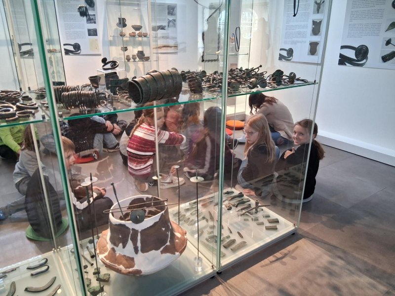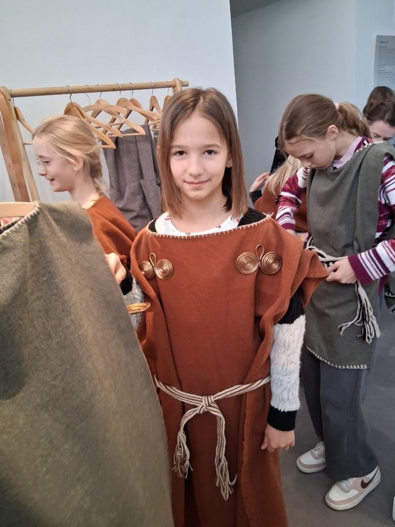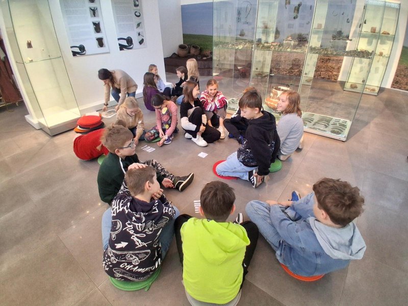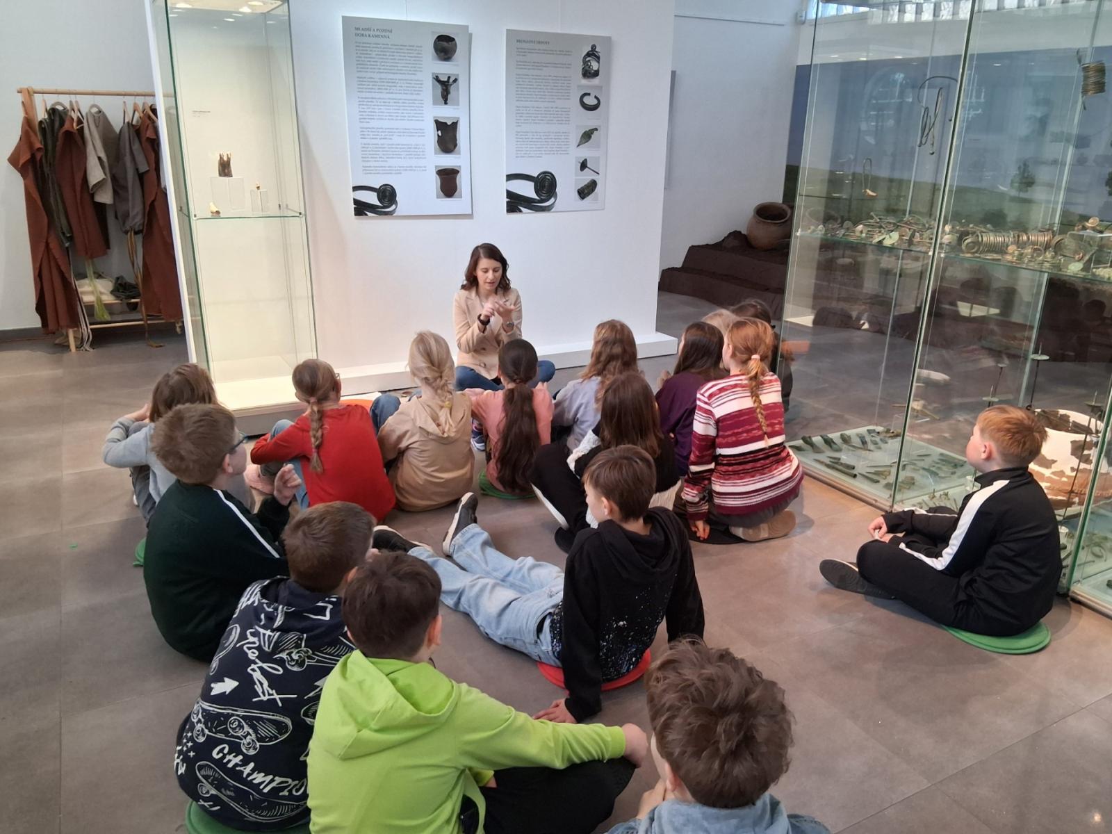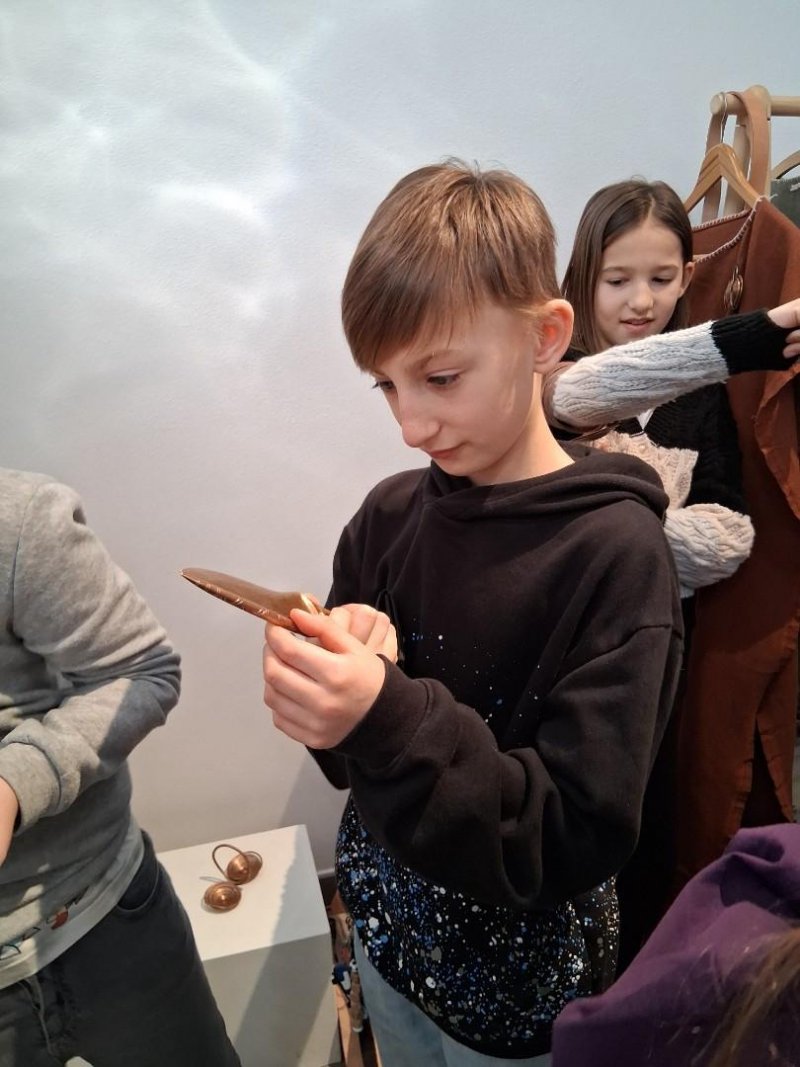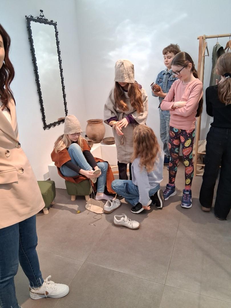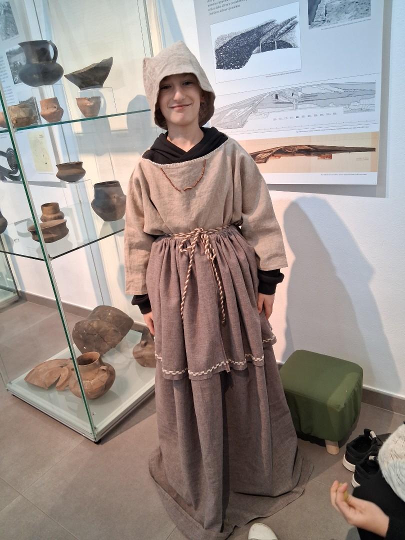 V úterý jsme navštívili v muzeu interaktivní výstavu, která nás zavedla do doby bronzové. Ocitli jsme se asi 1 000 let před našim letopočtem. Významné naleziště bylo v Hradisku u Kroměříže. Mohli jsme si prohlédnout nálezy z té doby a také vyzkoušet dobový oděv či šperky.