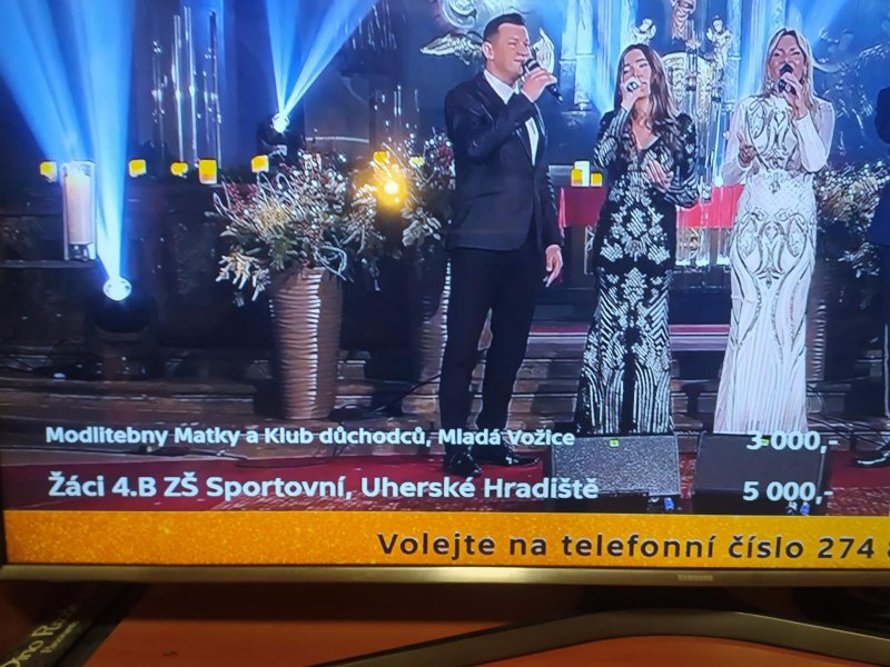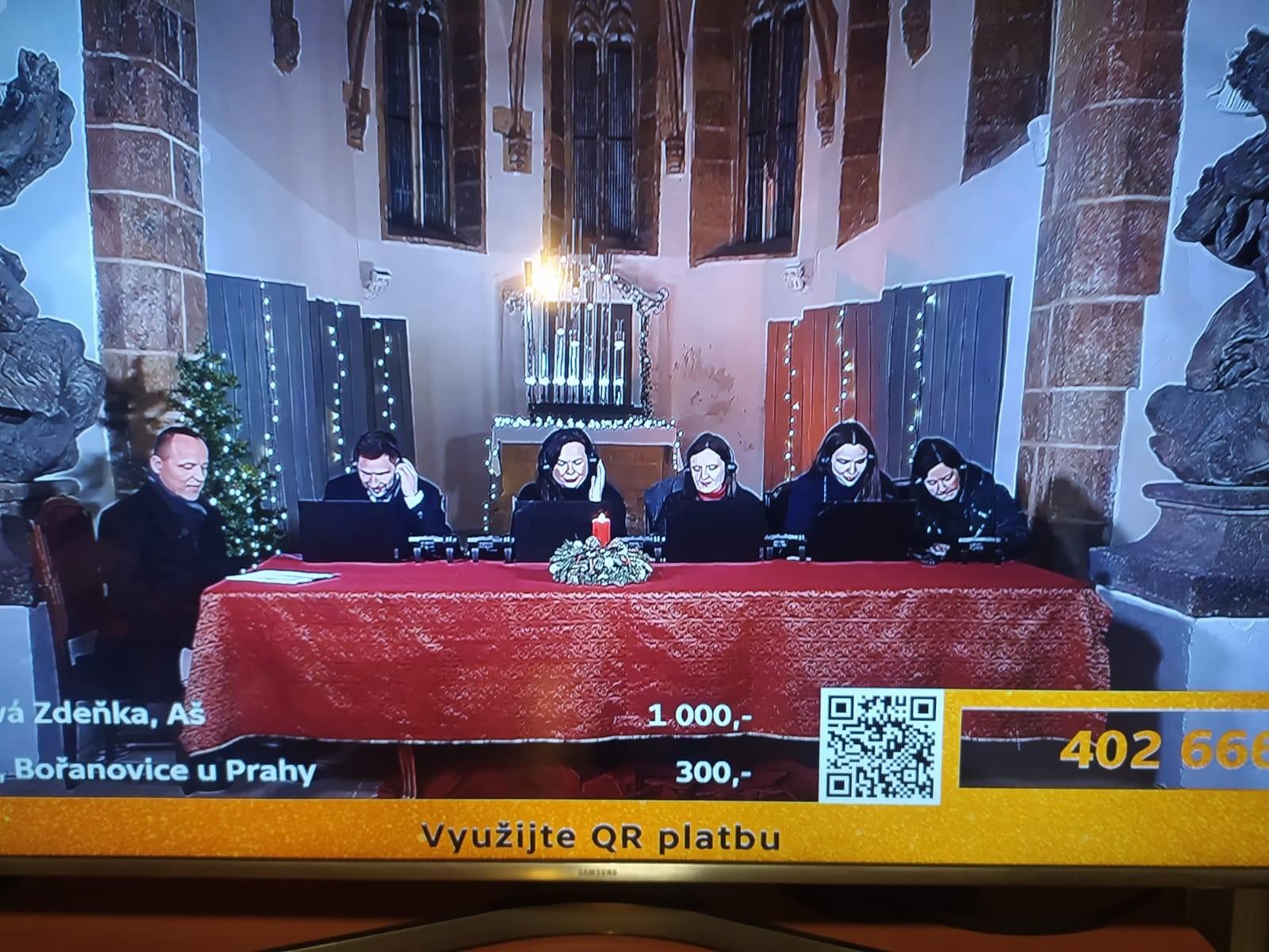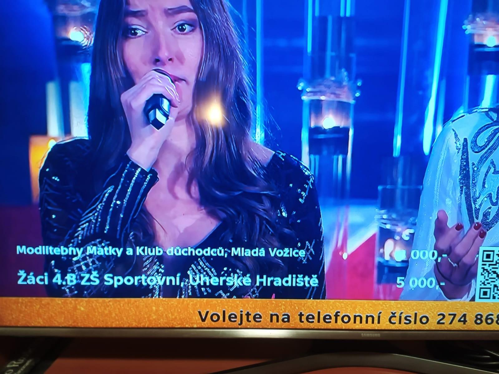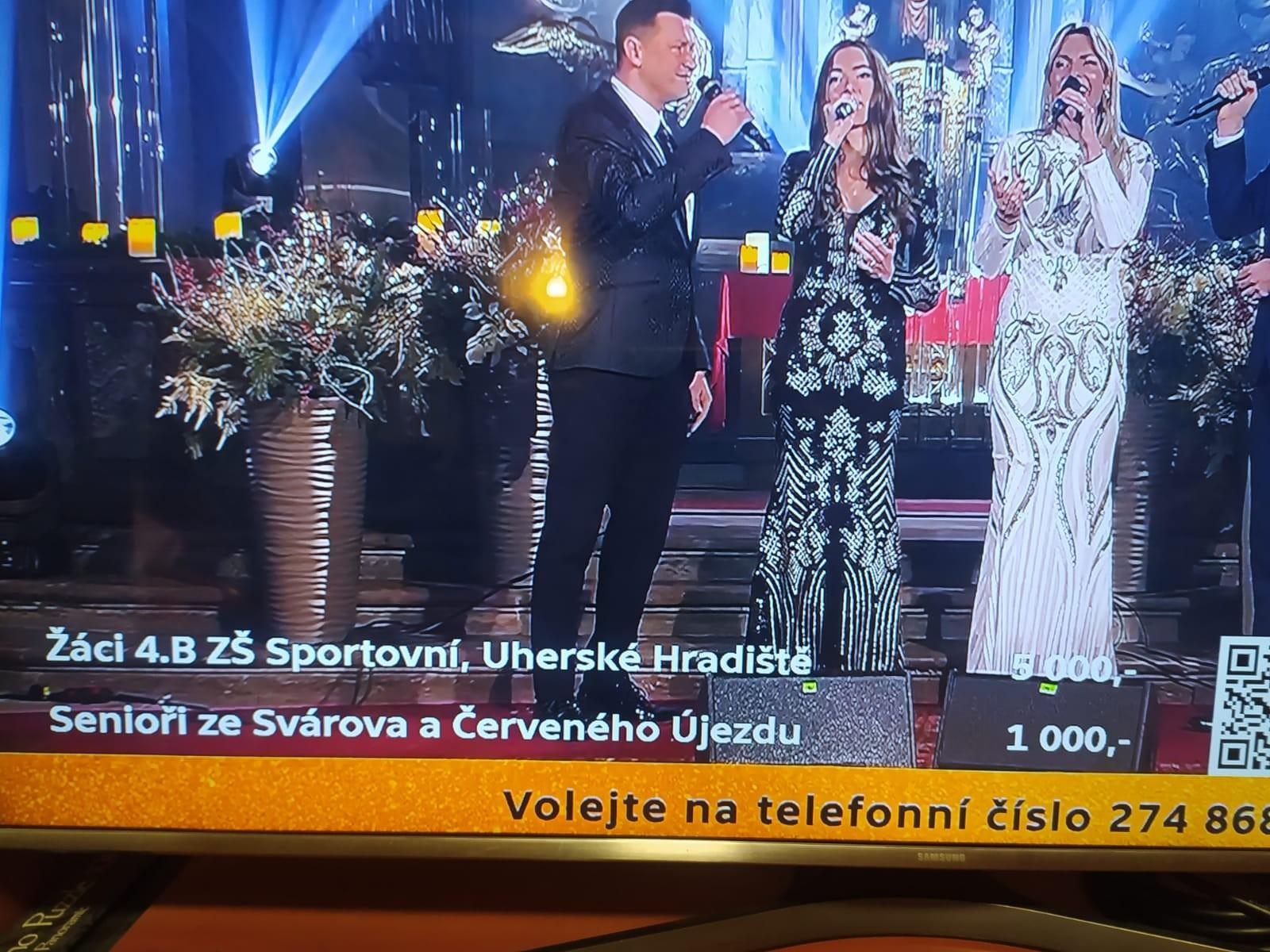 Česká televize pořádá tradičně sérii adventních koncertů. Už loni jsme se zapojili a letos jsme do toho šli znovu. Vybrali jsme si neziskovou organizaci Pomocné tlapky ze Starého Plzence, která cvičí pro klienty s různými hendikepy asistenční pejsky. Výcvik a výchova takového psa stojí téměř 400 000 Kč. Tak jsme díky rodičům po dva týdny shromažďovali penízky na dobrou věc a v neděli jsme je odeslali na konto adventních koncertů.