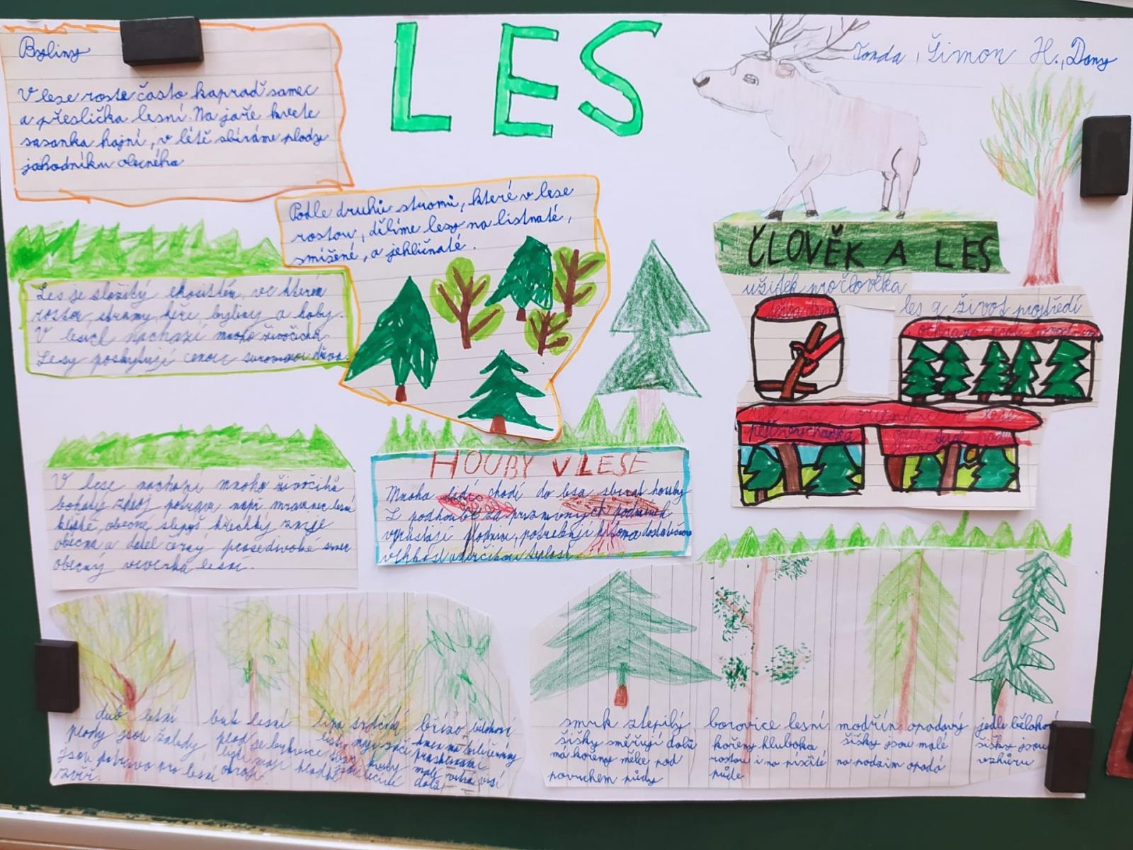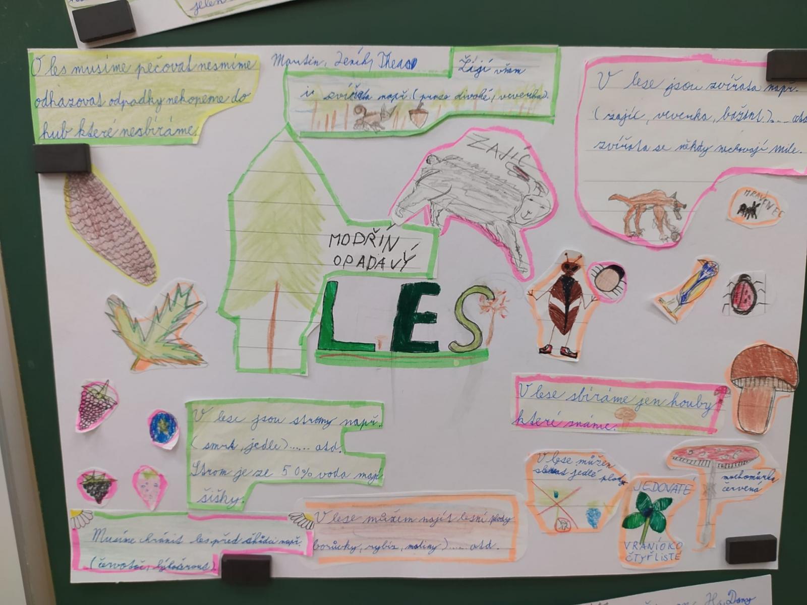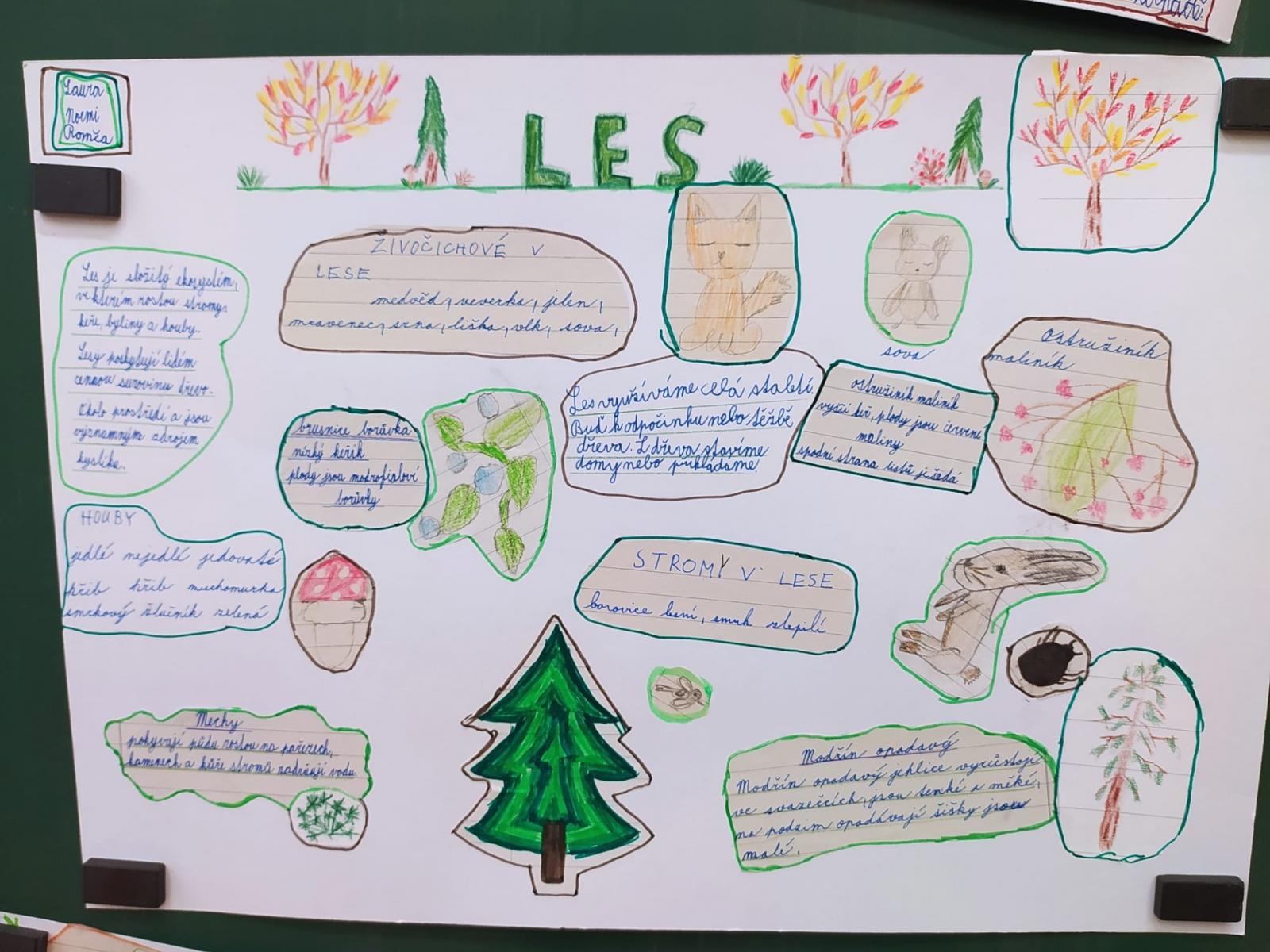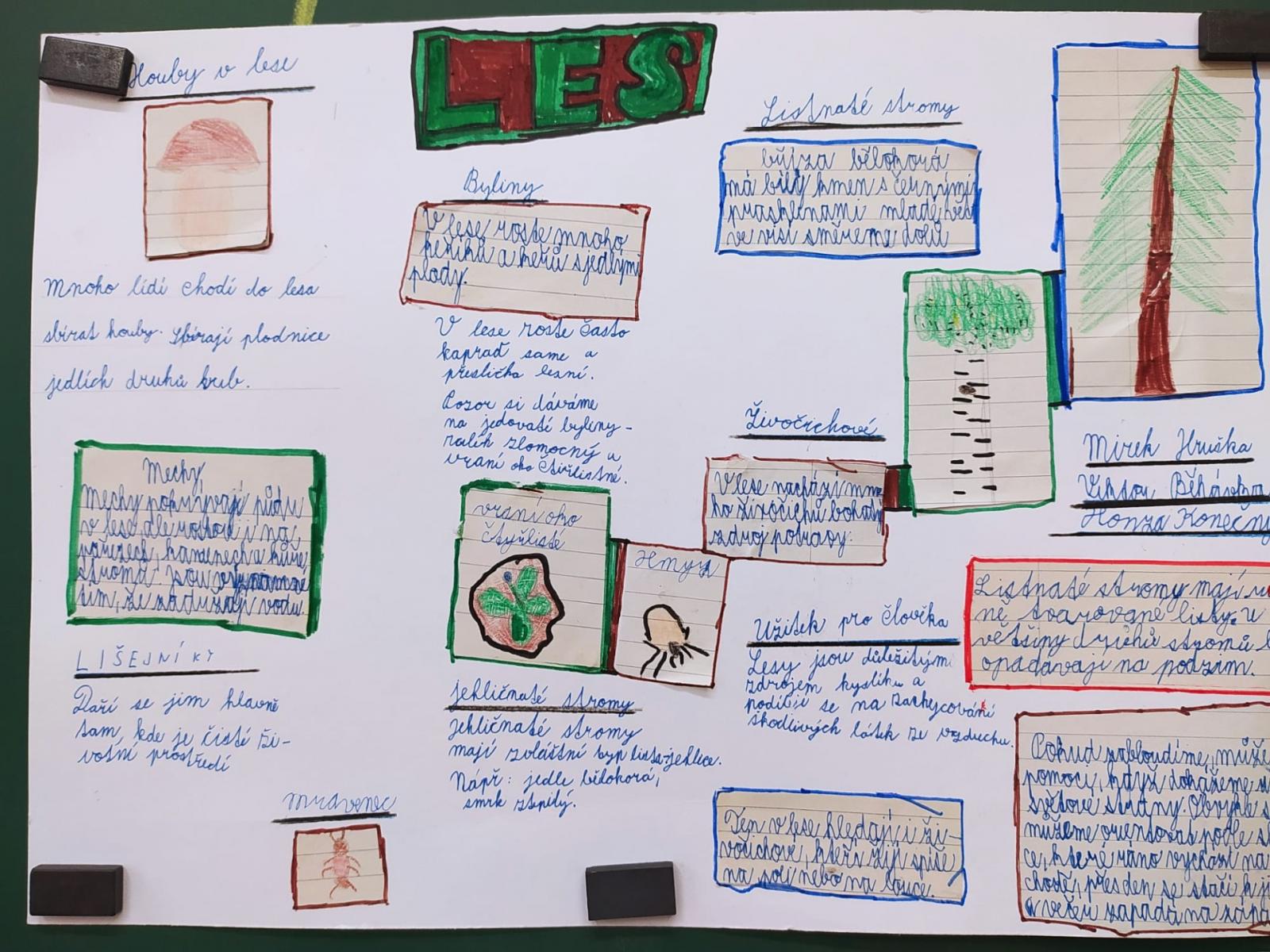 Abychom byli dobře připraveni na testík o lese, připravili jsme si opět společné projekty. Rozřadili jsme se úplně náhodně do skupin a pustili jsme do práce. Zase jsme si vyzkoušeli, že dokážeme spolupracovat a společně se učit. Ještě budeme své práce prezentovat.
