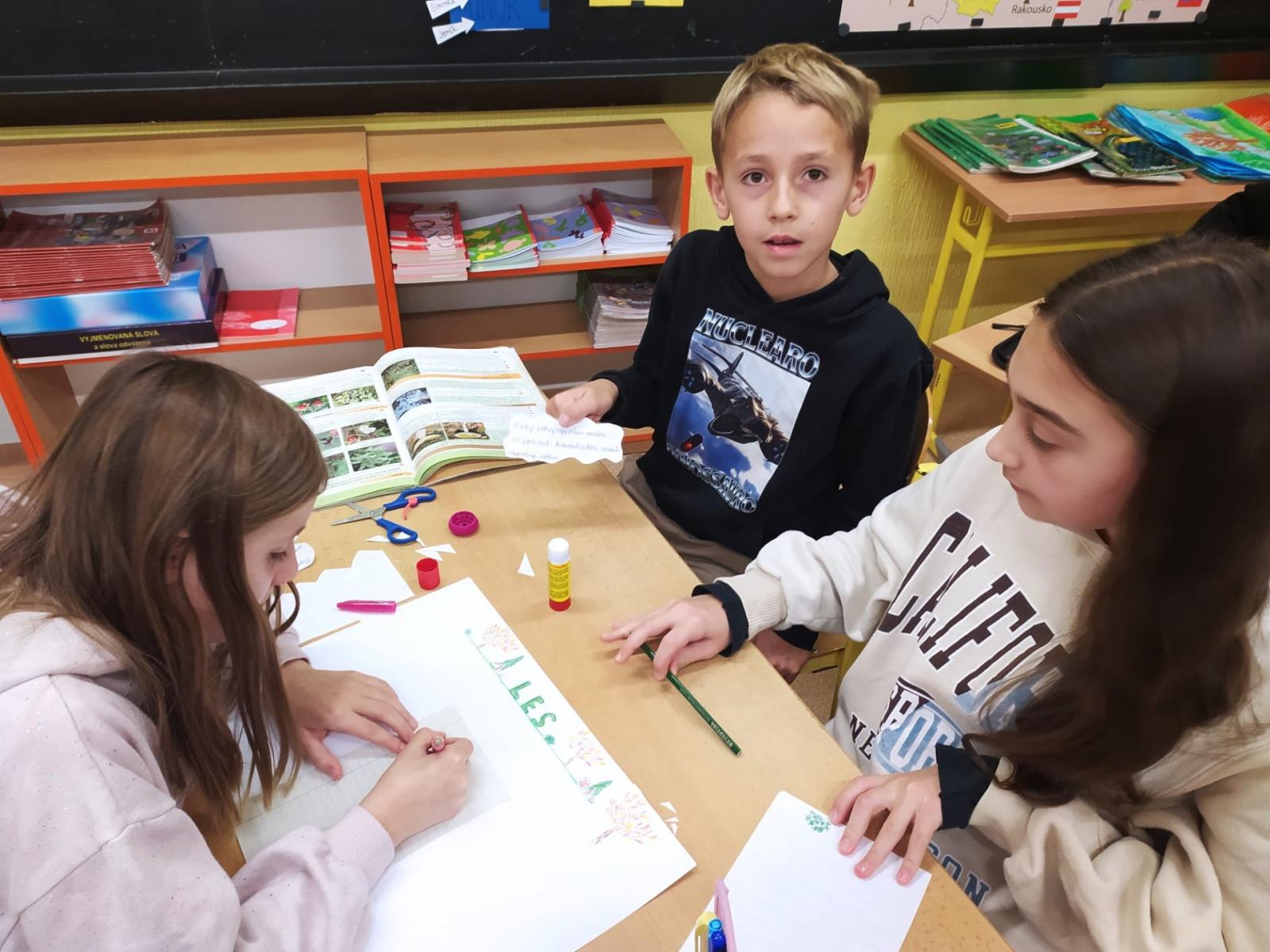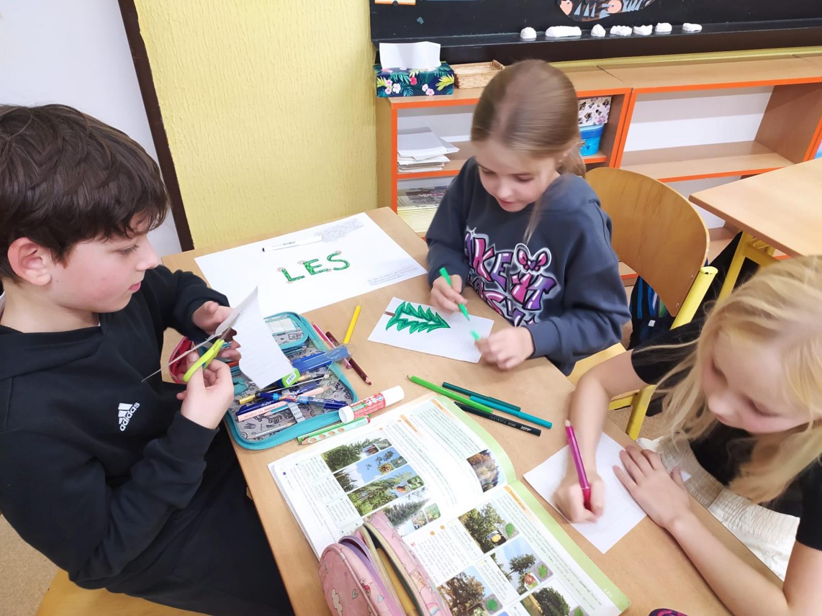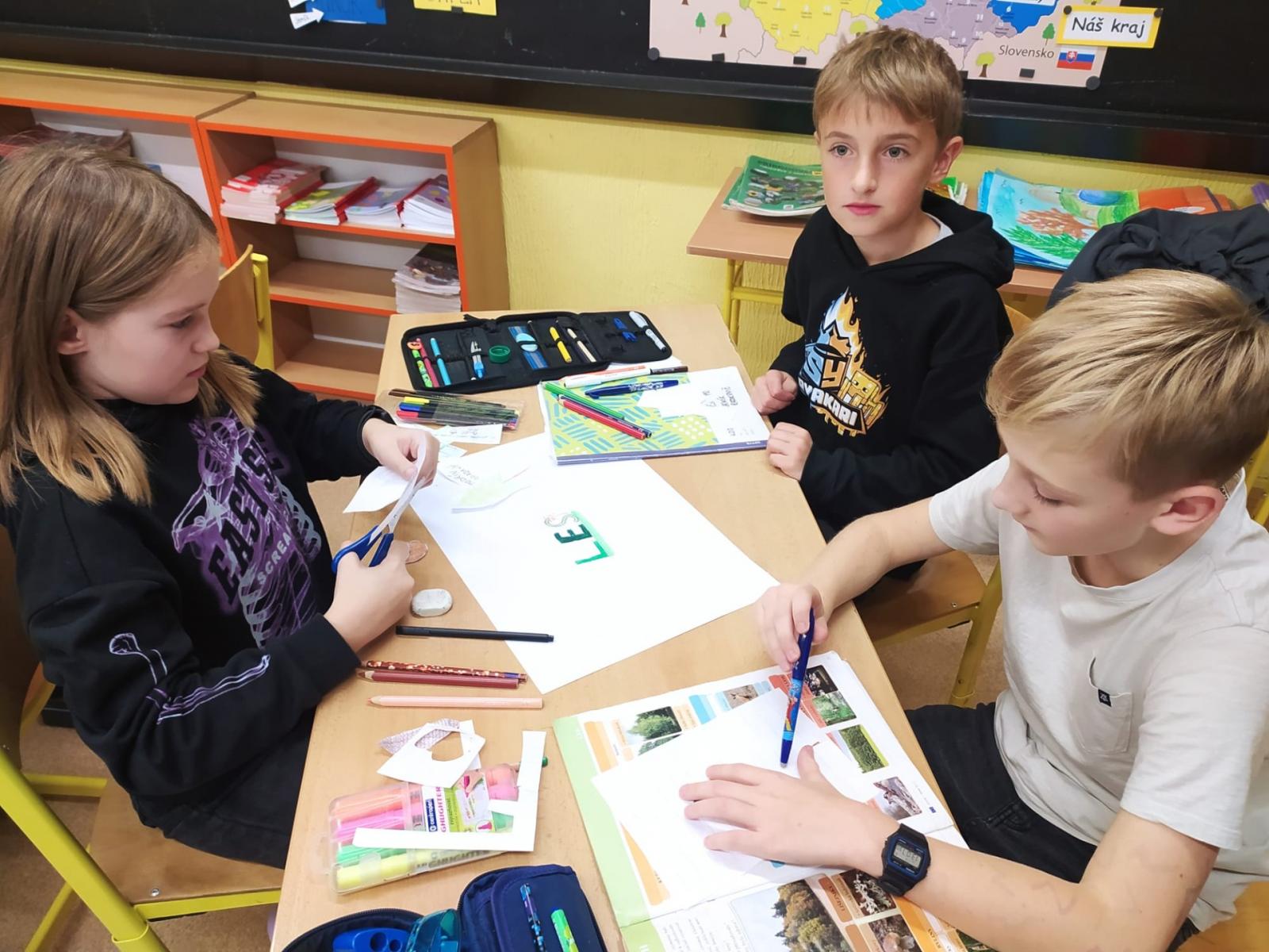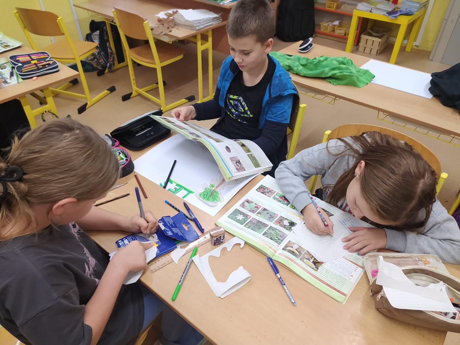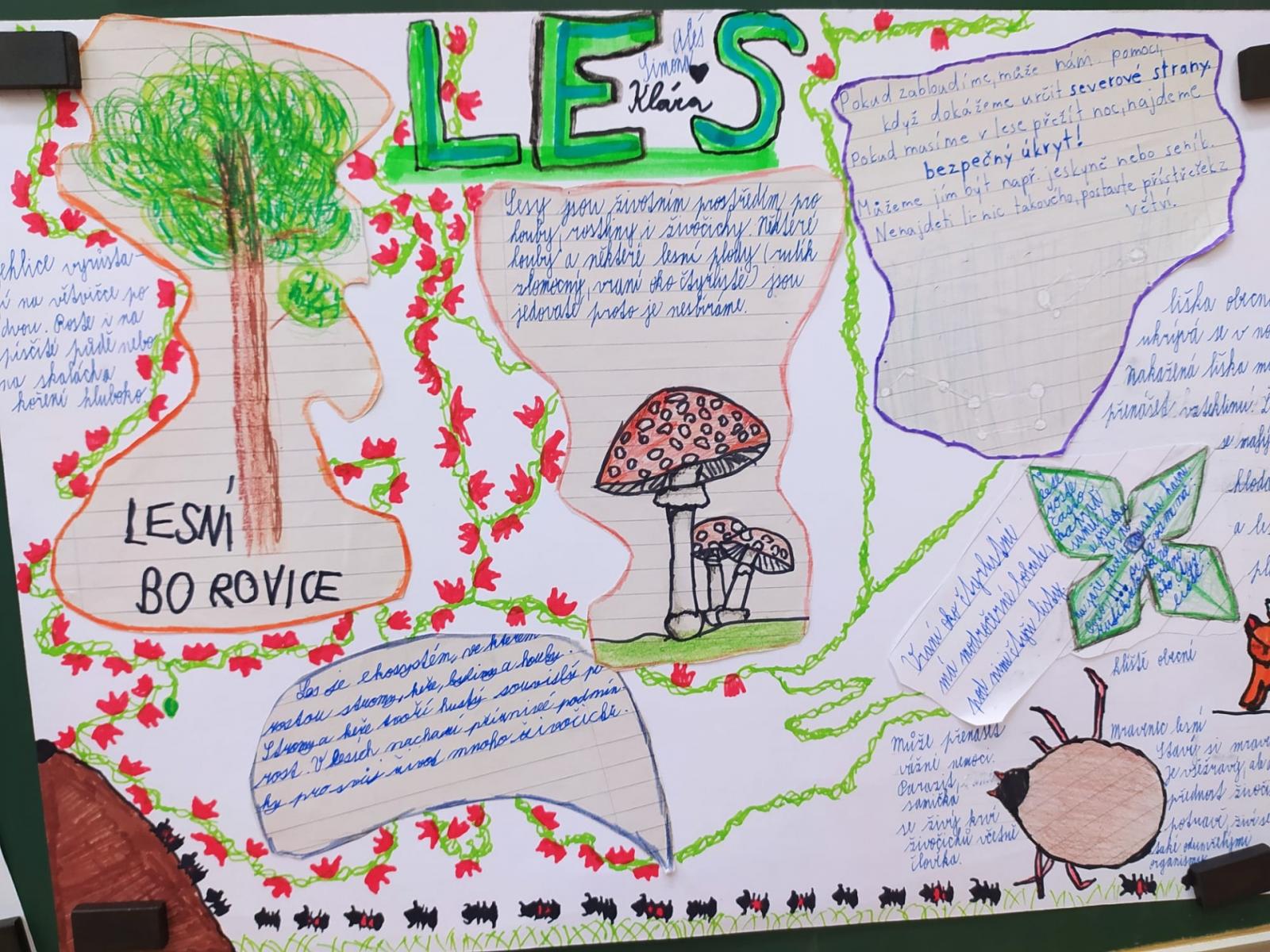 Abychom byli dobře připraveni na testík o lese, připravili jsme si opět společné projekty. Rozřadili jsme se úplně náhodně do skupin a pustili jsme do práce. Zase jsme si vyzkoušeli, že dokážeme spolupracovat a společně se učit. Ještě budeme své práce prezentovat.