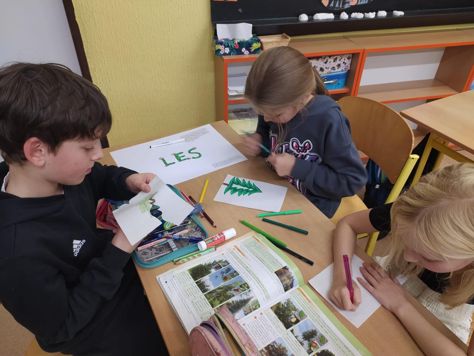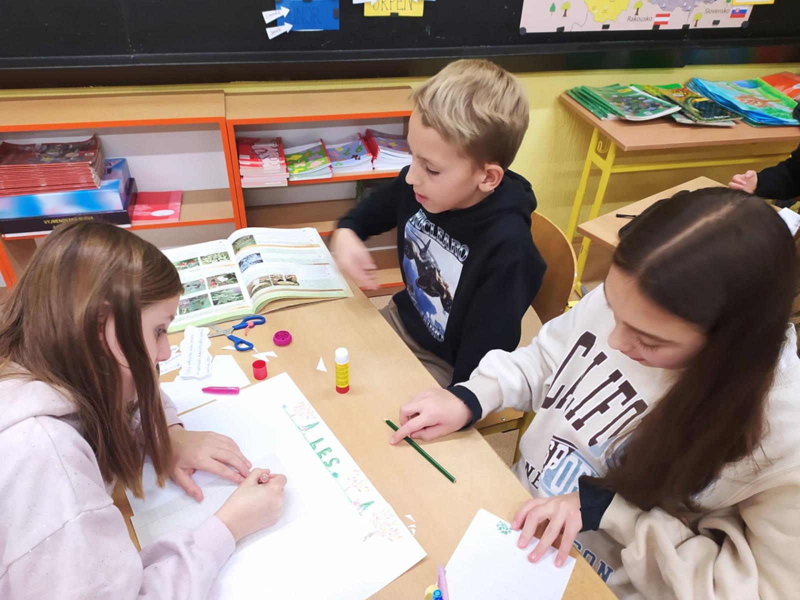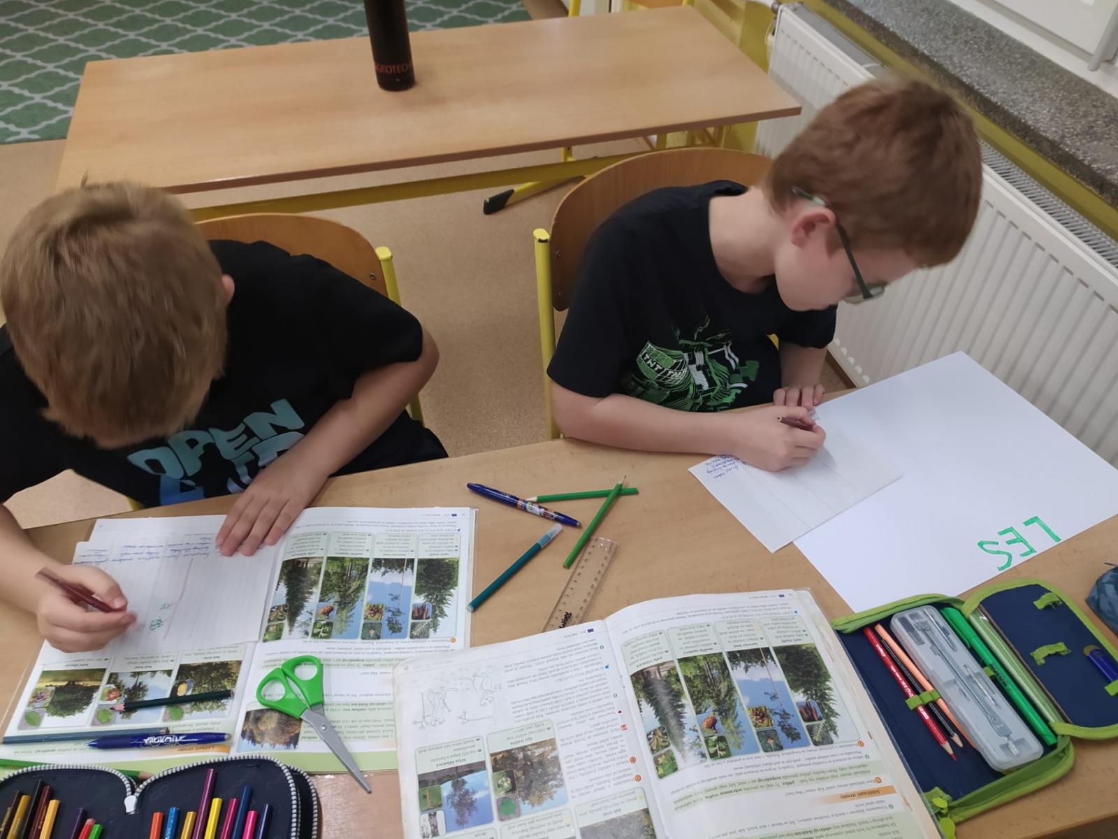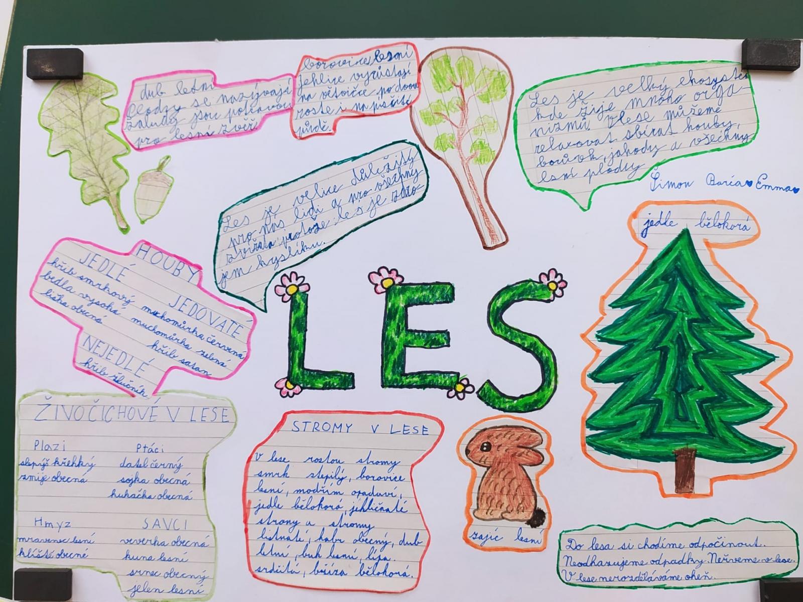 Abychom byli dobře připraveni na testík o lese, připravili jsme si opět společné projekty. Rozřadili jsme se úplně náhodně do skupin a pustili jsme do práce. Zase jsme si vyzkoušeli, že dokážeme spolupracovat a společně se učit. Ještě budeme své práce prezentovat.