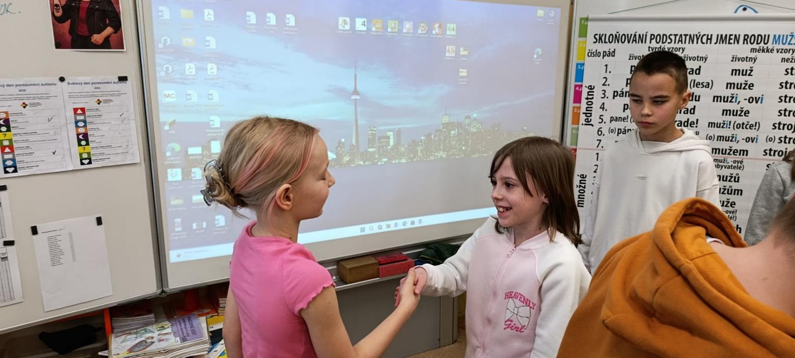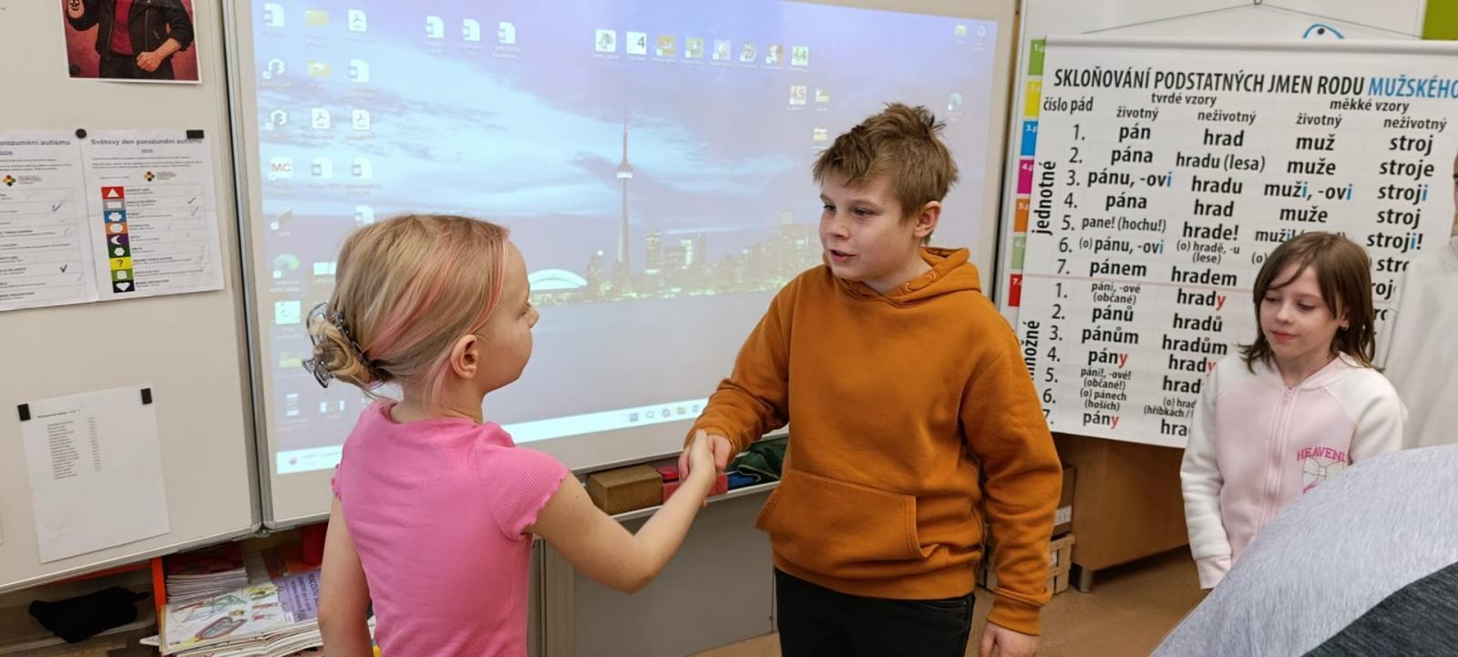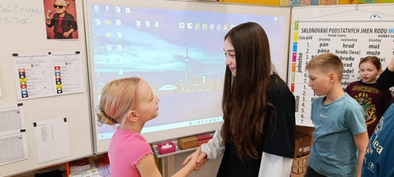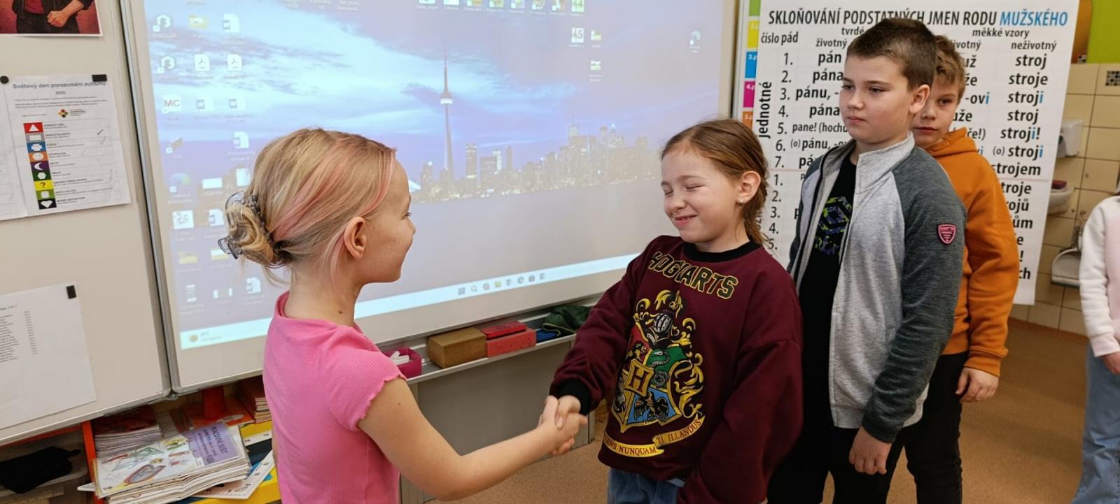Naše Emmička je sice drobek, ale hodná, kamarádská a veselá. Celá třída Ti, Emmi, přeje jenom to nejlepší, štěstí, radost a úspěchy nejen ve škole. Děkujeme za sladké medvídky.