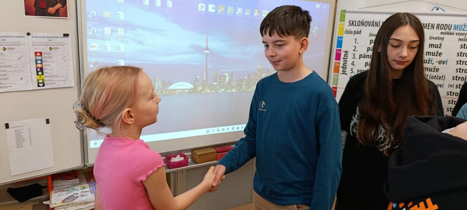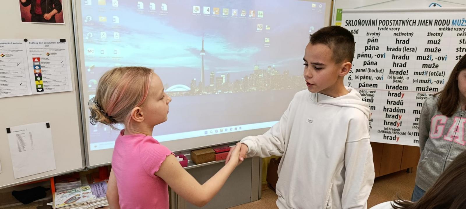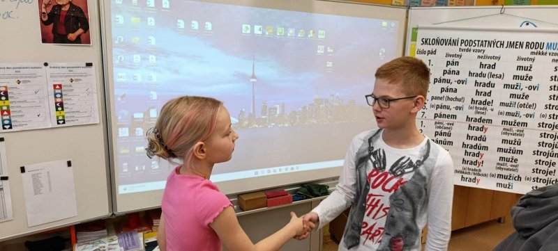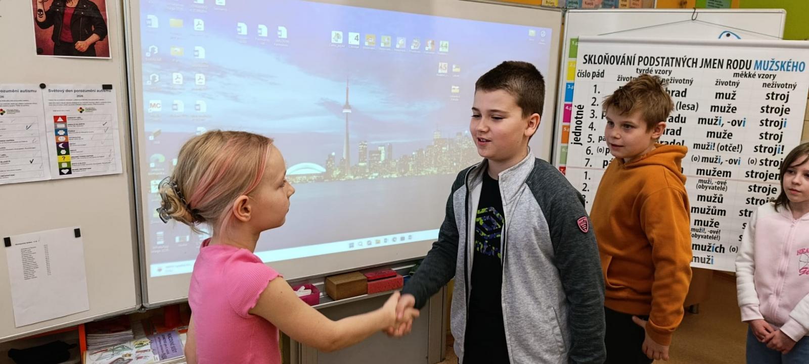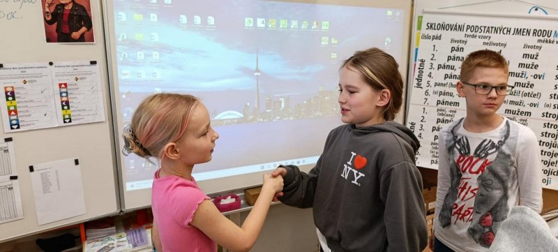 Naše Emmička je sice drobek, ale hodná, kamarádská a veselá. Celá třída Ti, Emmi, přeje jenom to nejlepší, štěstí, radost a úspěchy nejen ve škole. Děkujeme za sladké medvídky.