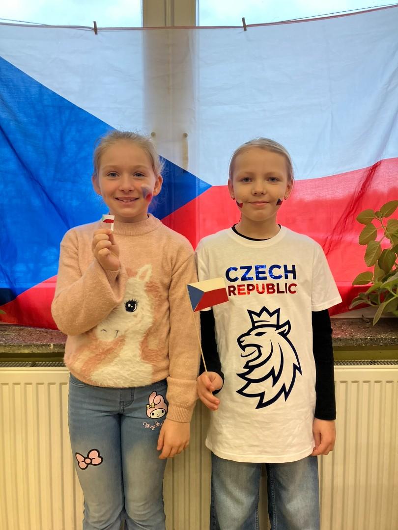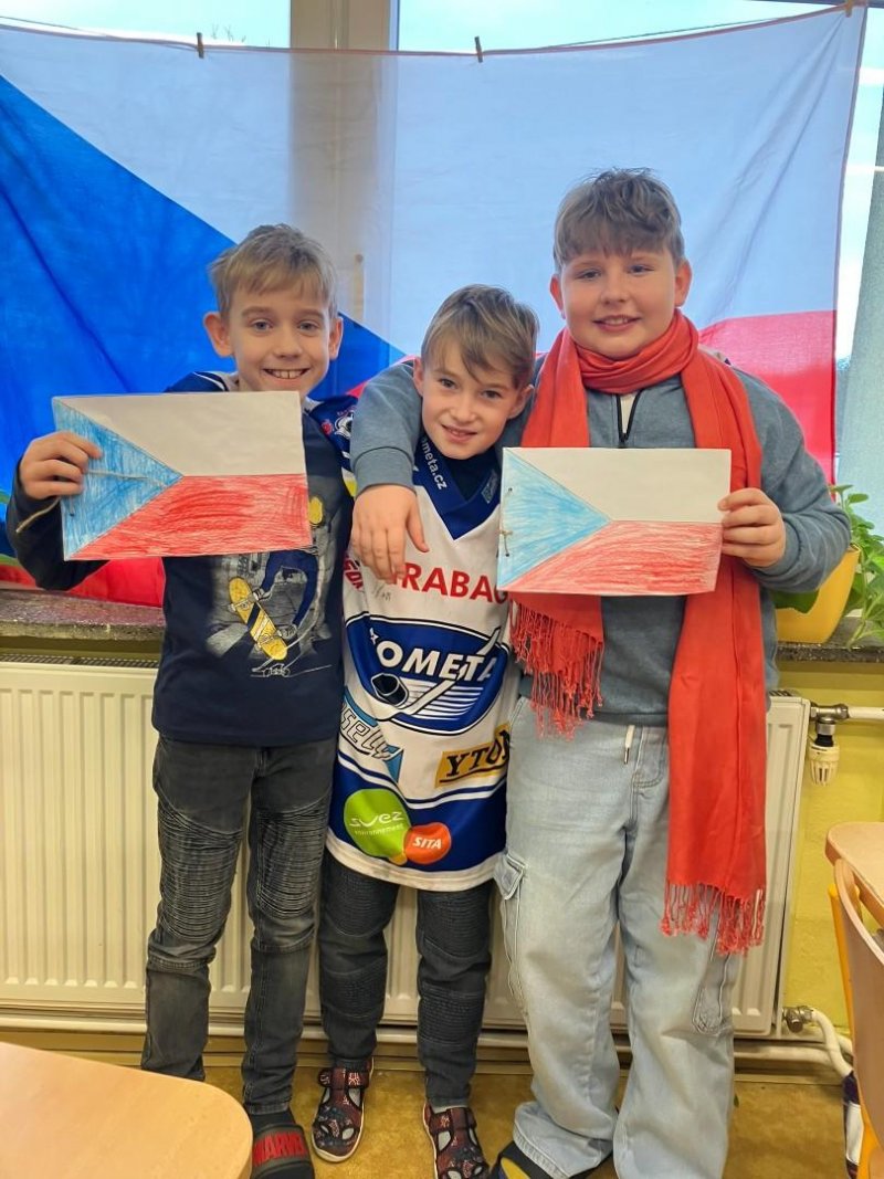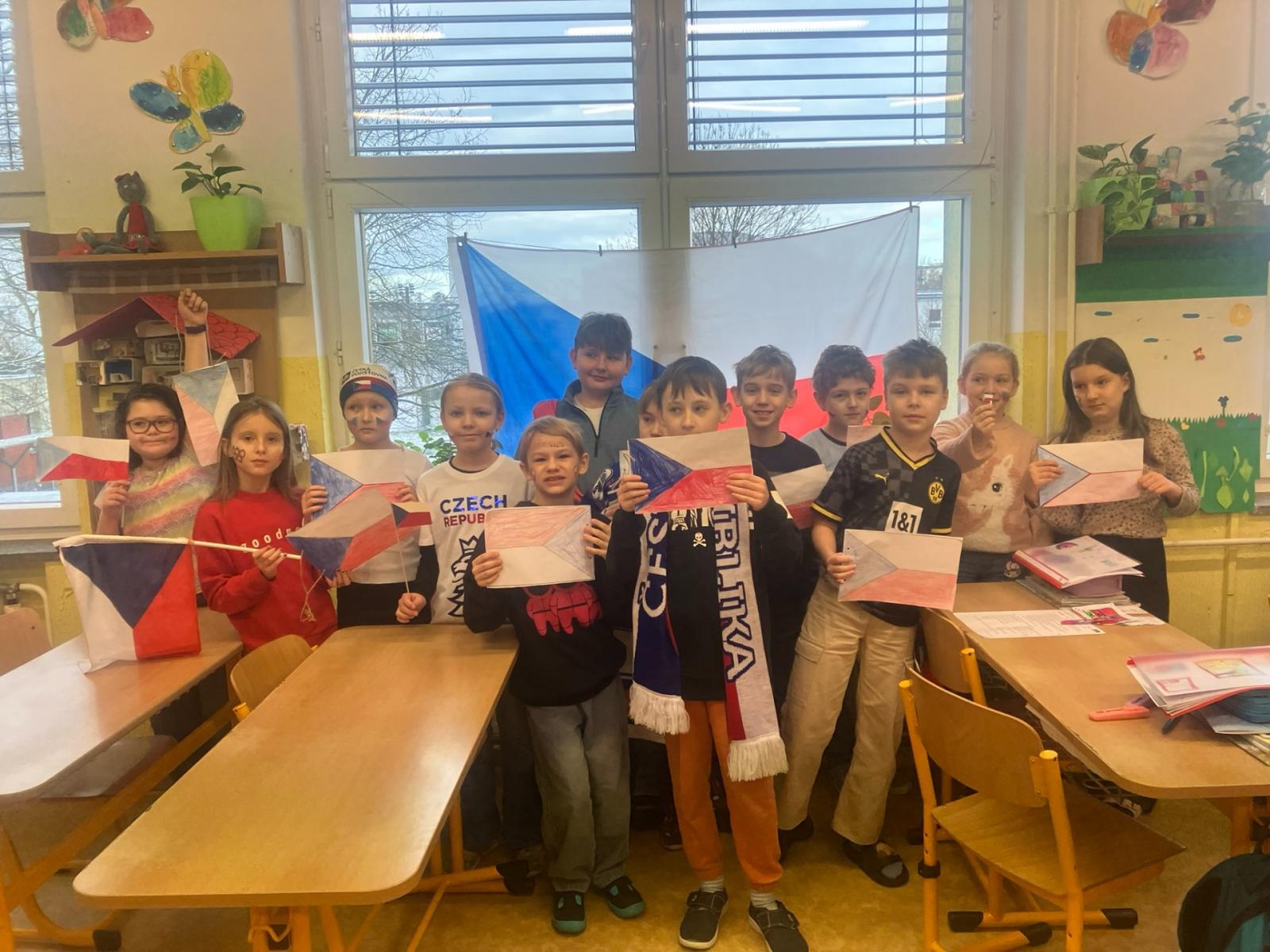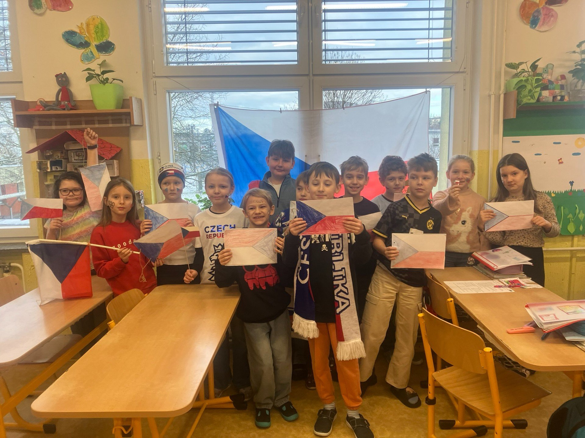 |ve středu 18. února jsme si zažili také olympijskou atmosféru, sounáležitost a národní hrdost. S pečlivostí jsme si připravili české a olympijské vlajky, oblékli se do fanouškovského a mohutně zaskandovali s ostatními žáky 1. stupně v tělocvičně.
