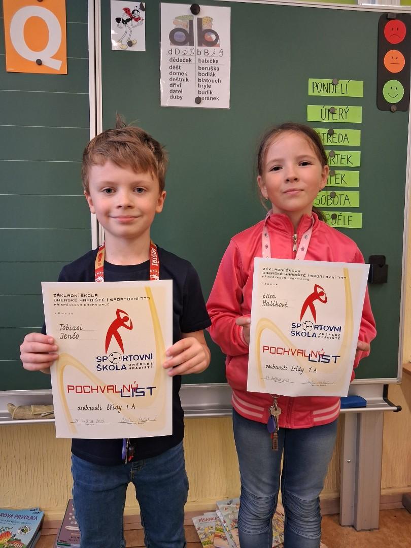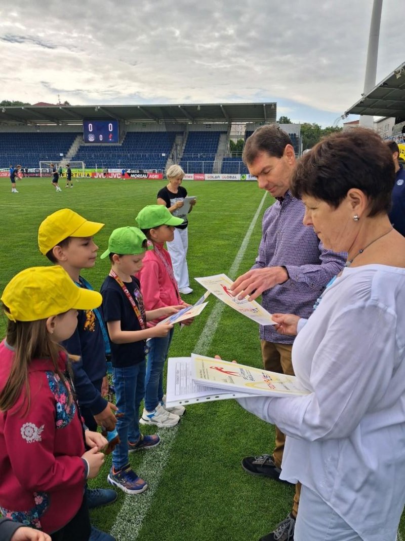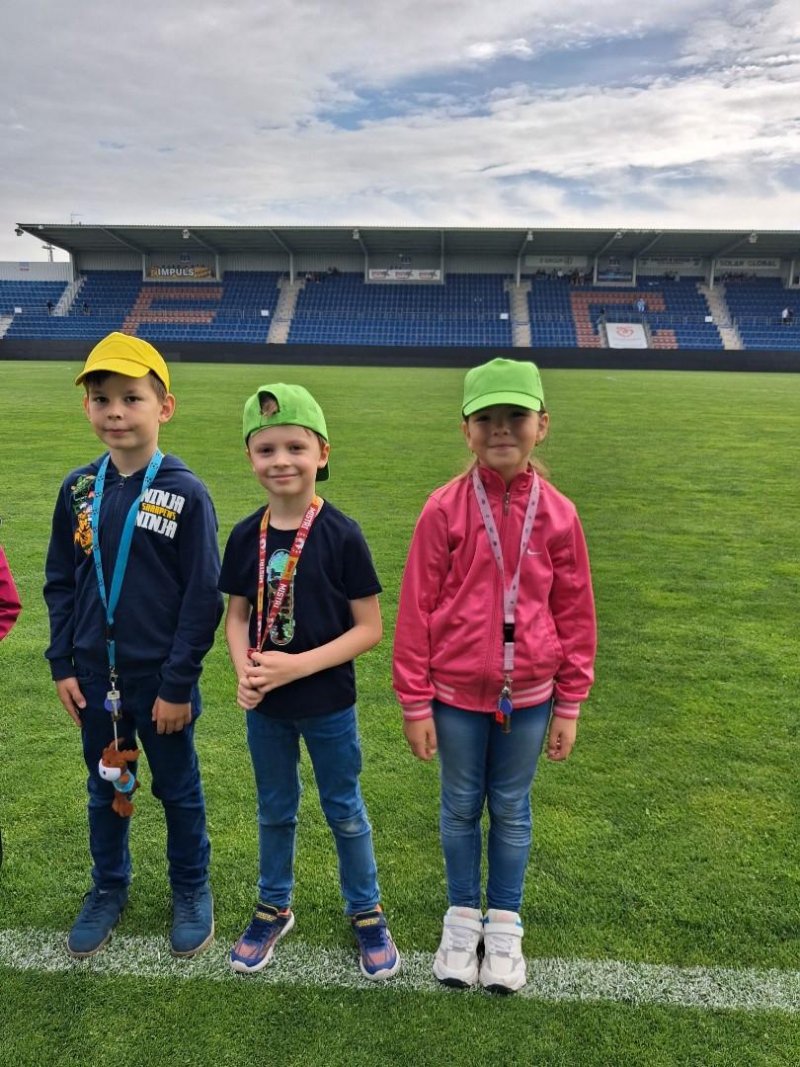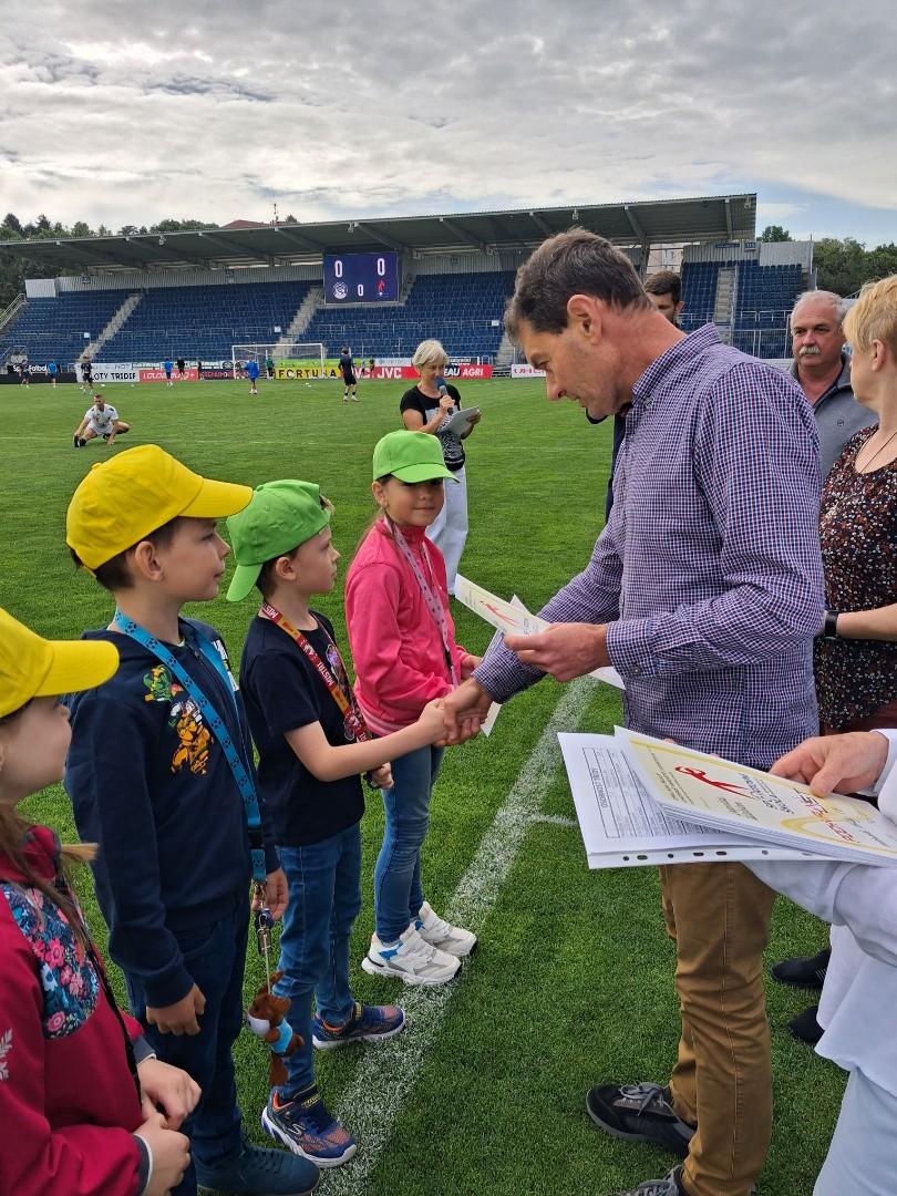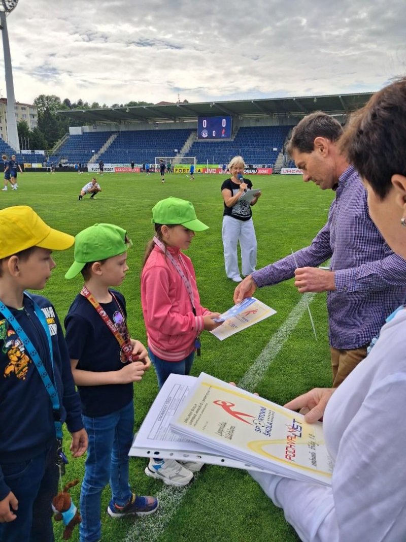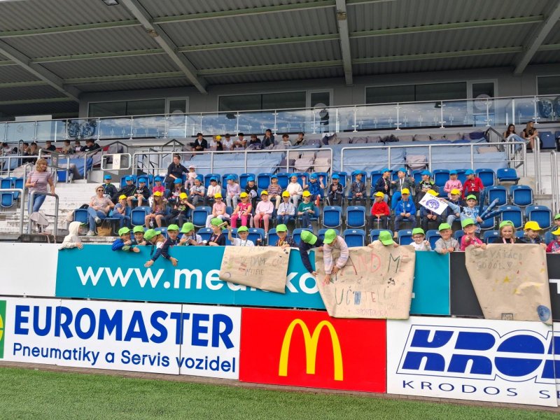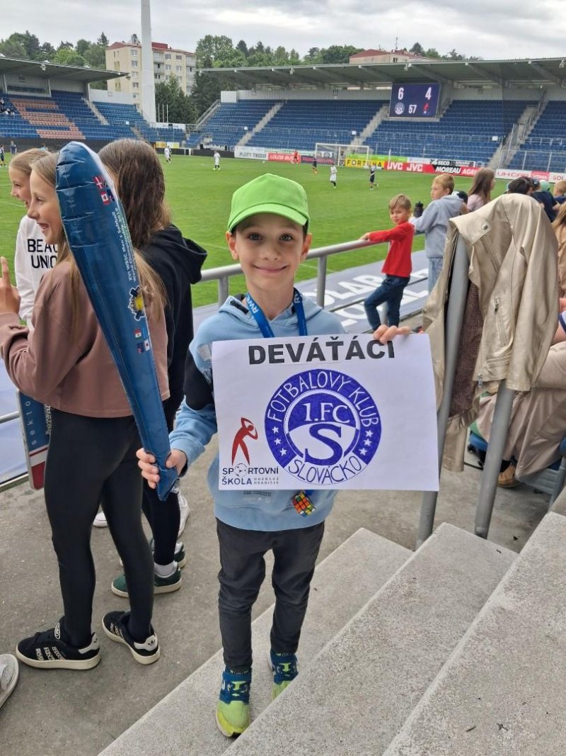 Ve středu 28. května se na hřišti 1. FC Slovácko odehrálo již tradiční rozlučkové utkání DEVÁŤÁCI x TÝM OSOBNOSTÍ. Na toto přátelské utkání jsme si vyrobili transparenty. Ještě před samotným utkáním byly oceněny osobnosti jednotlivých tříd. Za naši třídu dostali ocenění Ellen Halíková a Tobias Jenčo. Moc gratulujeme!