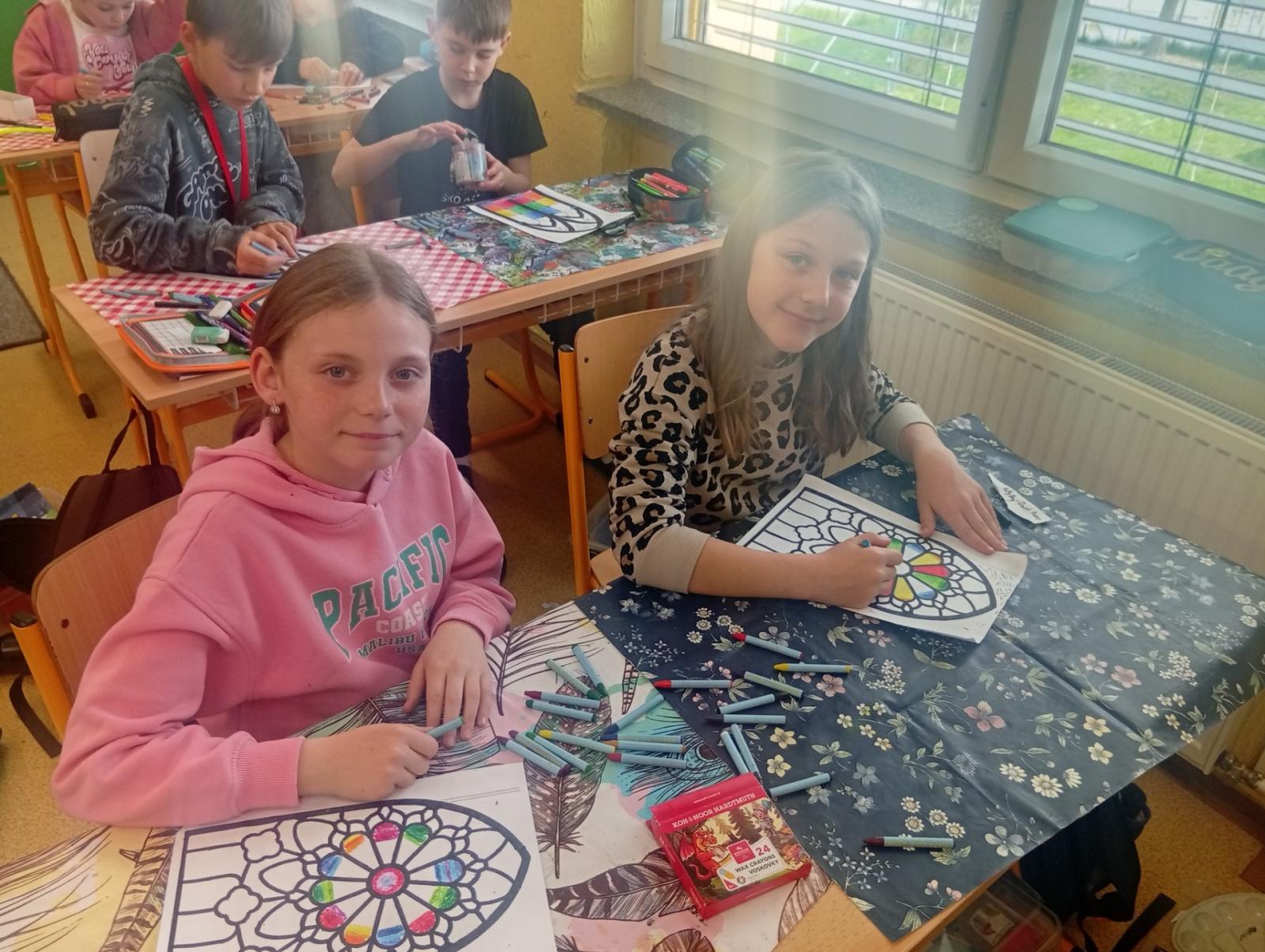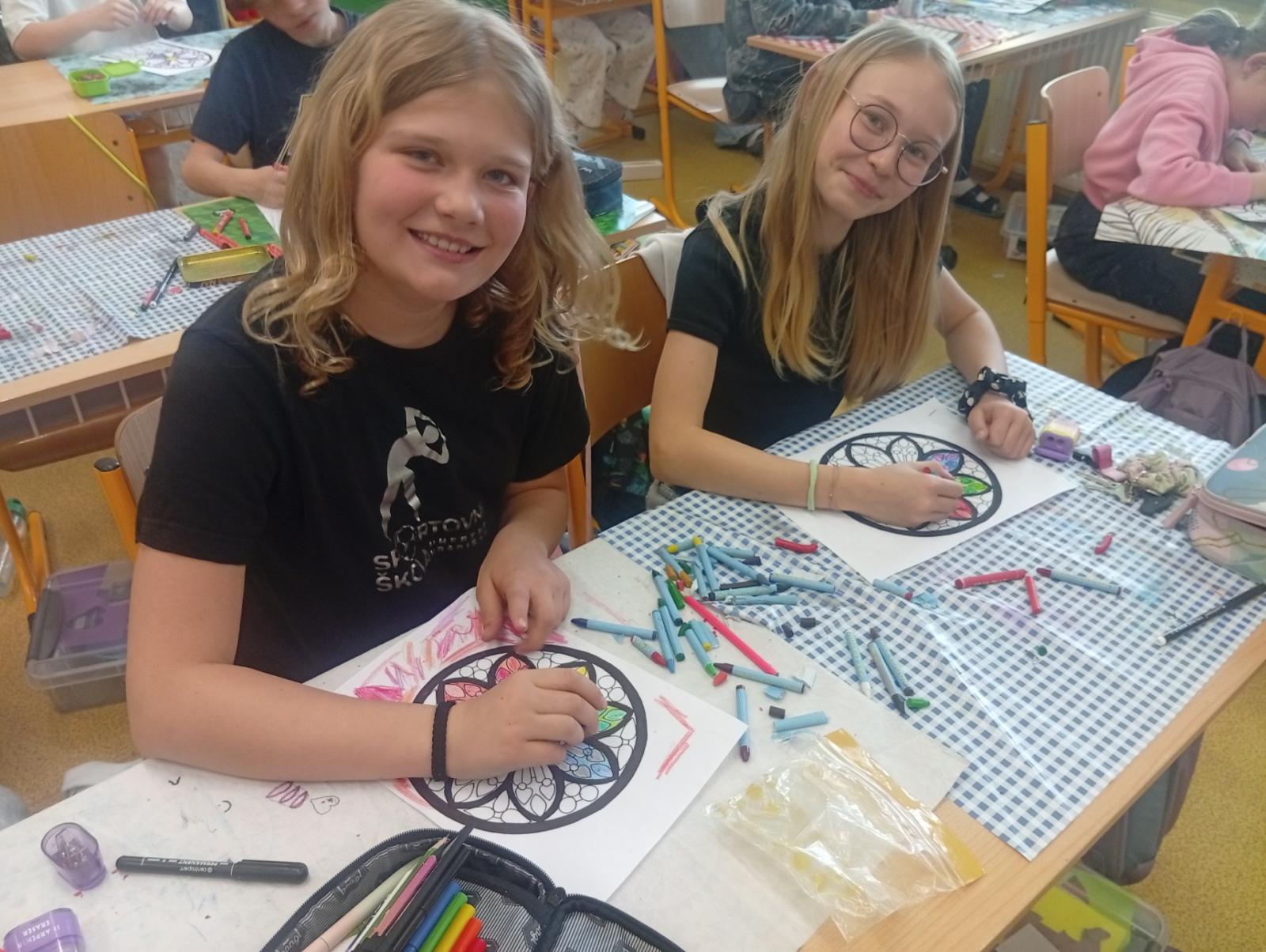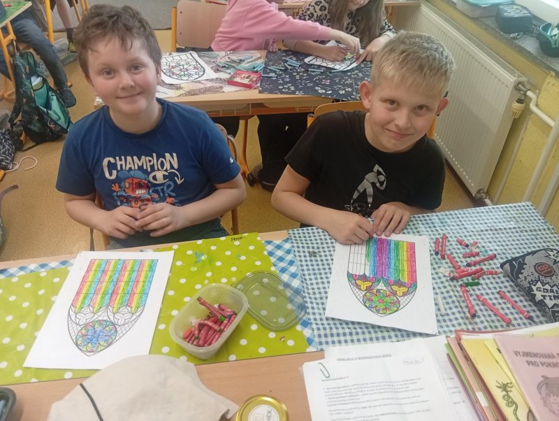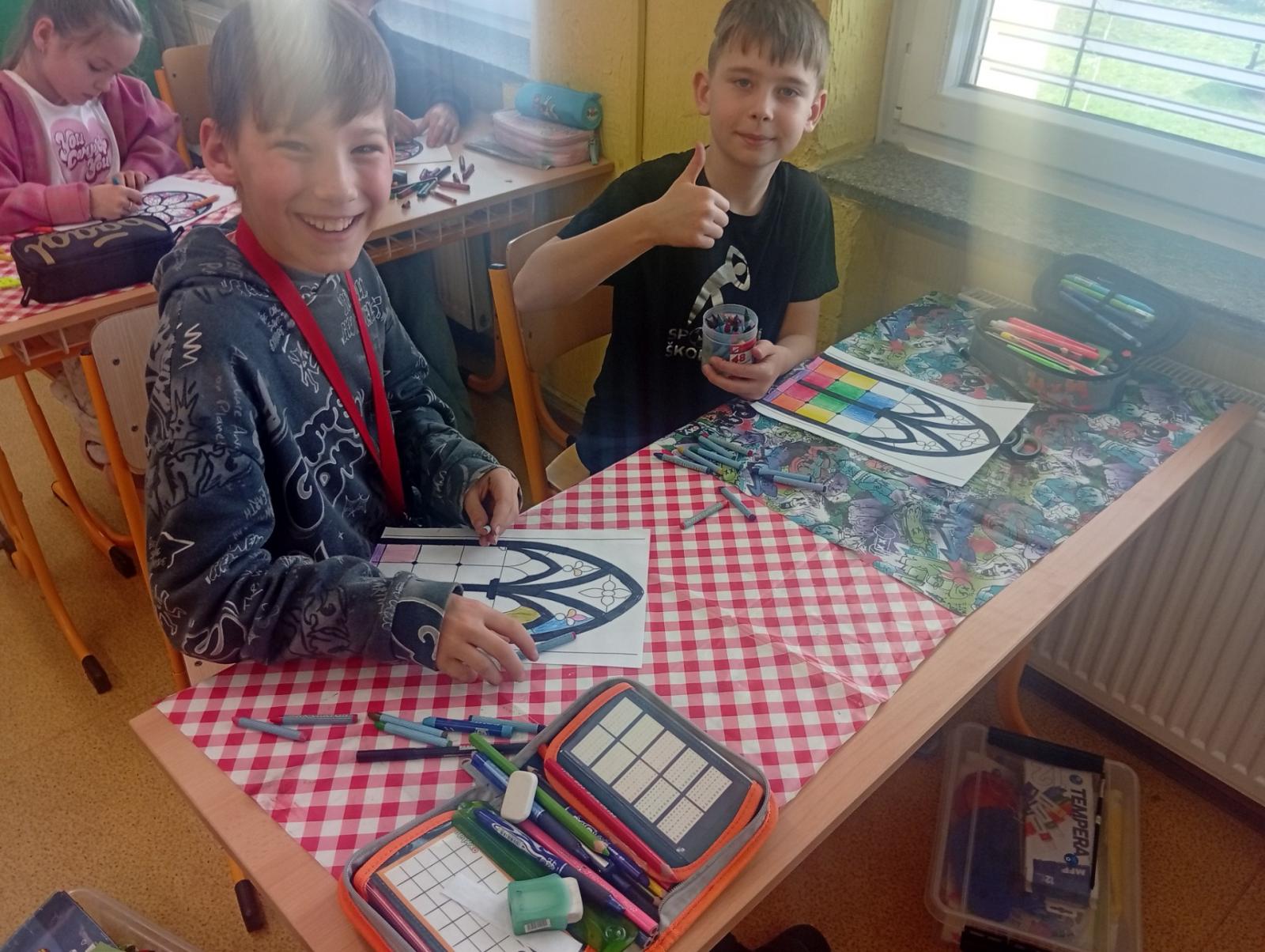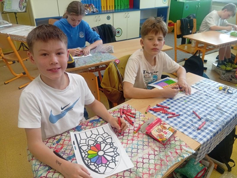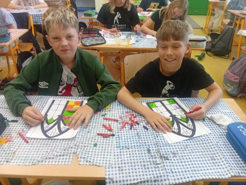 V období přemyslovských knížat a králů převládal umělecký směr GOTIKA. Tak jsme si ve výtvarce zkusili olejovou metodou gotická okna a rozety. A myslím, že se nám to povedlo. Už stačí jen vše zalaminovat a vystavit do našeho novodobého okna :)