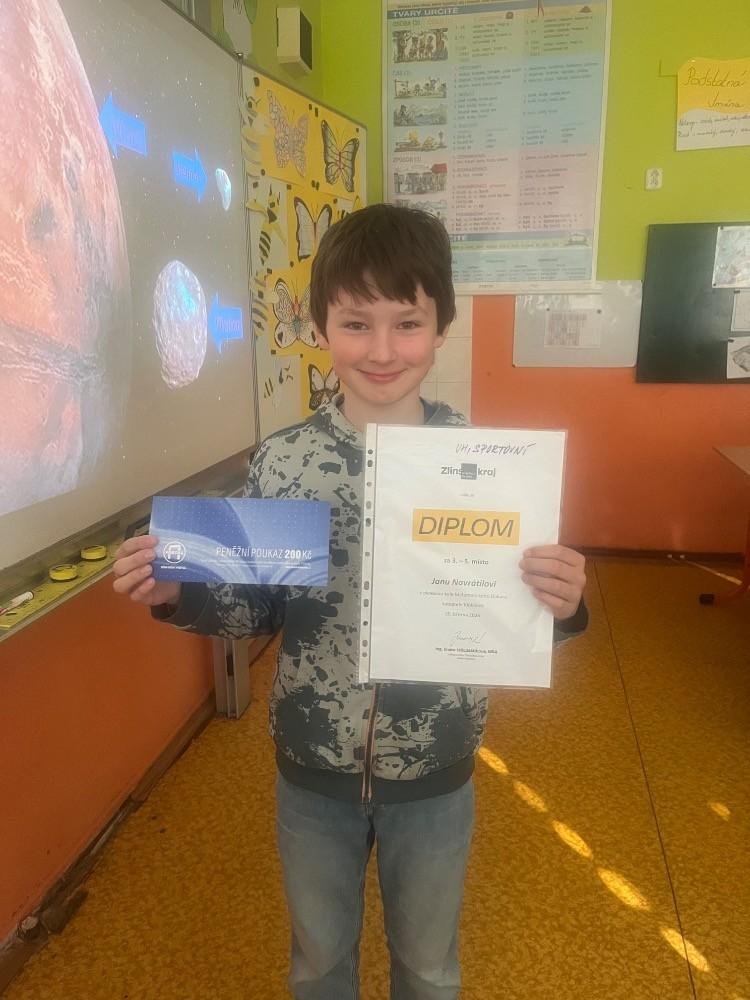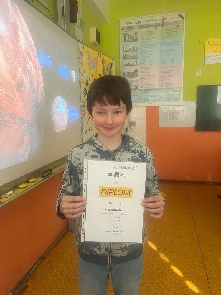 Honzík Navrátil obsadil krásné 3. místo v okresním kole Matematického klokana. Moc blahopřejeme!