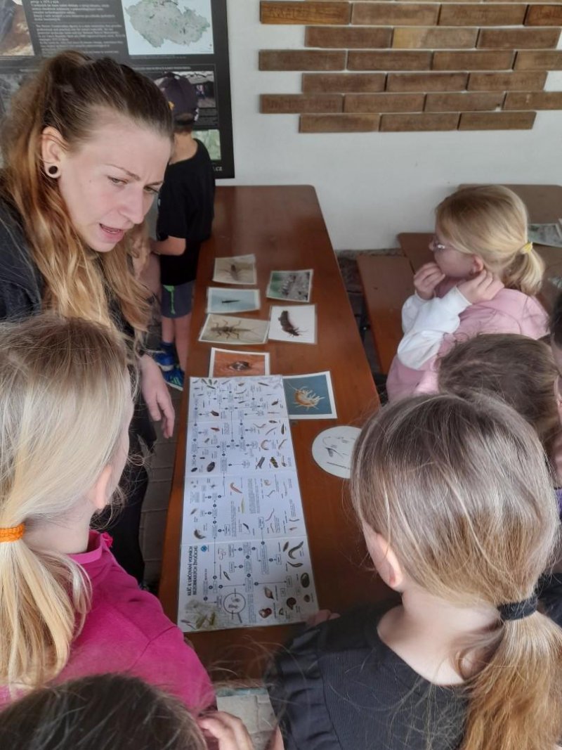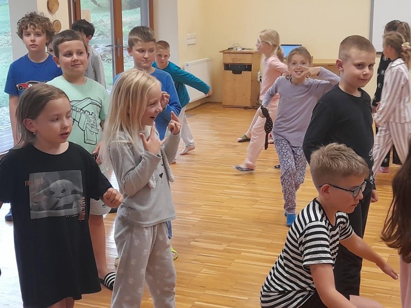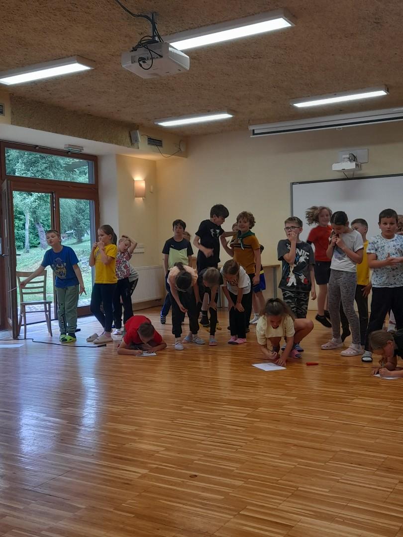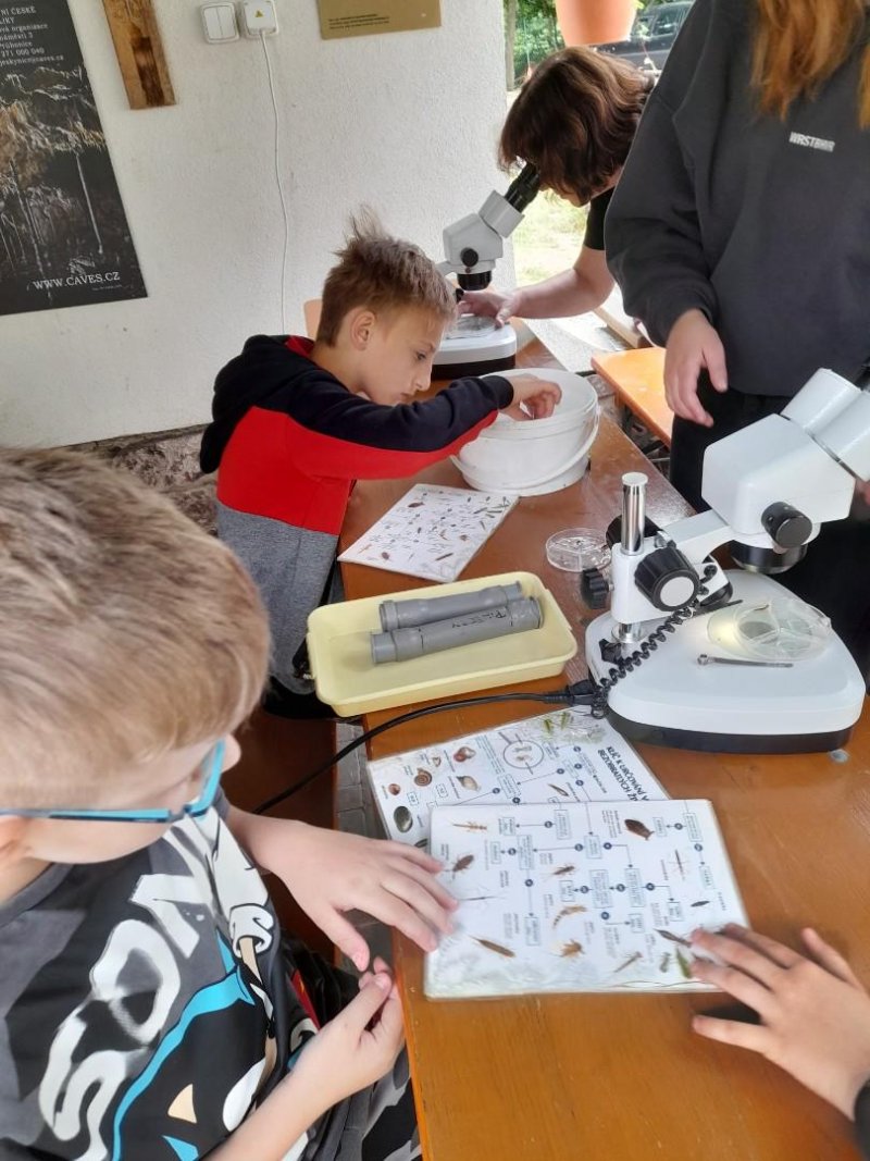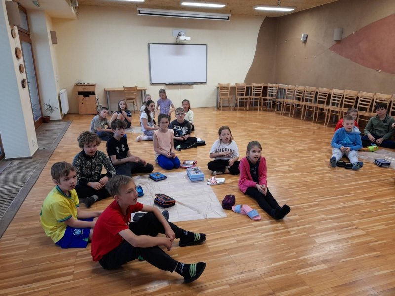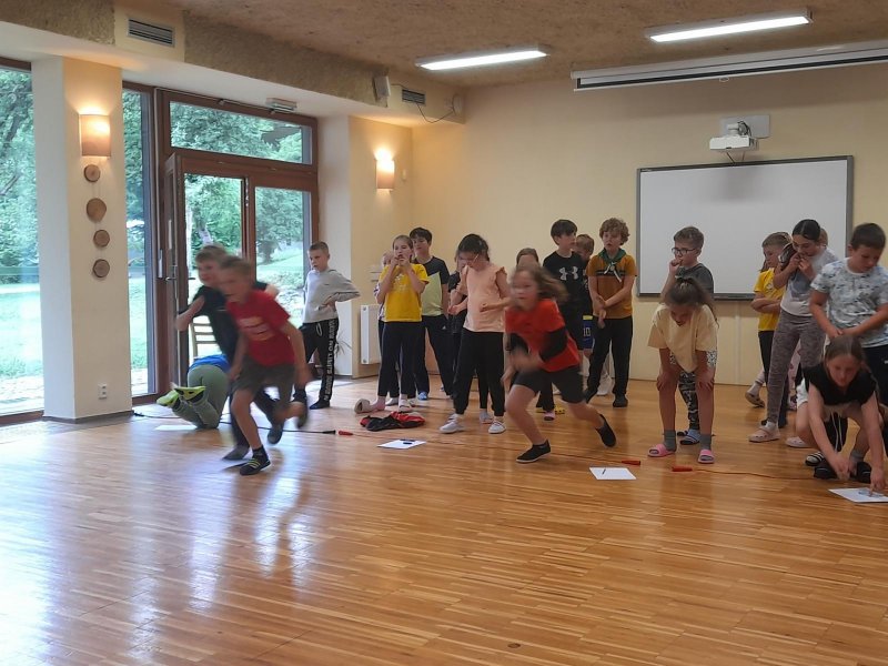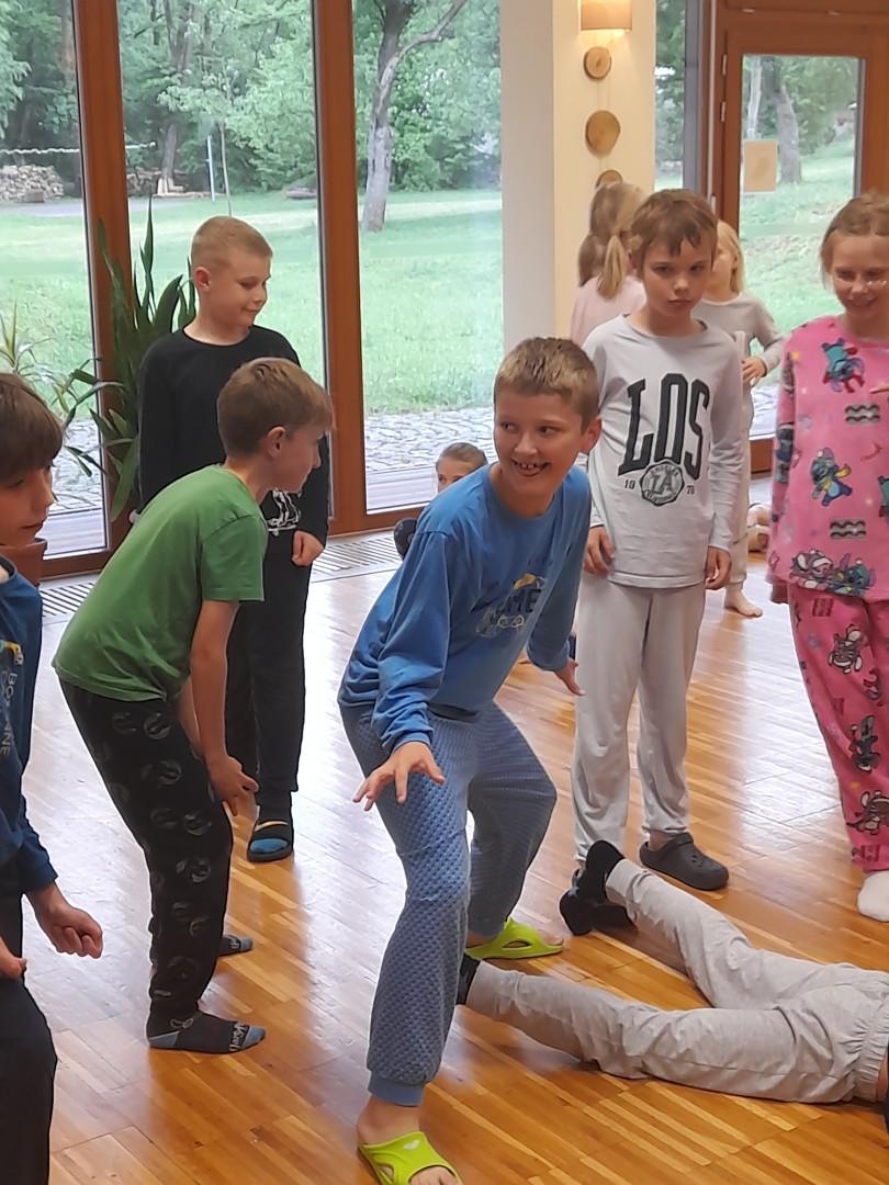 Středa byla ve znamení bádání a zkoumání živočichů, které jsme si sami vylovili v nedalekém potoce. Vylovili jsme chrostíky, blešivce či jepice a pod lupou je pak pozorovali. Po obědě a krátkém odpočinku nás čekal orientační běh podle fáborků s 15 otázkami učiva třetího ročníku. Nešlo tedy jen o rychlost, ale i o vědomosti. Odpoledne nás počasí zahnalo na sál, kde jsme hráli různé hry a večer jsme si užili pyžamovou party.