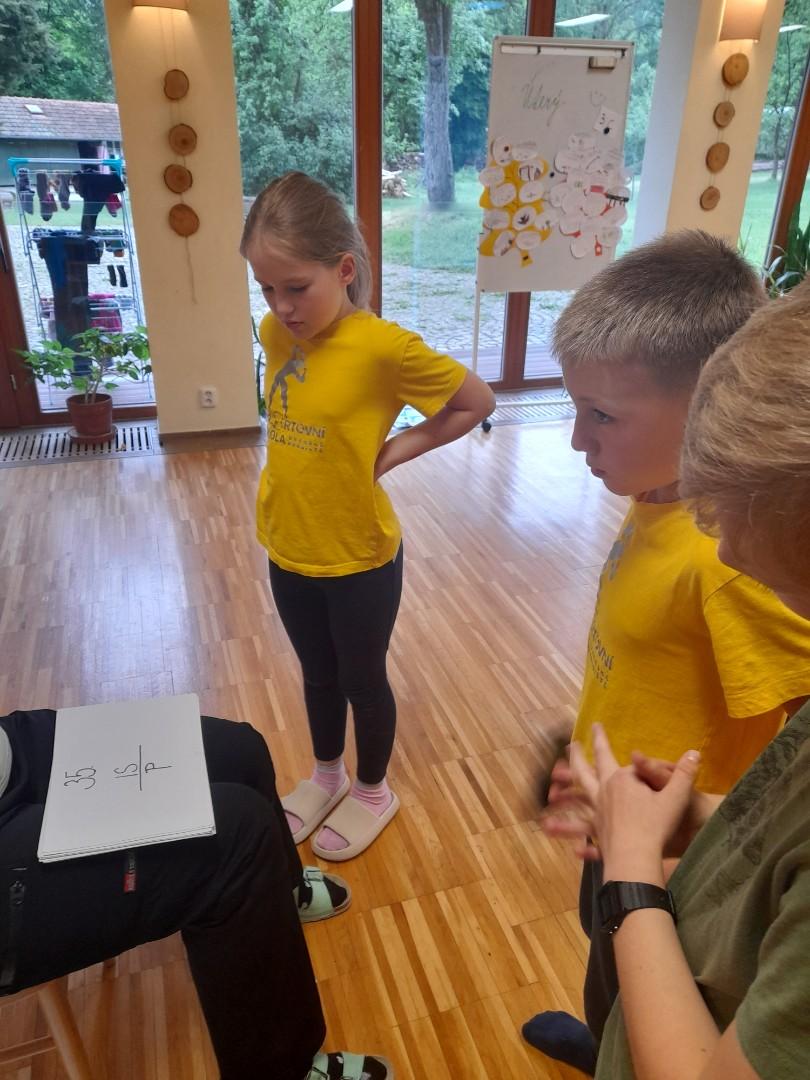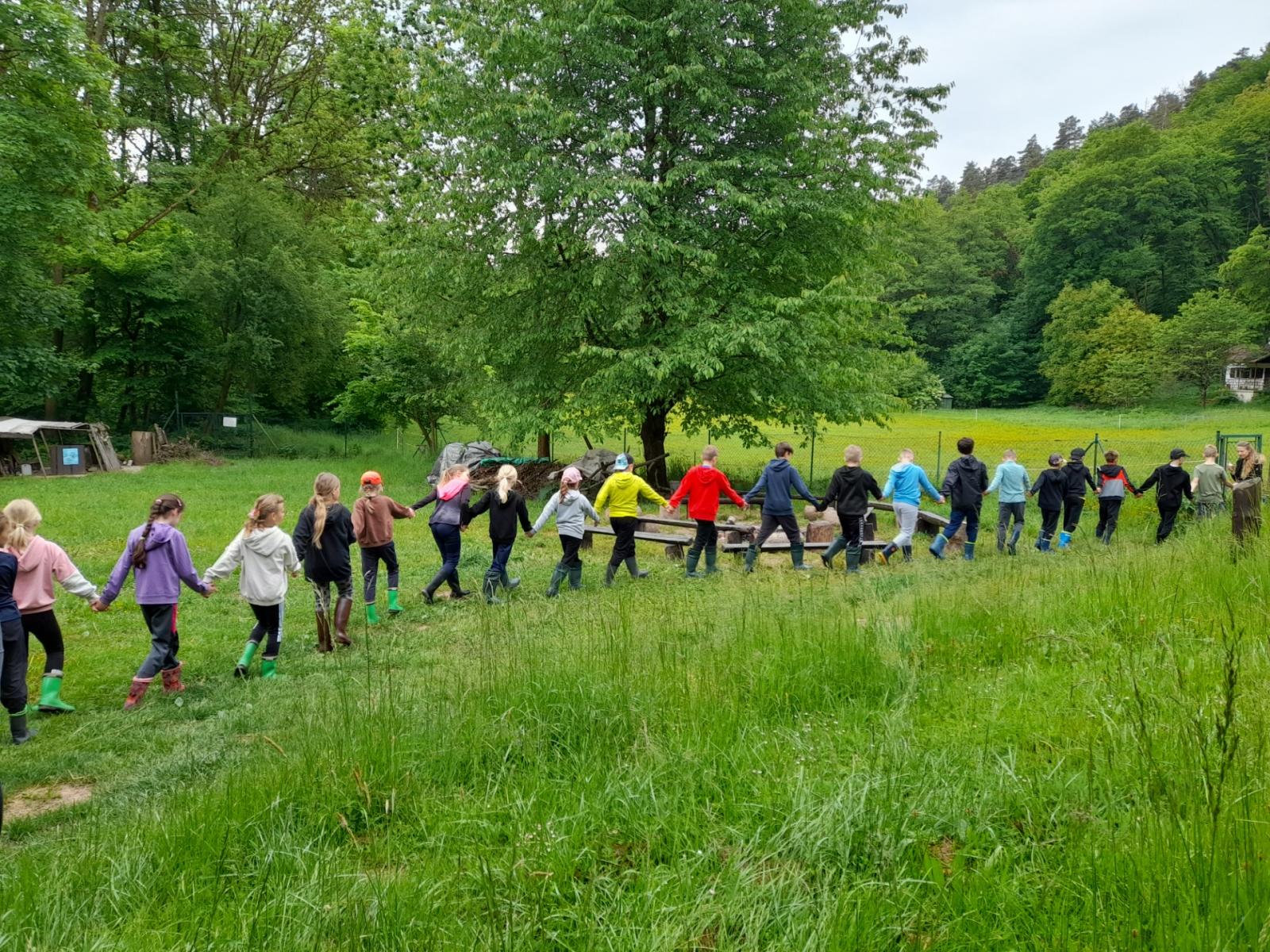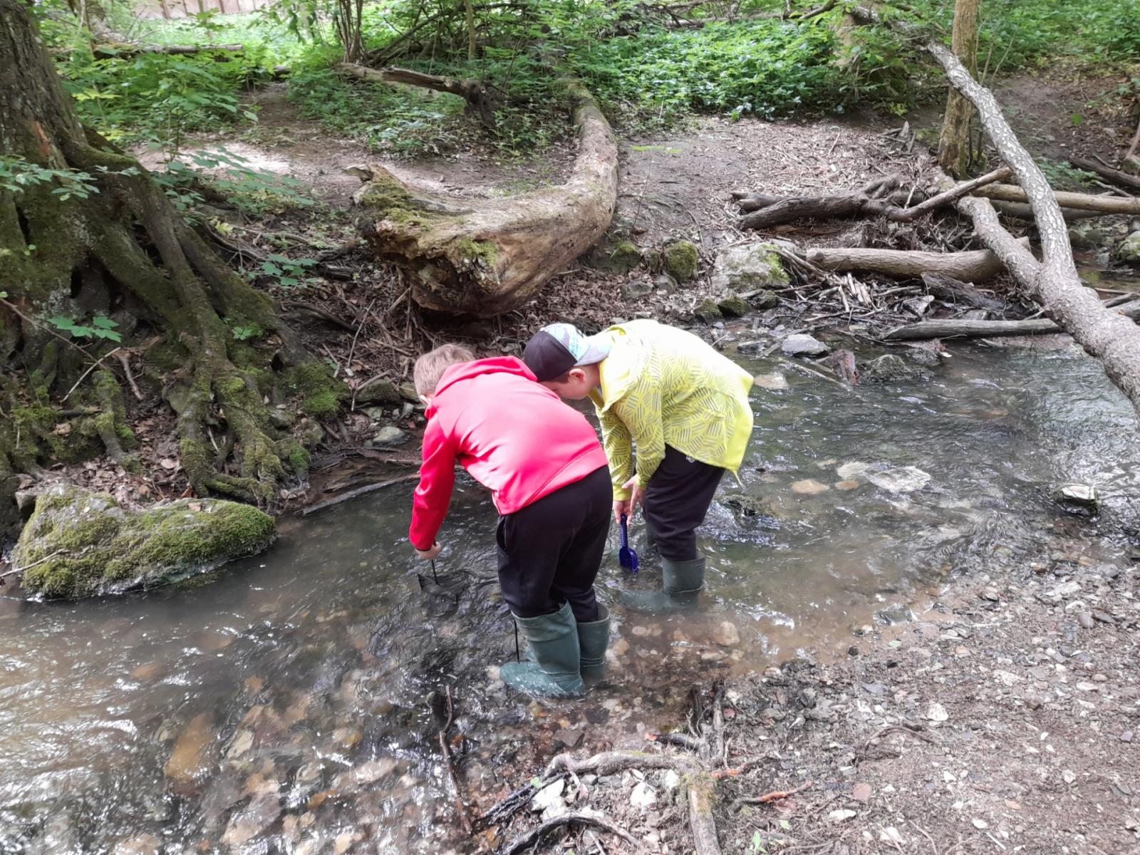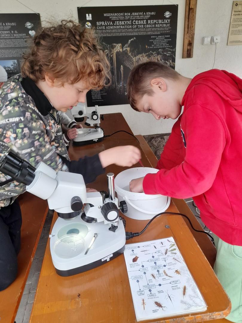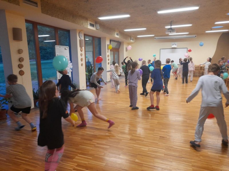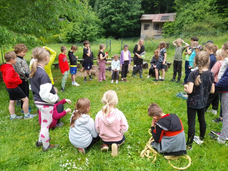 Středa byla ve znamení bádání a zkoumání živočichů, které jsme si sami vylovili v nedalekém potoce. Vylovili jsme chrostíky, blešivce či jepice a pod lupou je pak pozorovali. Po obědě a krátkém odpočinku nás čekal orientační běh podle fáborků s 15 otázkami učiva třetího ročníku. Nešlo tedy jen o rychlost, ale i o vědomosti. Odpoledne nás počasí zahnalo na sál, kde jsme hráli různé hry a večer jsme si užili pyžamovou party.