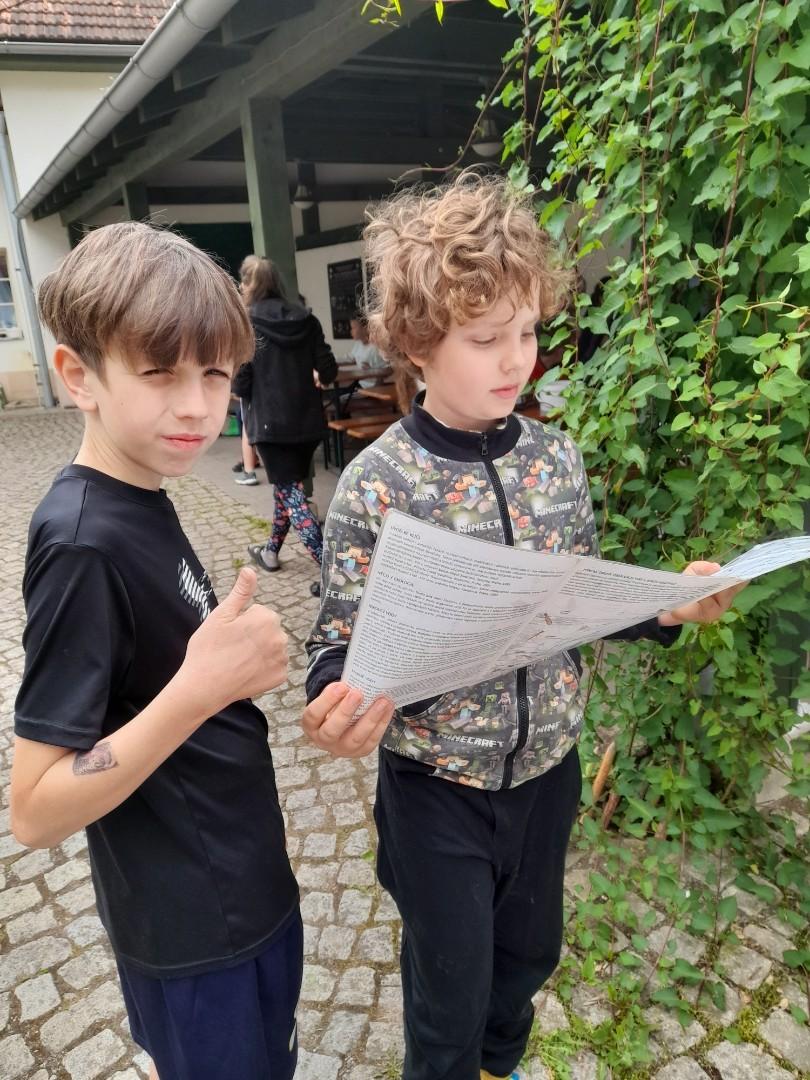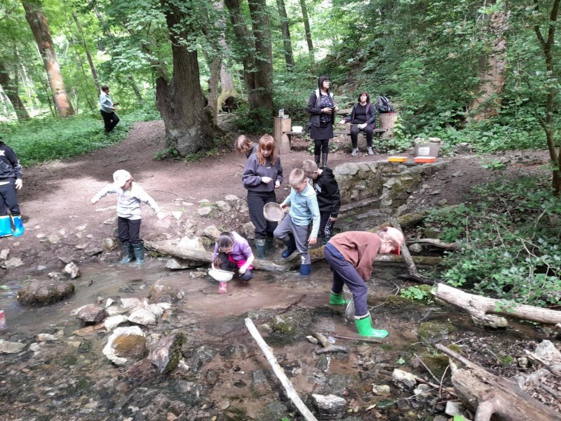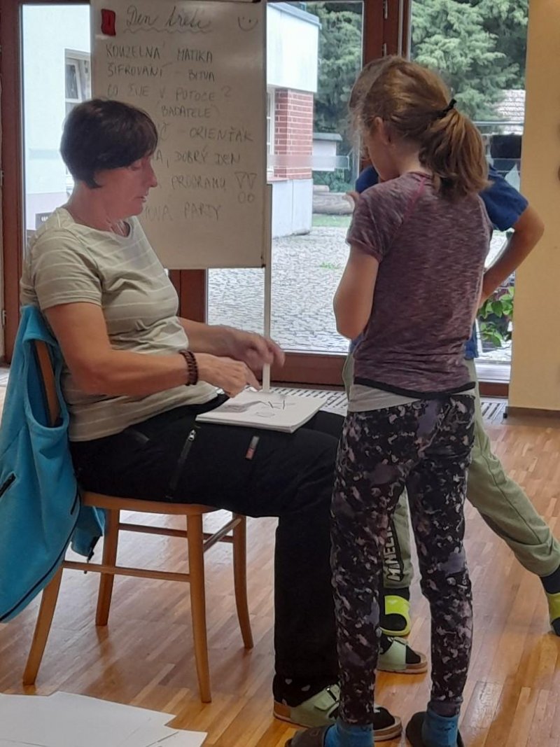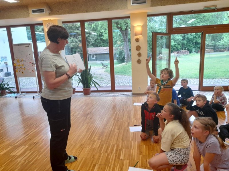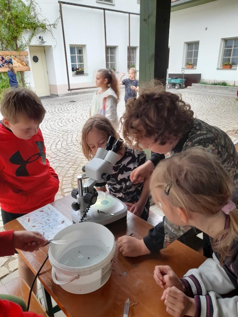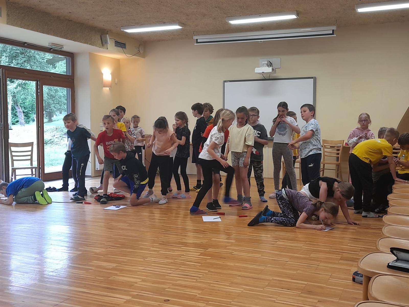 Středa byla ve znamení bádání a zkoumání živočichů, které jsme si sami vylovili v nedalekém potoce. Vylovili jsme chrostíky, blešivce či jepice a pod lupou je pak pozorovali. Po obědě a krátkém odpočinku nás čekal orientační běh podle fáborků s 15 otázkami učiva třetího ročníku. Nešlo tedy jen o rychlost, ale i o vědomosti. Odpoledne nás počasí zahnalo na sál, kde jsme hráli různé hry a večer jsme si užili pyžamovou party.