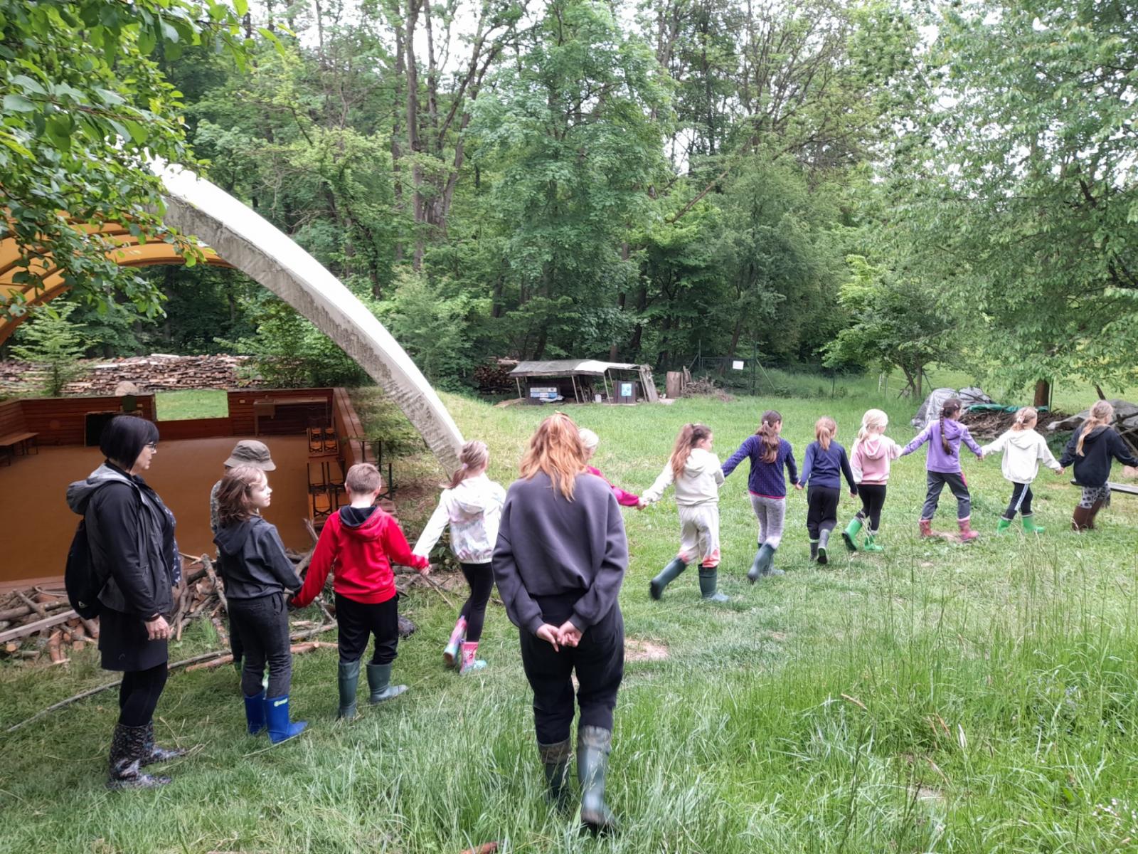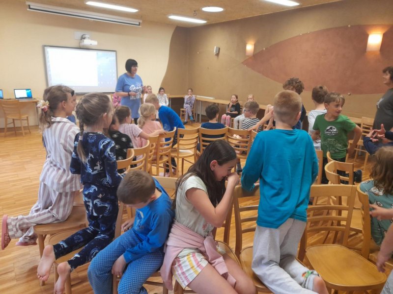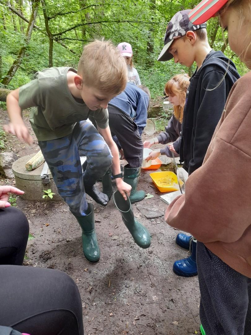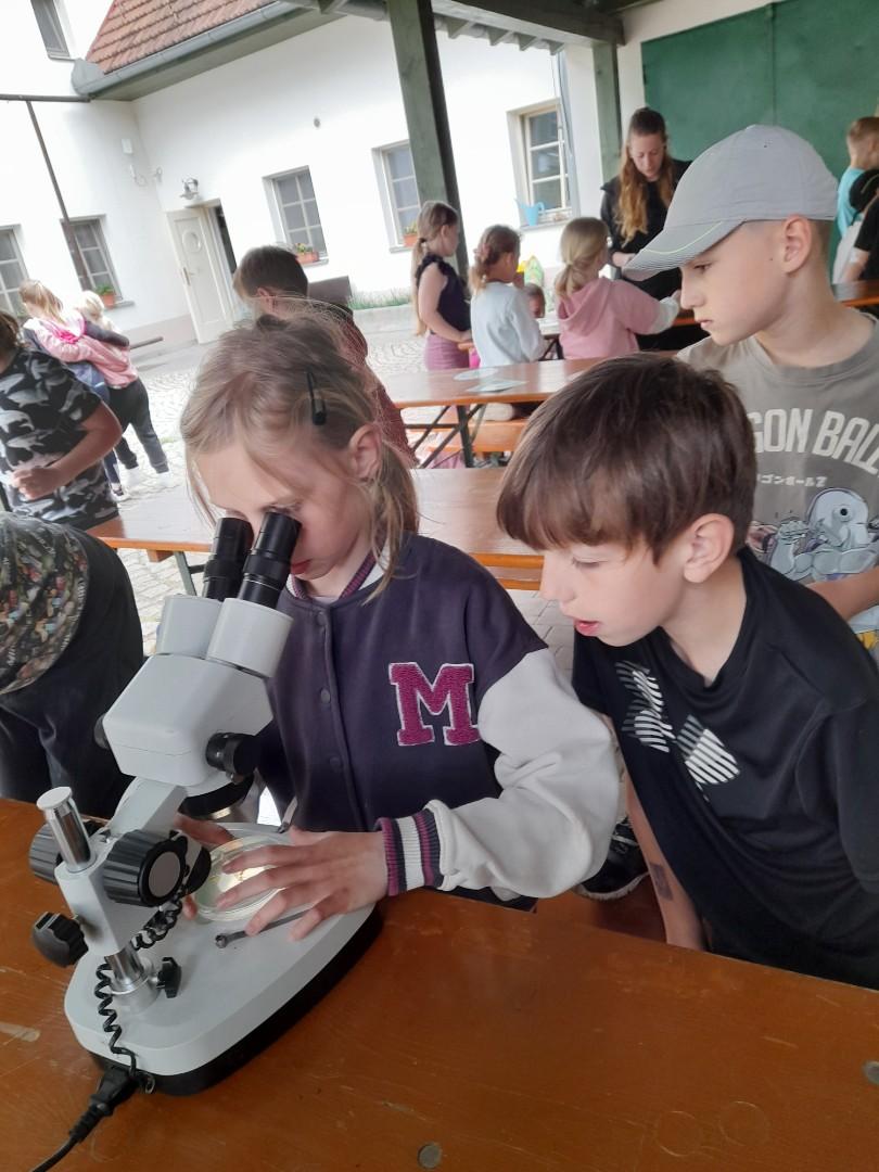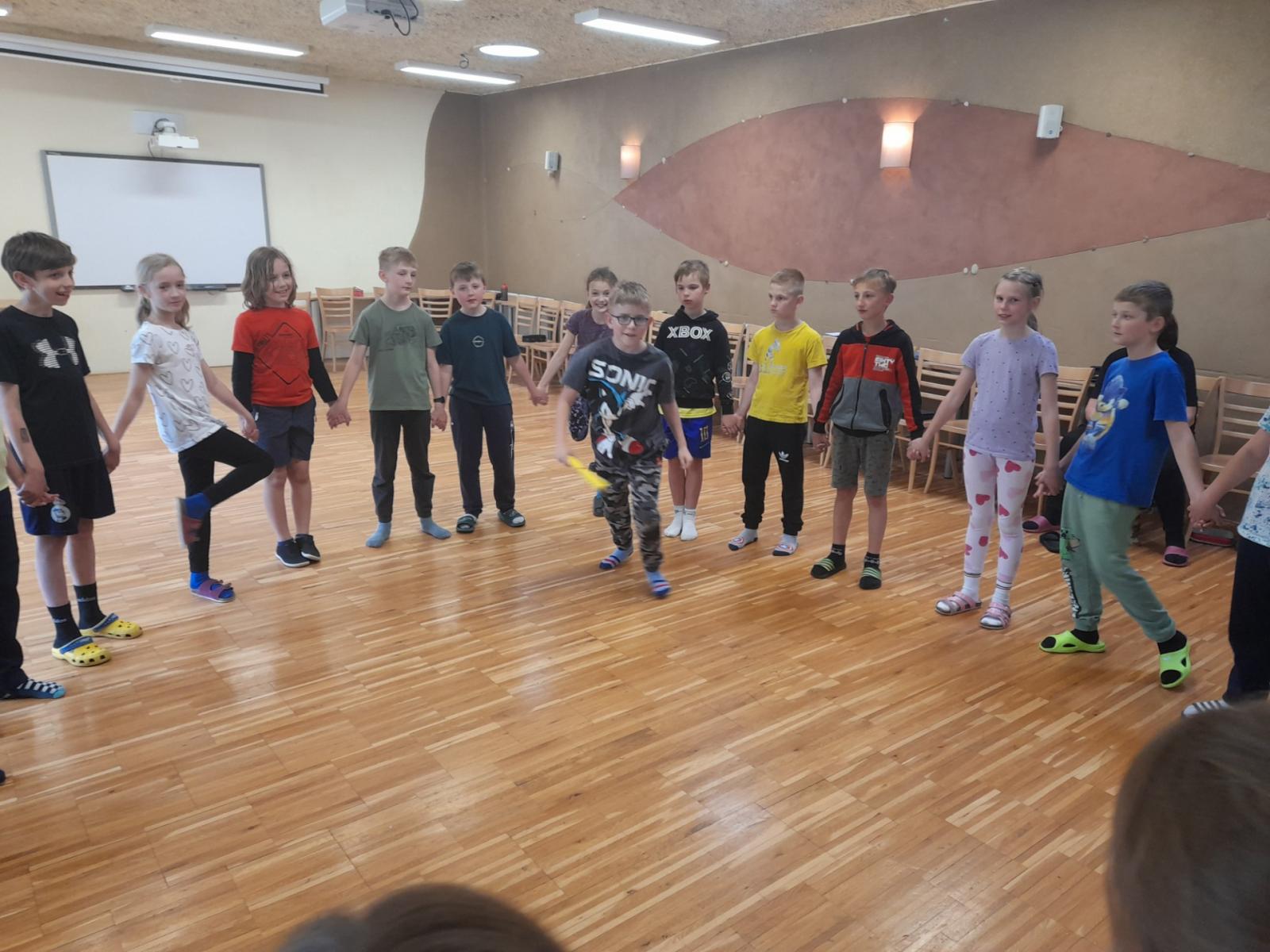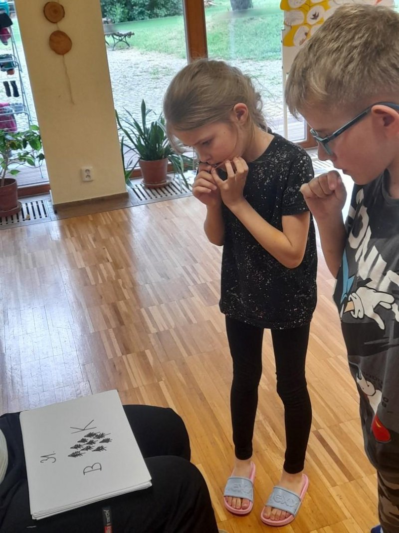 Středa byla ve znamení bádání a zkoumání živočichů, které jsme si sami vylovili v nedalekém potoce. Vylovili jsme chrostíky, blešivce či jepice a pod lupou je pak pozorovali. Po obědě a krátkém odpočinku nás čekal orientační běh podle fáborků s 15 otázkami učiva třetího ročníku. Nešlo tedy jen o rychlost, ale i o vědomosti. Odpoledne nás počasí zahnalo na sál, kde jsme hráli různé hry a večer jsme si užili pyžamovou party.