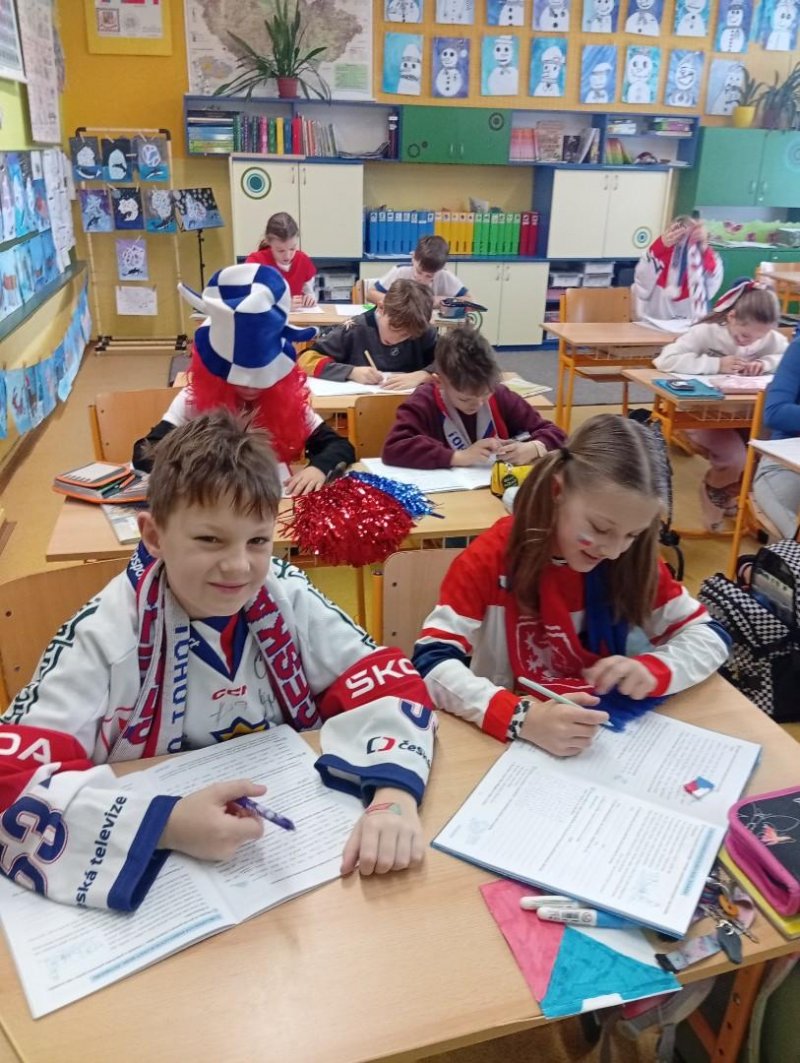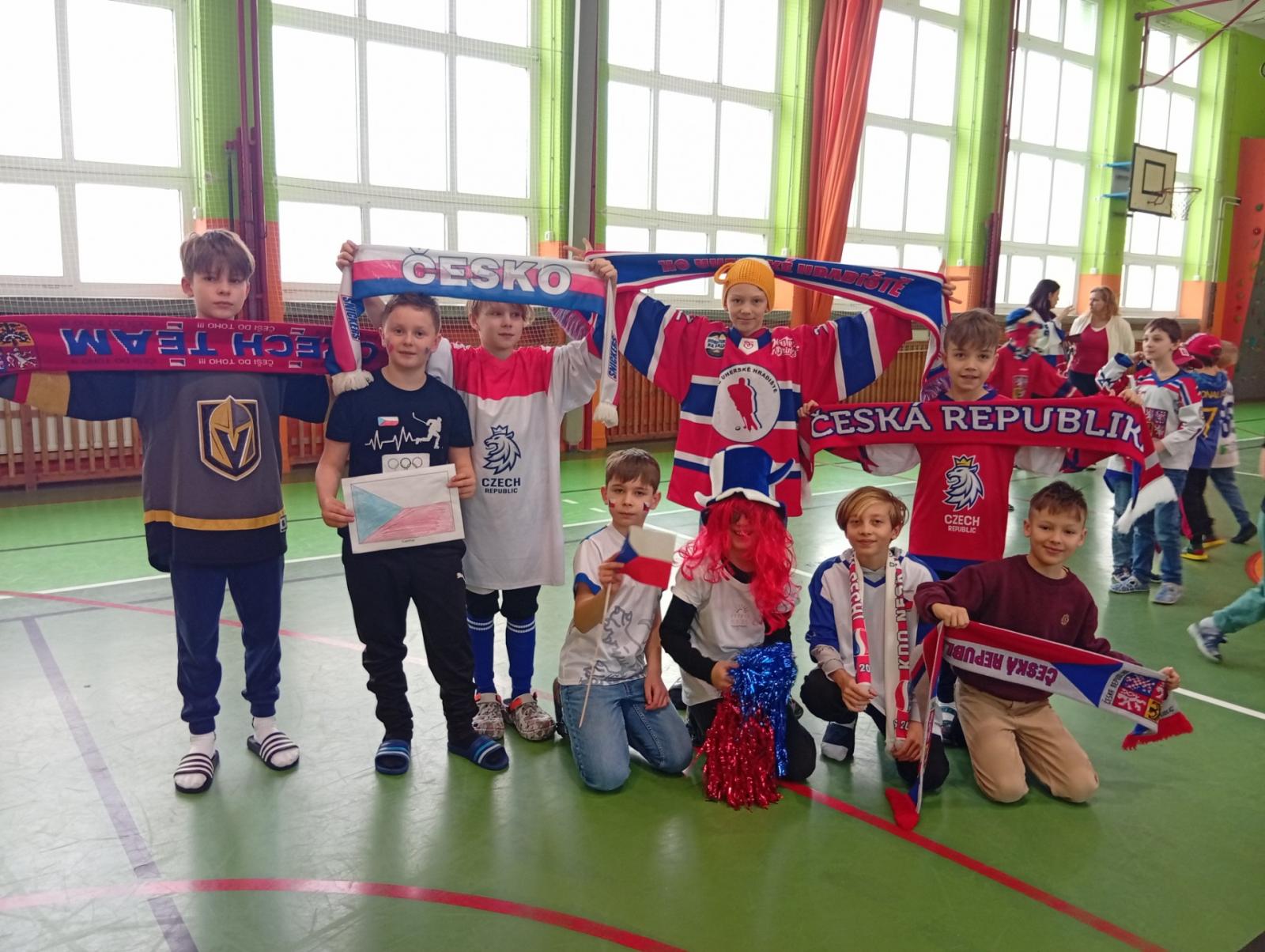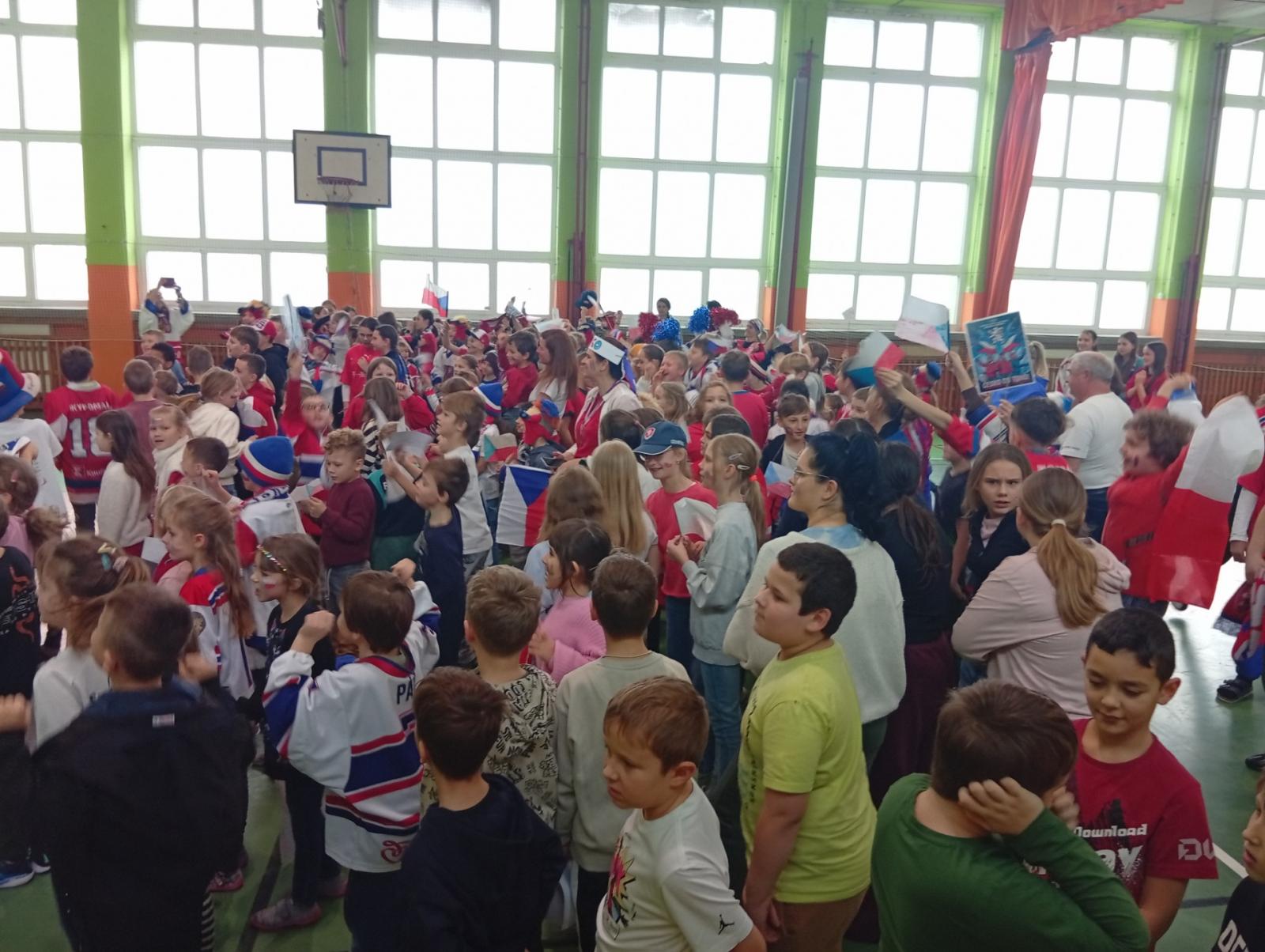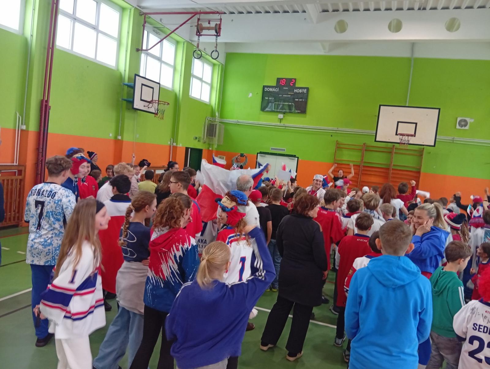 Soutěže školního parlamentu o nejlepší fanoušky a fanynky jsem se ujali velmi zodpovědně:) Po jednotlivém bodování ve třídě jsme se všichni sešli v tělocvičně školy. A to byla teda velká olympiáda!!!:))) Tak hlavně, ať to fandění pomůže i našim hokejistům:)