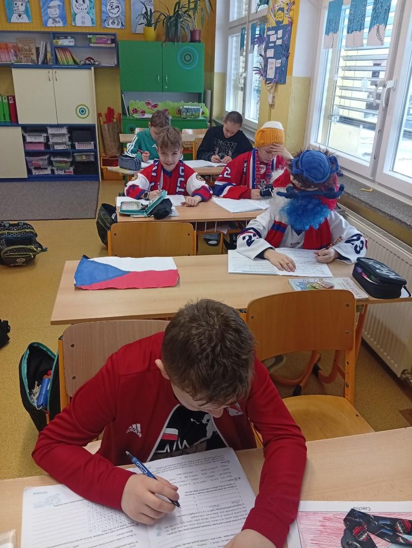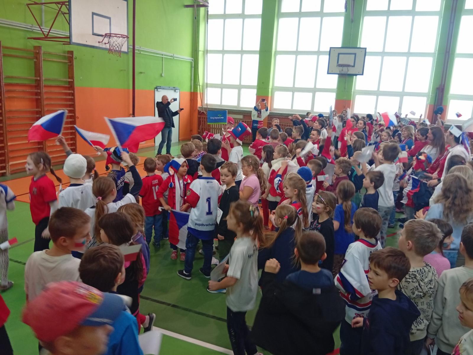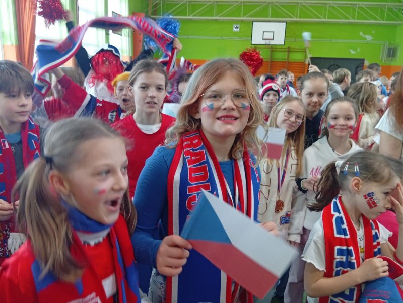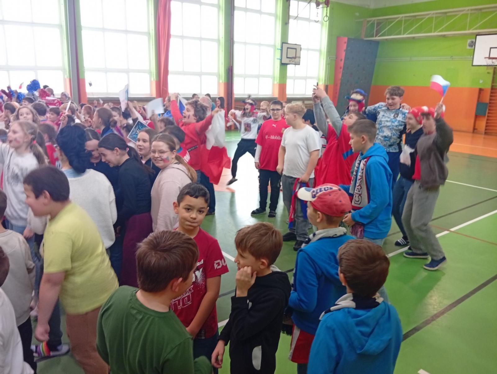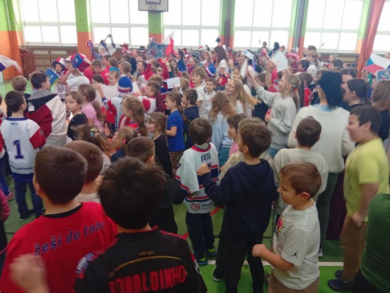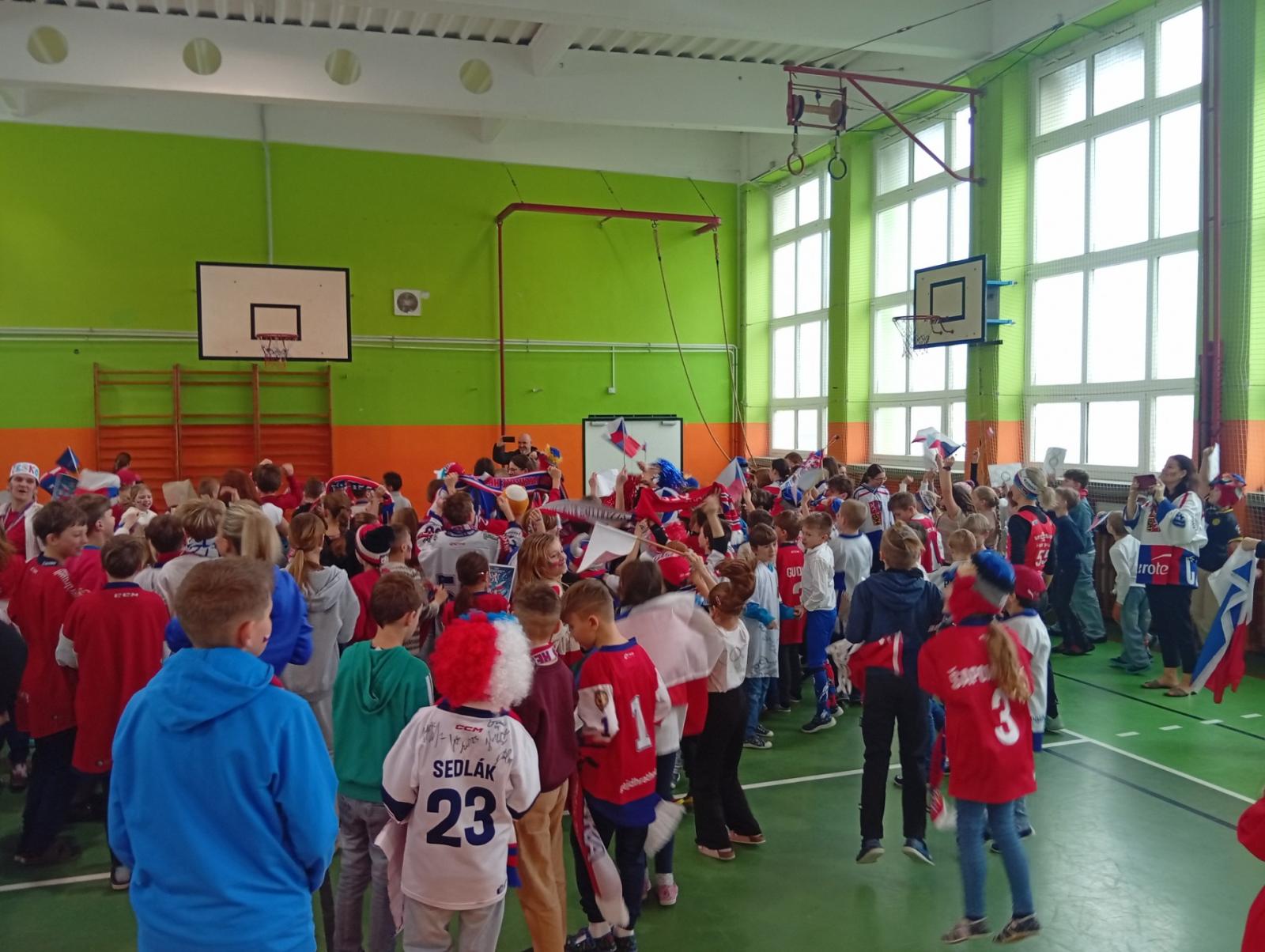 Soutěže školního parlamentu o nejlepší fanoušky a fanynky jsem se ujali velmi zodpovědně:) Po jednotlivém bodování ve třídě jsme se všichni sešli v tělocvičně školy. A to byla teda velká olympiáda!!!:))) Tak hlavně, ať to fandění pomůže i našim hokejistům:)
