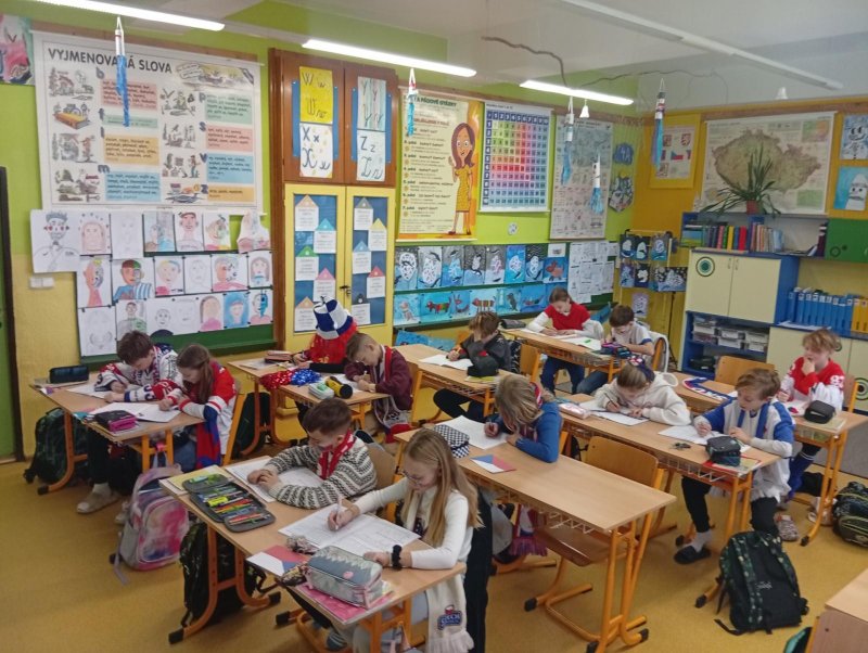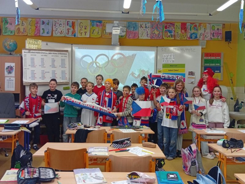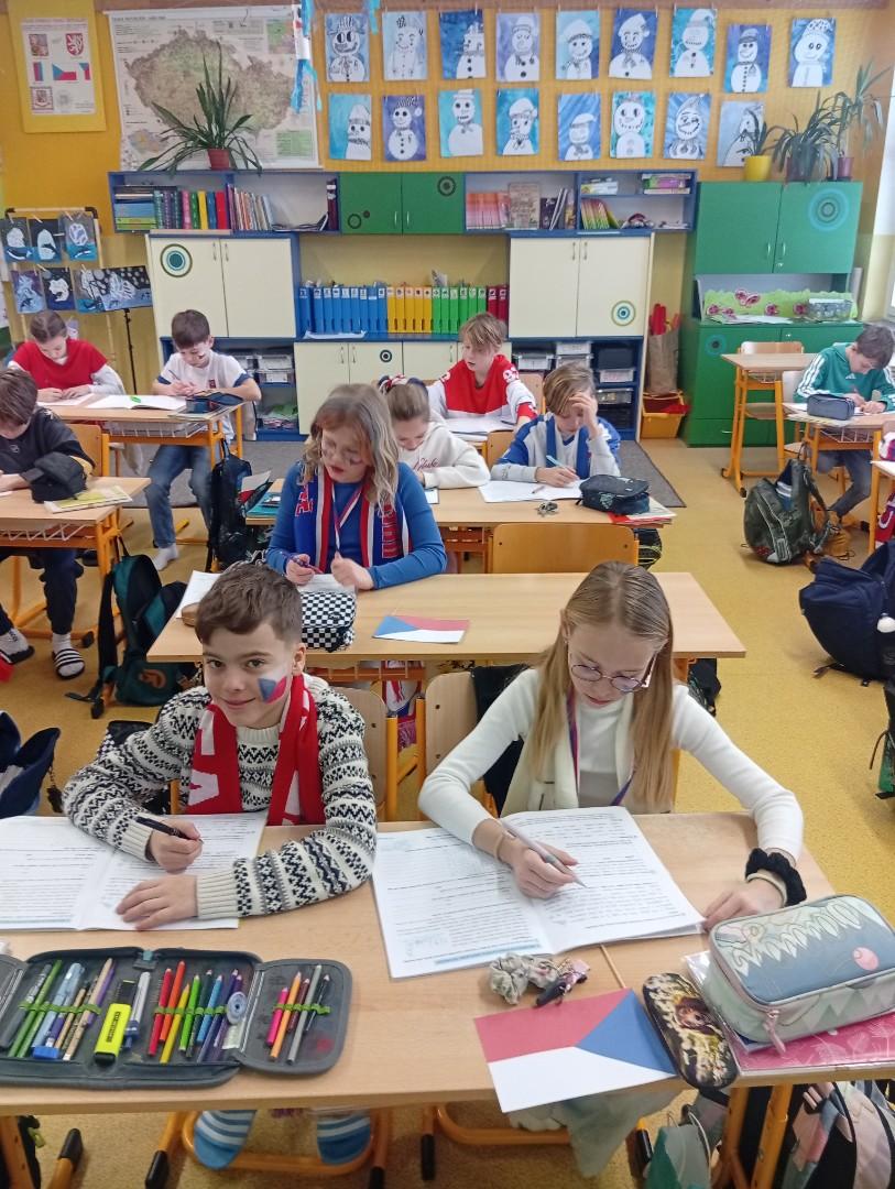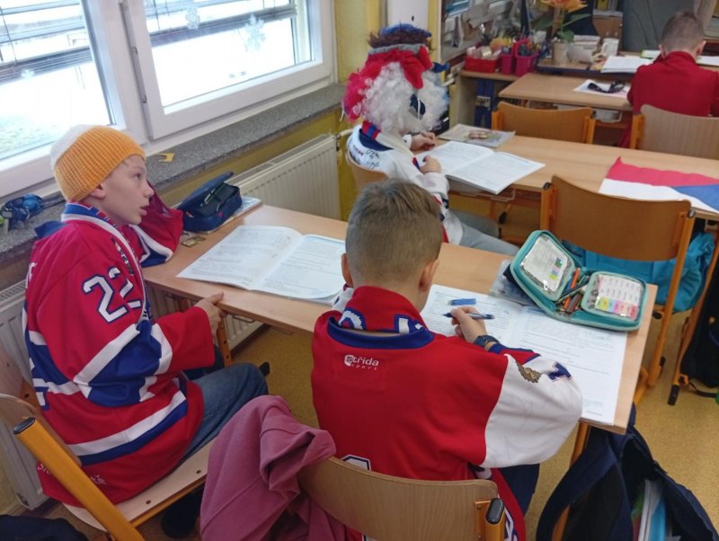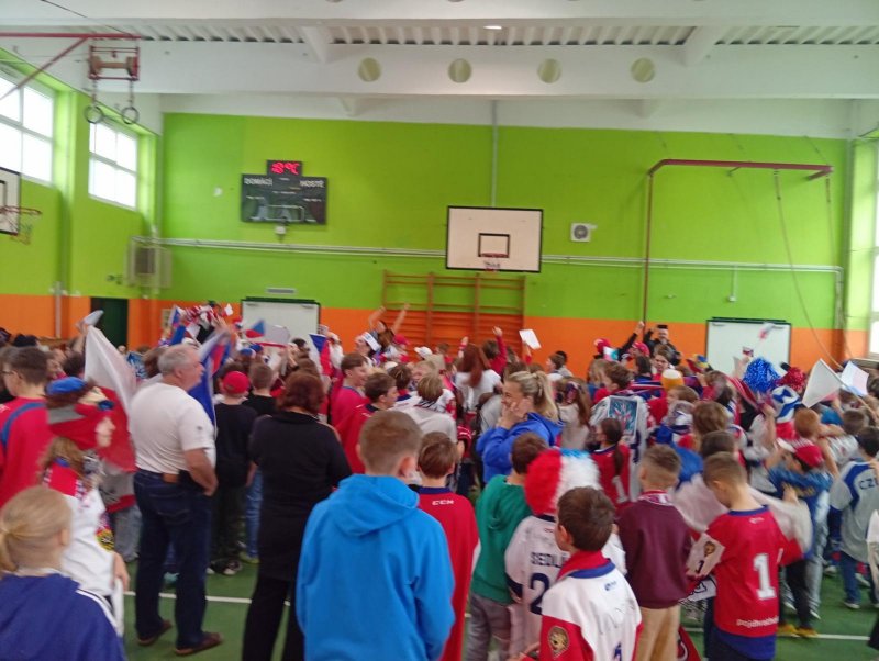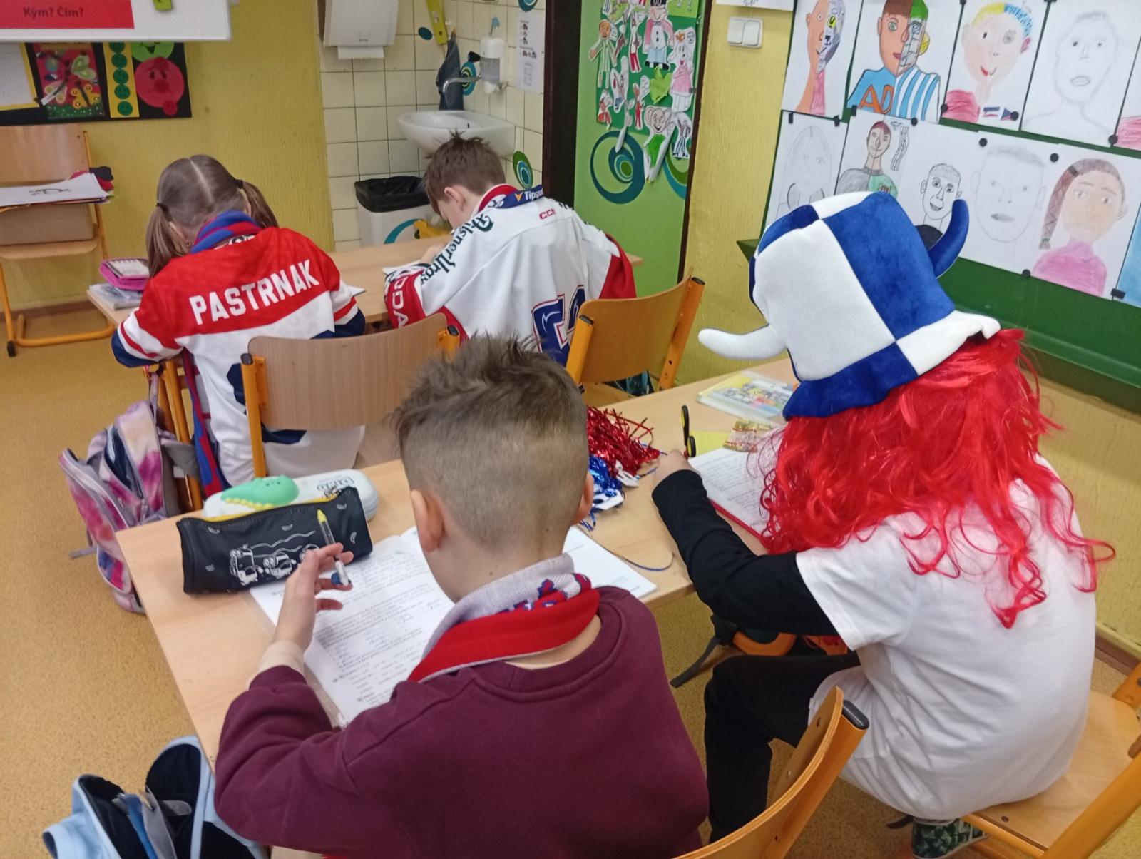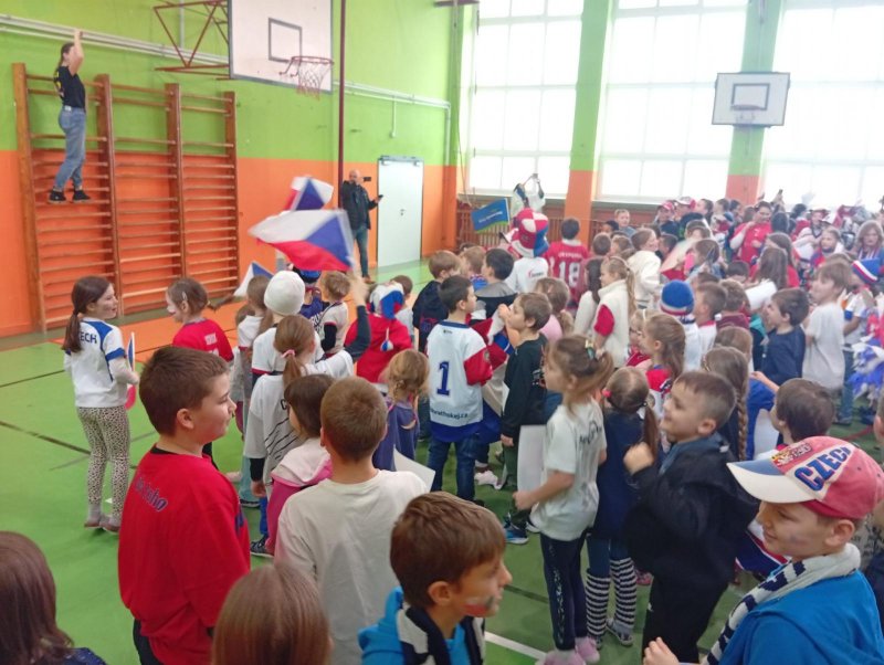 Soutěže školního parlamentu o nejlepší fanoušky a fanynky jsem se ujali velmi zodpovědně:) Po jednotlivém bodování ve třídě jsme se všichni sešli v tělocvičně školy. A to byla teda velká olympiáda!!!:))) Tak hlavně, ať to fandění pomůže i našim hokejistům:)