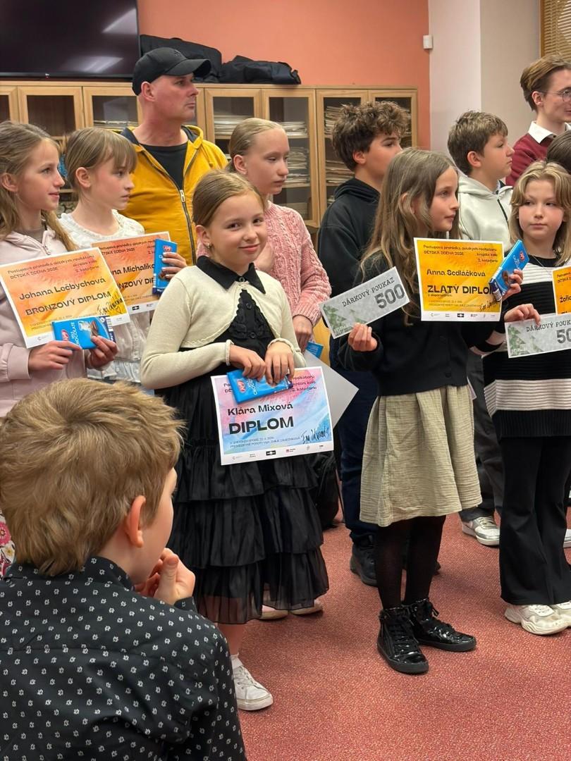 Klárka bojovala jako česká lvice, ale na umístění mezi prvními třemi to nestačilo. Přesto děkujeme Klárce za vzornou reprezentaci naší školy a přejeme další úspěchy v nadcházejícím ročníku soutěže v uměleckém přednesu.