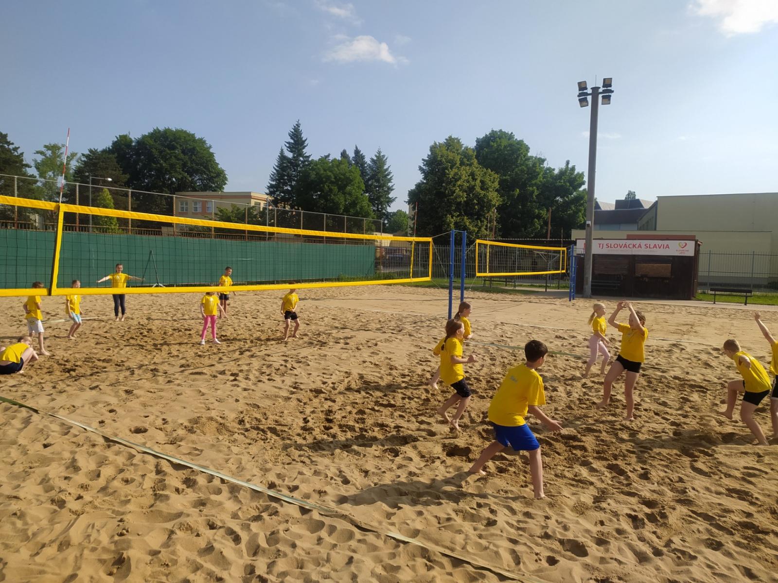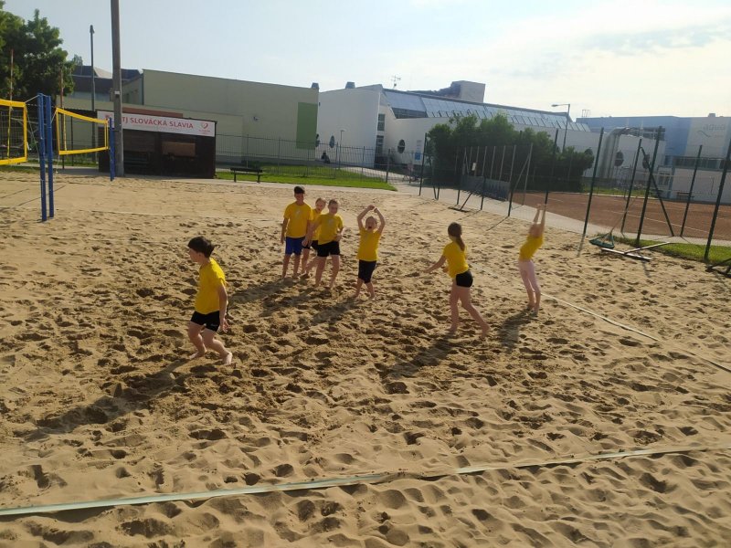 Poslední hodina tělocviku proběhla na beachovém hřišti. Zahráli jsme dva úžasné sety přehazované, která skončila nerozhodně. Umíte hrát rychle a s přehledem na hřišti. To je moc důležité. Píští rok můžeme dál pilovat.