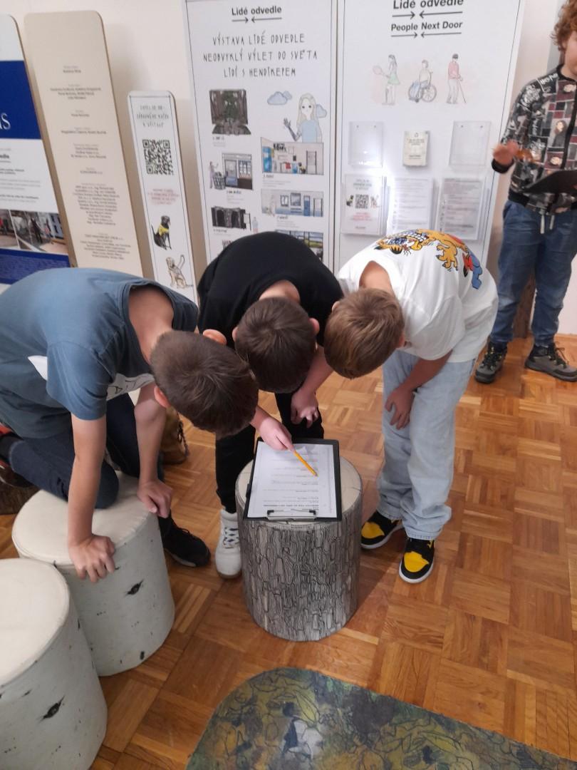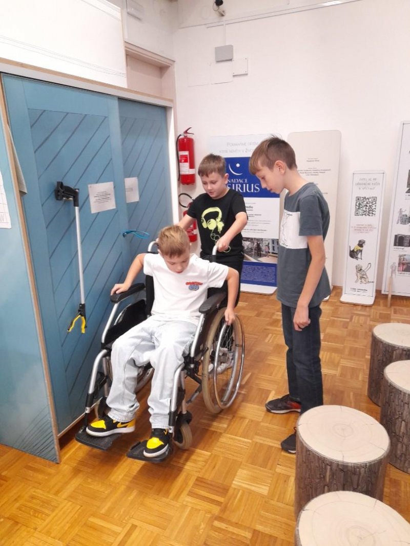 V úterý 21.října jsme navštívili ve Slováckém muzeu interaktivní výstavu s názvem Lidé odvedle, kde jsme se dozvěděli něco více o životě lidí s handicapem. Také jsme si mohli sami vyzkoušet naplánovat a uskutečnit výlet. Jaká úskalí čekají na lidi, kteří jsou nevidomí, upoutaní na vozíčku nebo neslyší?