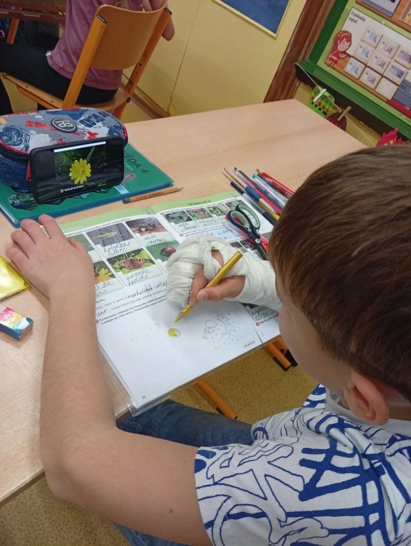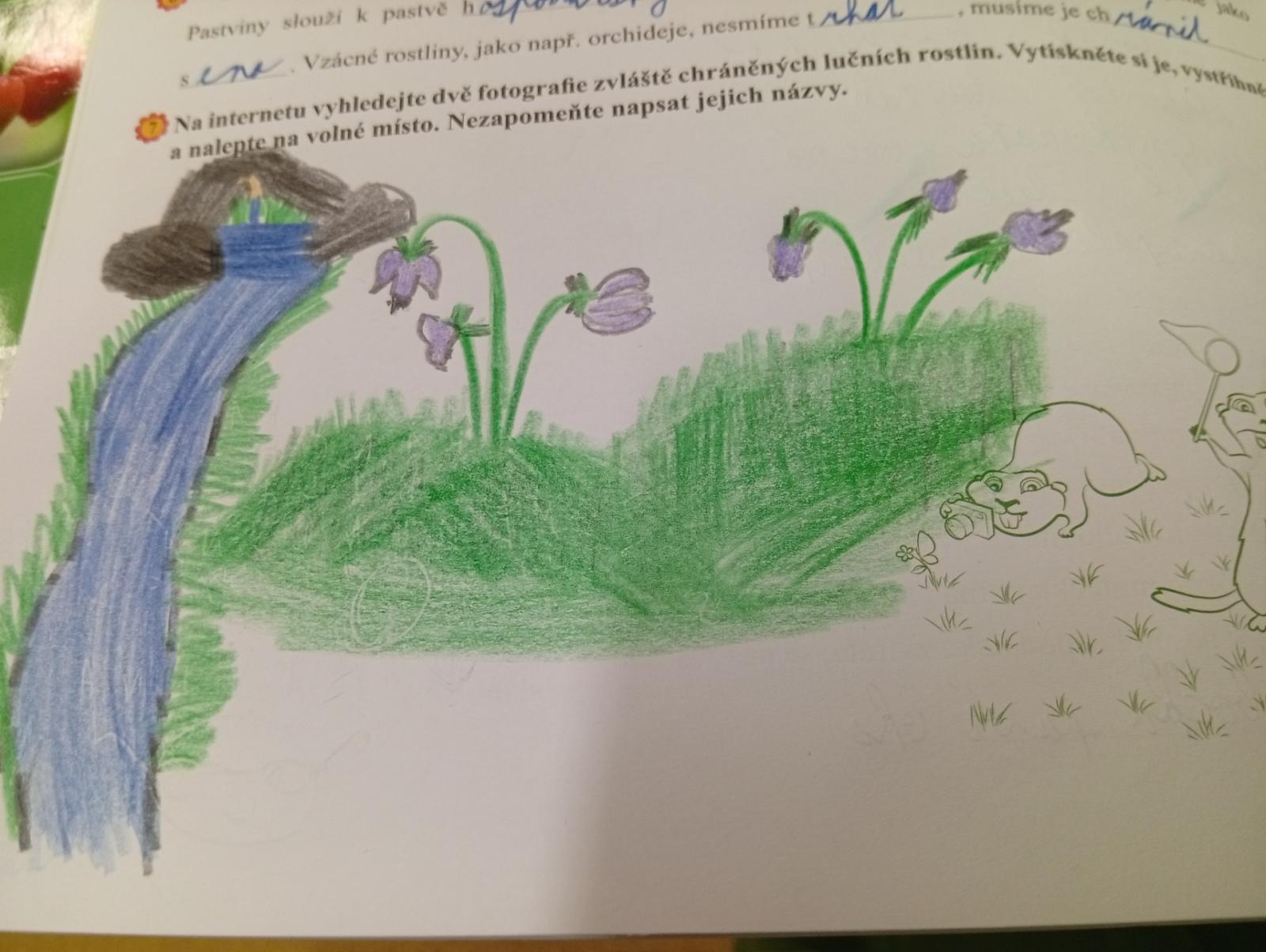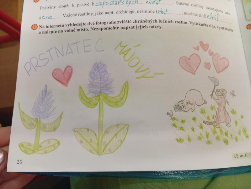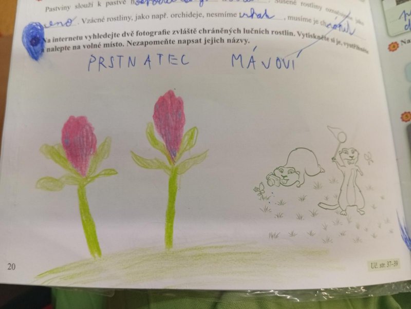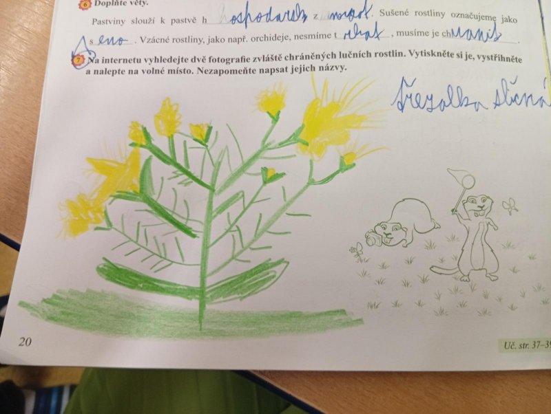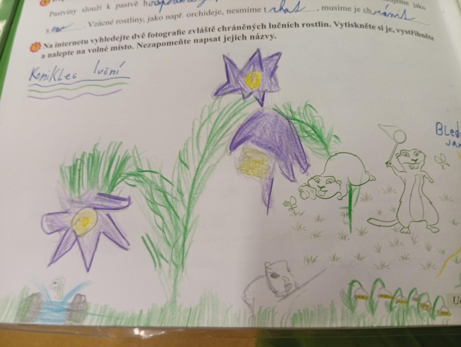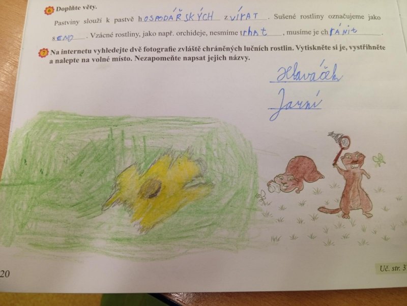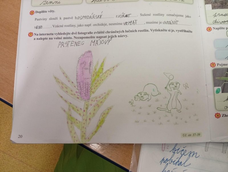 V přírodovědě jsme si povídali o louce a pastvině, co tam roste, kdo tam žije, jak vlastně louky i pastviny vznikly a k čemu nám slouží. Vše jsme si procvičili formou skupinové práce, samostatné práce s možností nahlédnout do učebnice a kresbou zvláště chráněných rostlin s použitím mobilu.