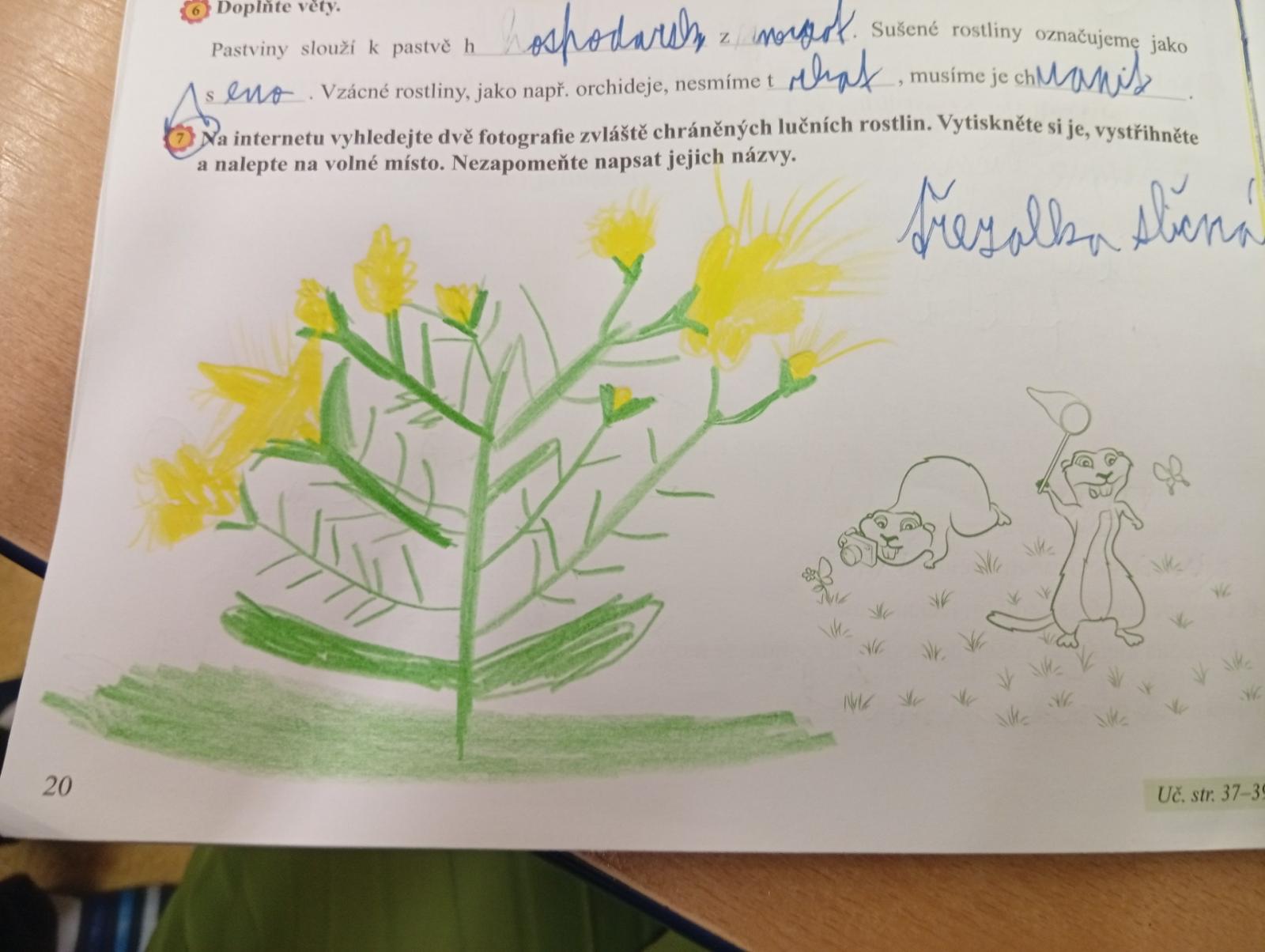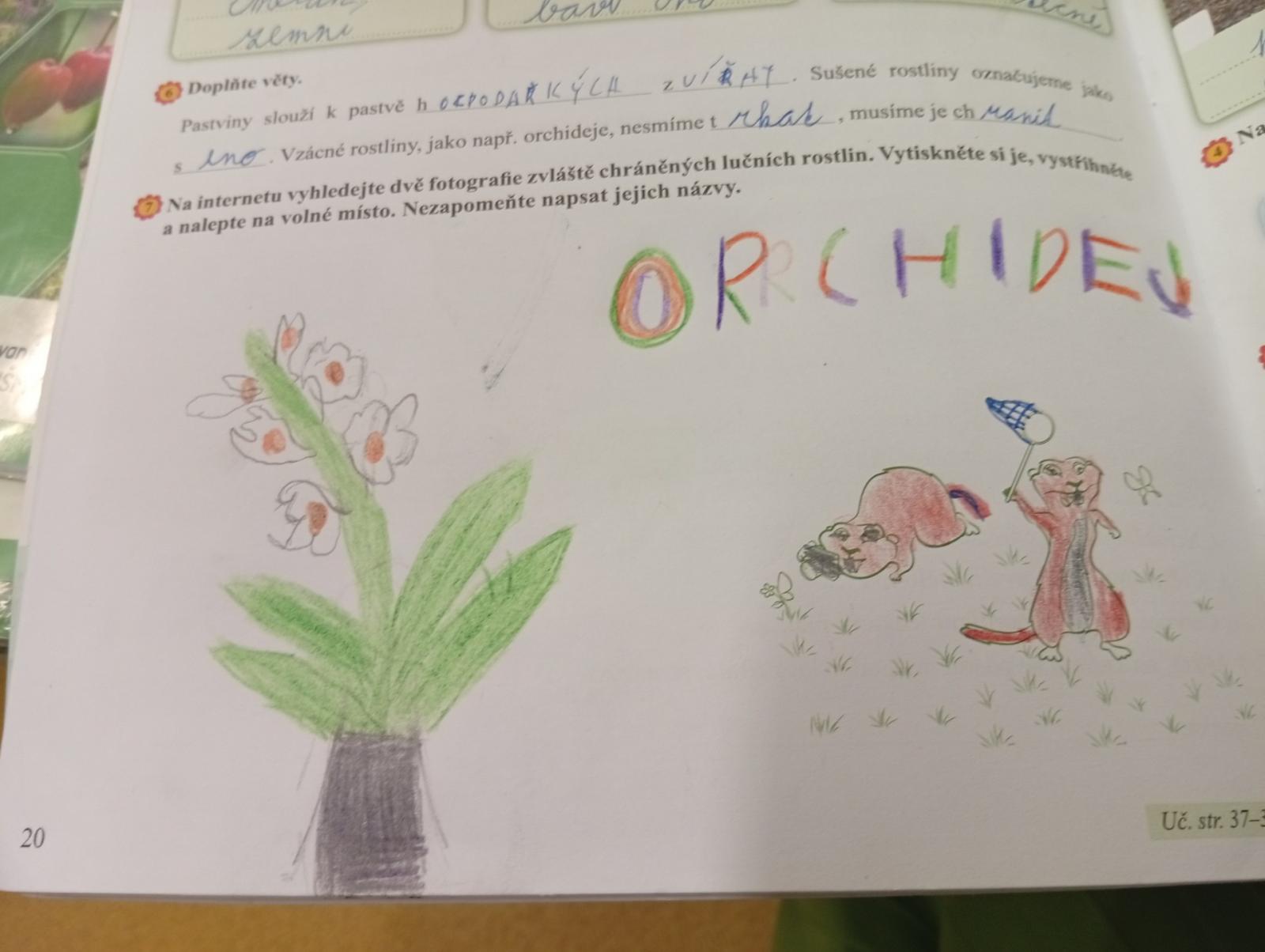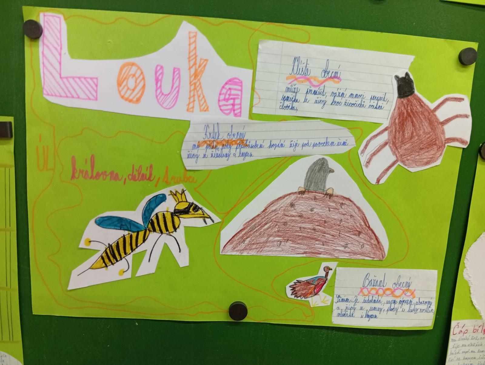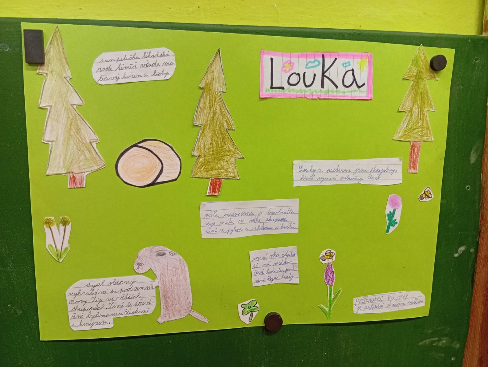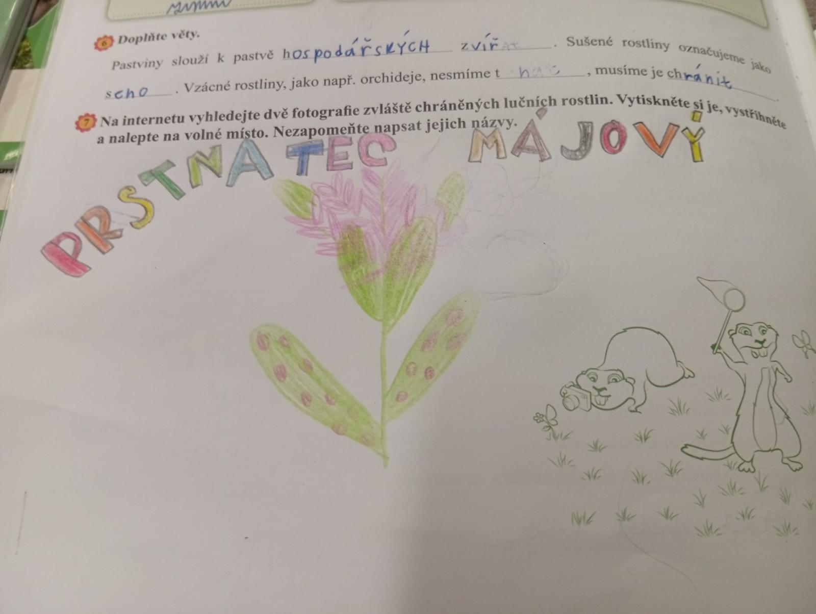 V přírodovědě jsme si povídali o louce a pastvině, co tam roste, kdo tam žije, jak vlastně louky i pastviny vznikly a k čemu nám slouží. Vše jsme si procvičili formou skupinové práce, samostatné práce s možností nahlédnout do učebnice a kresbou zvláště chráněných rostlin s použitím mobilu.