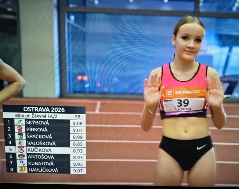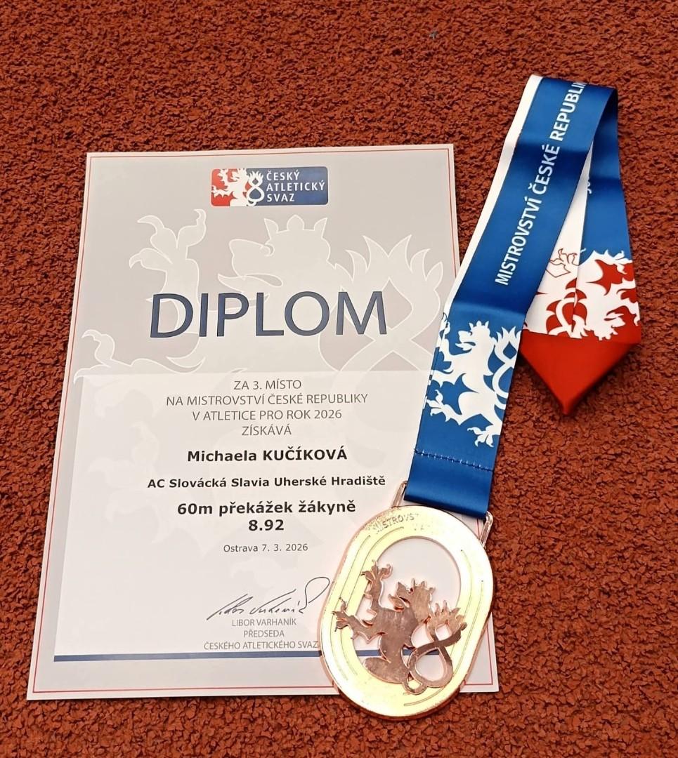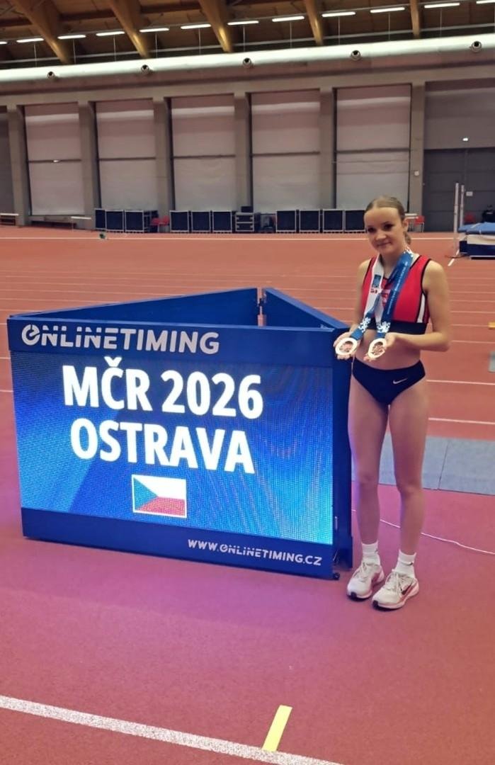 Míša Kučíková z 8. A vybojovala dvě bronzové medaile na halovém Mistrovství České republiky v atletice. Mistrovství se konalo v Ostravě ve dnech 7. a 8. 3. 2026.