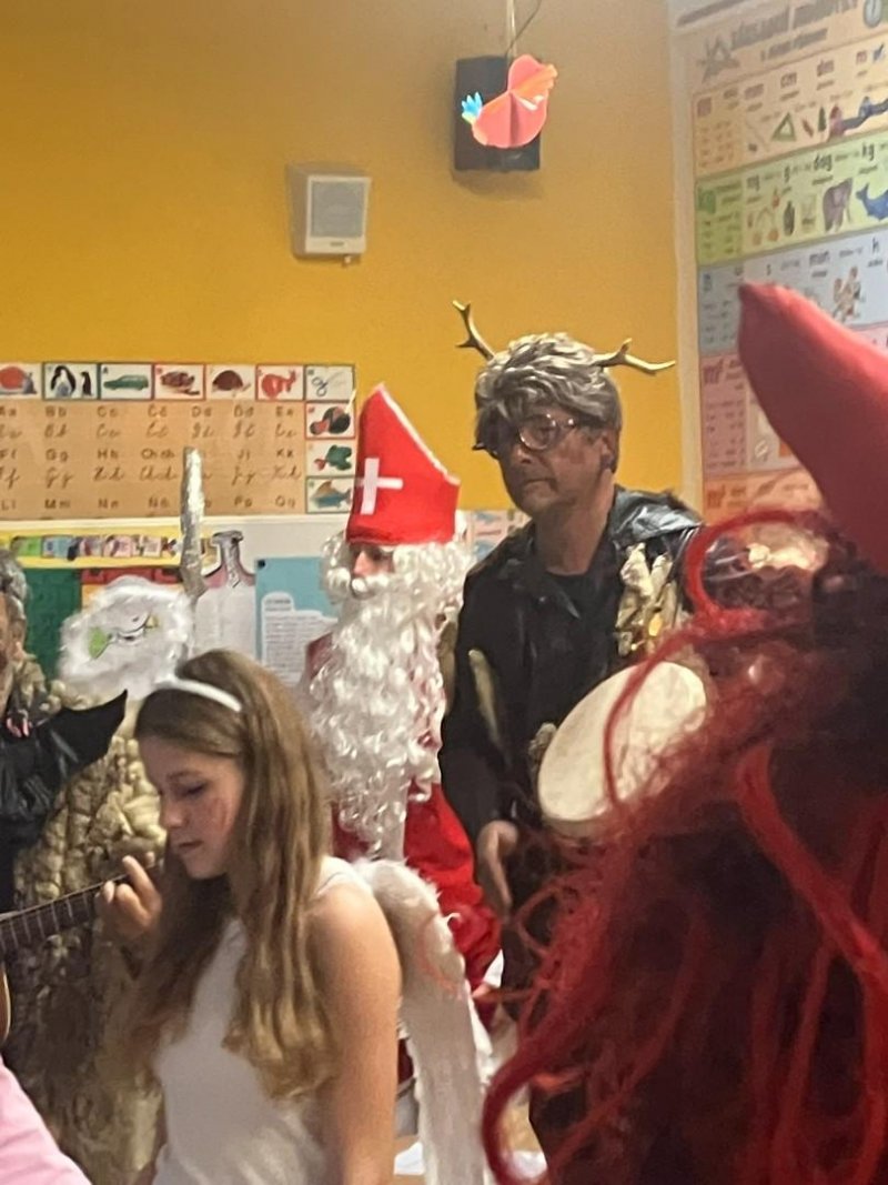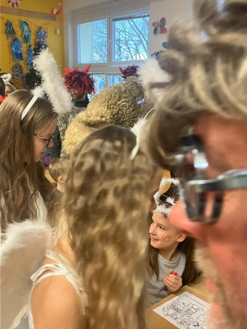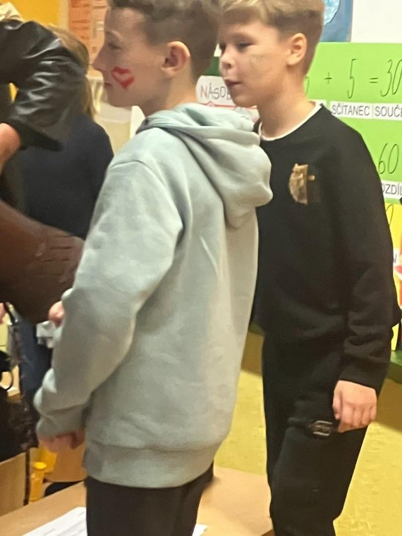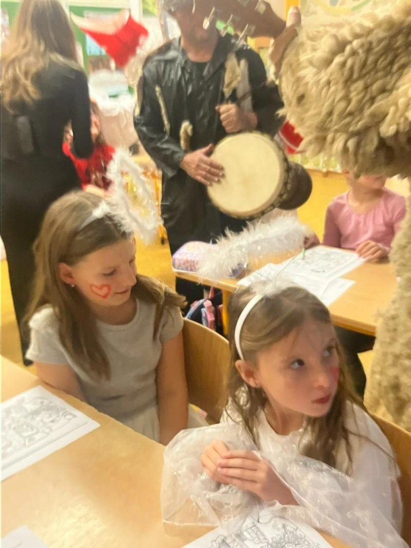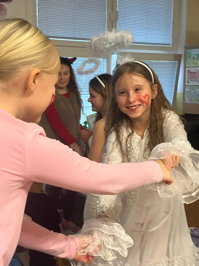 Konečně k nám přišli....Třetí hodinu se rázem třída zaplnila vyslanci nebe i pekla. Andělé rozdávali srdcové podpisy, čerti očichávali hříšníky a Mikuláš spravedlivě obdarovával. Zazpívali jsme a plni emocí jsme se pustili do rozbalování nadílky...