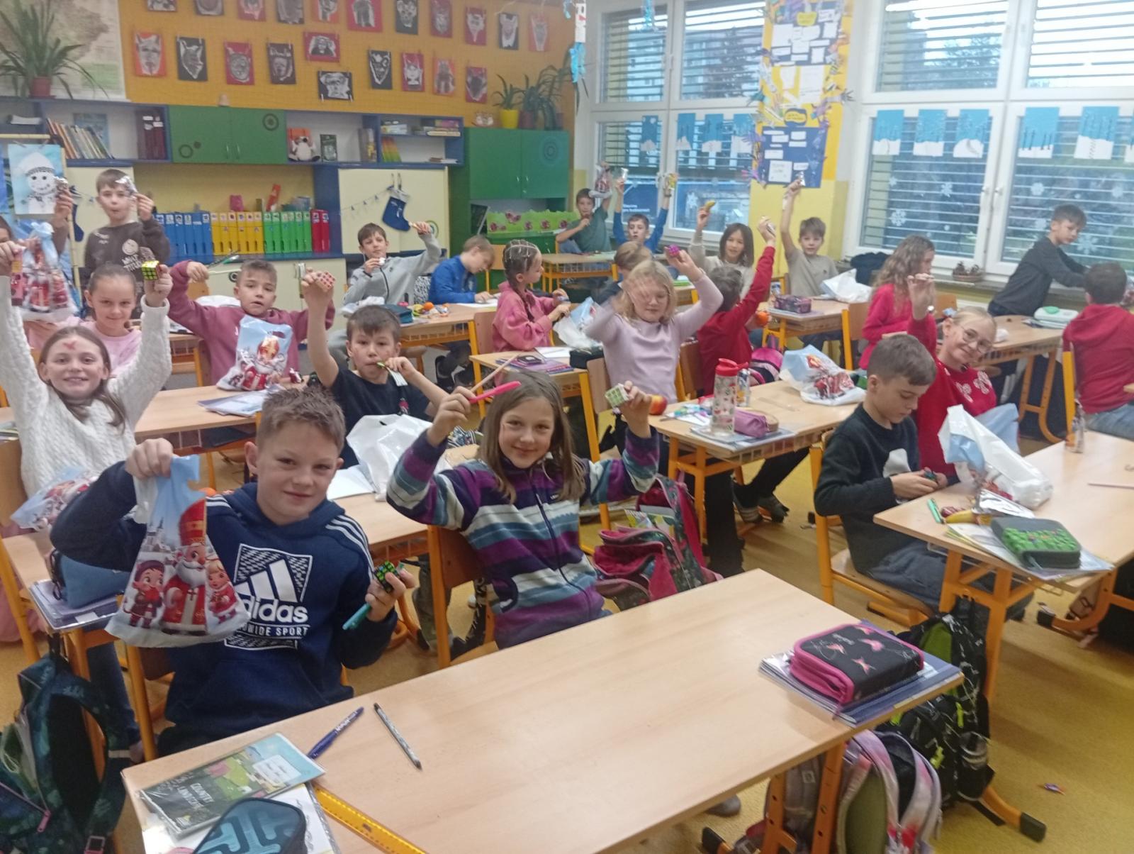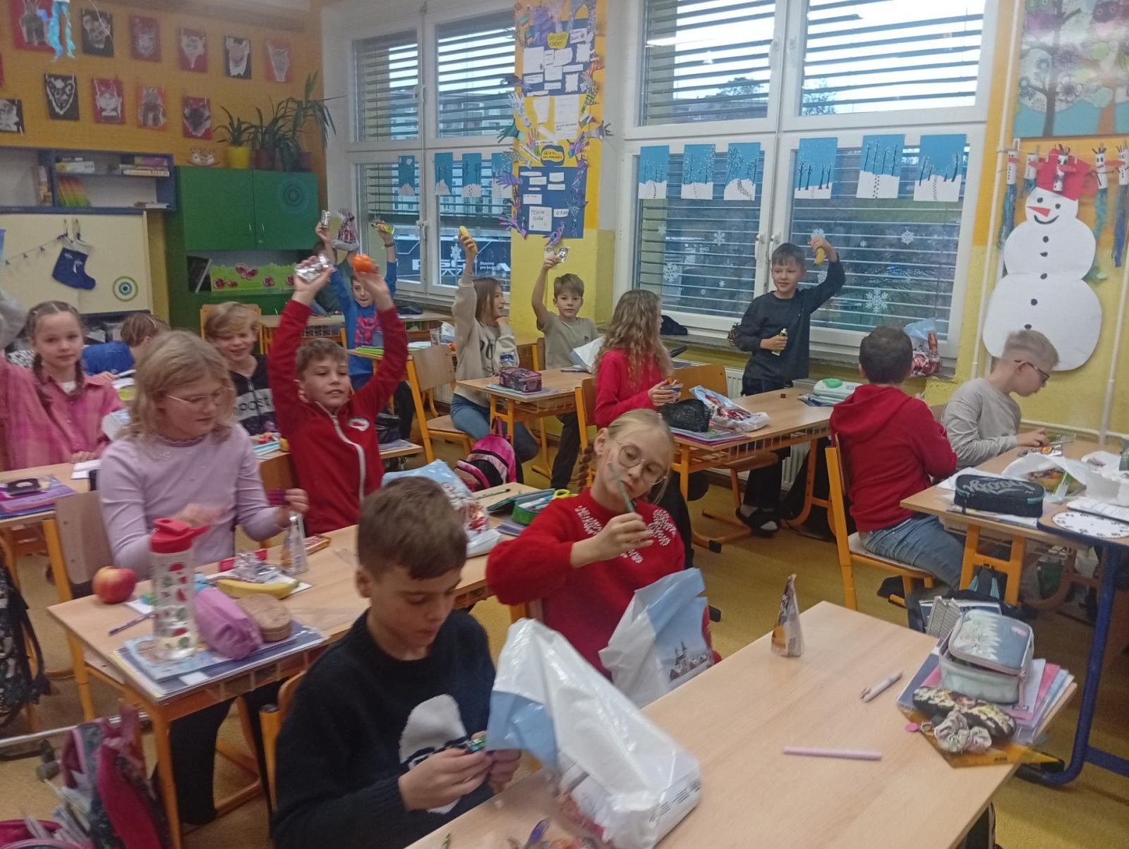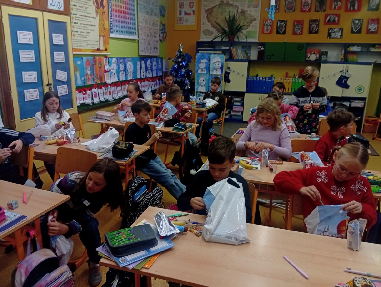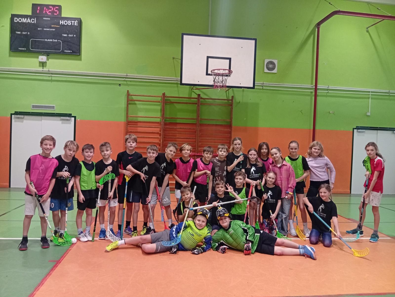 Mikulášský balíček děti dostaly za krásný zpěv naší společné koledy a v tělocviku jsme celý školní týden uzavřeli florbalem.