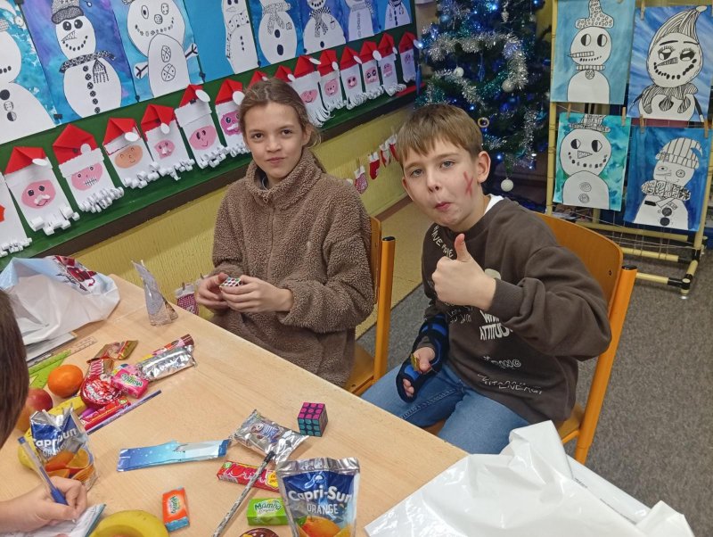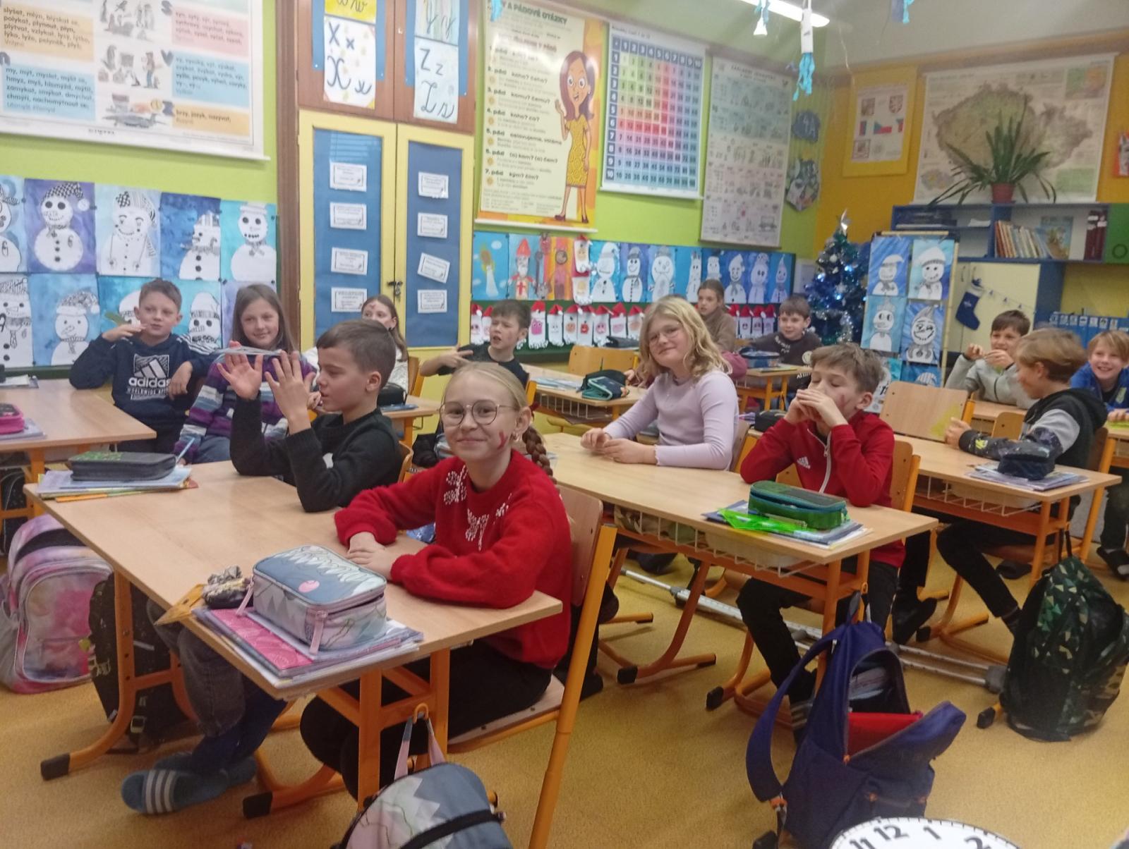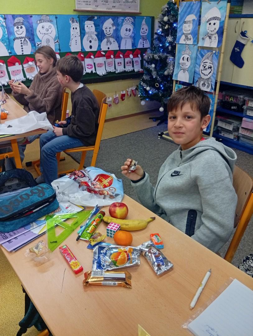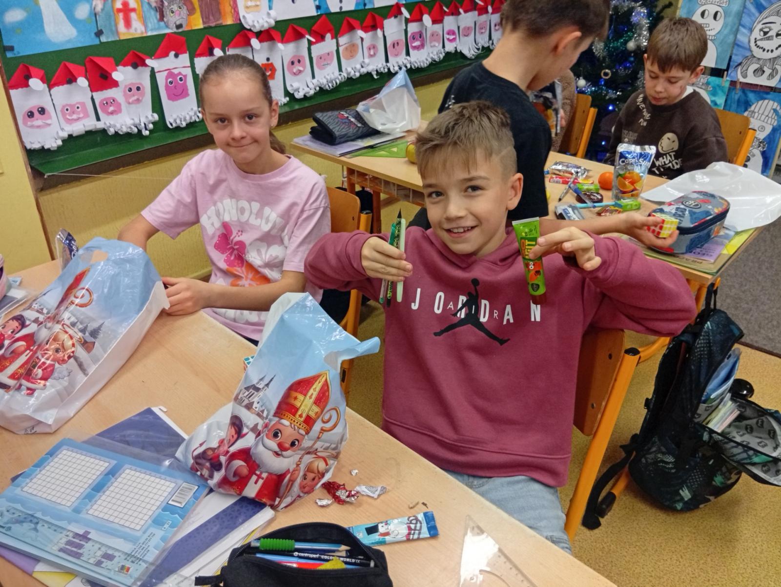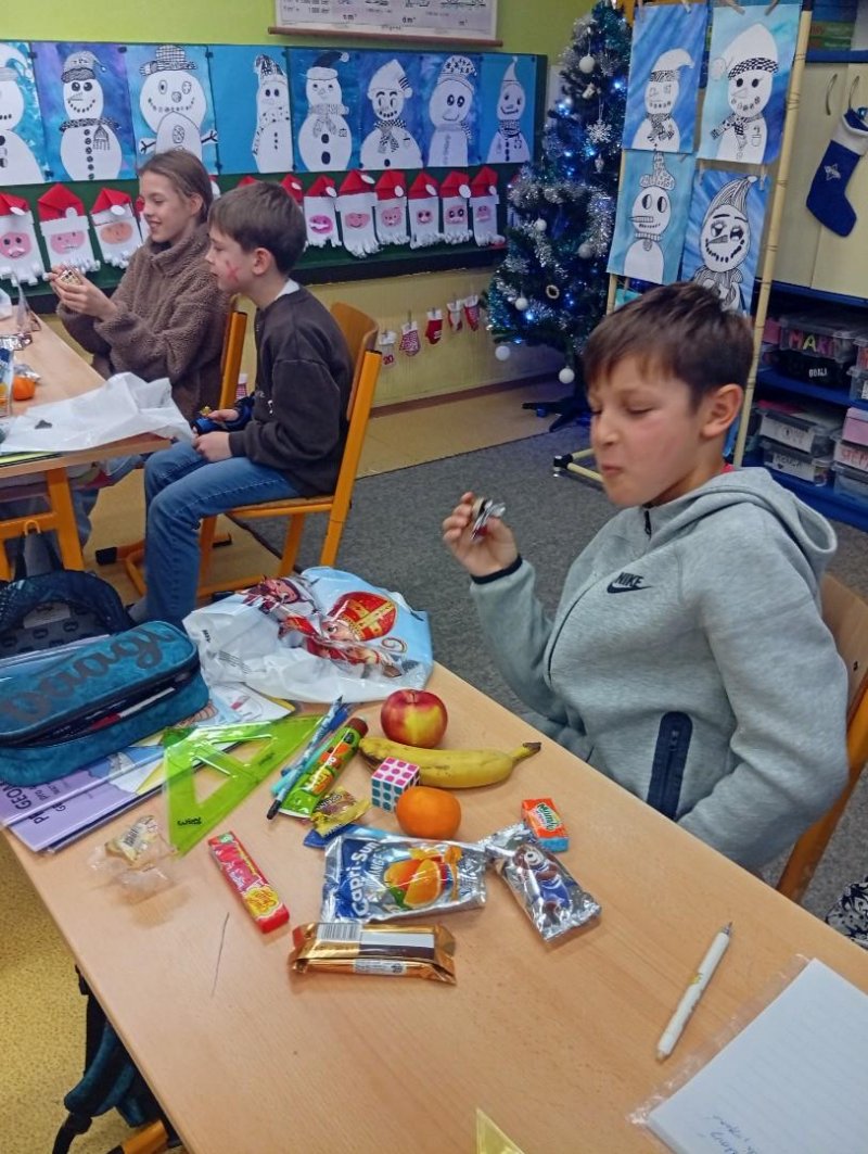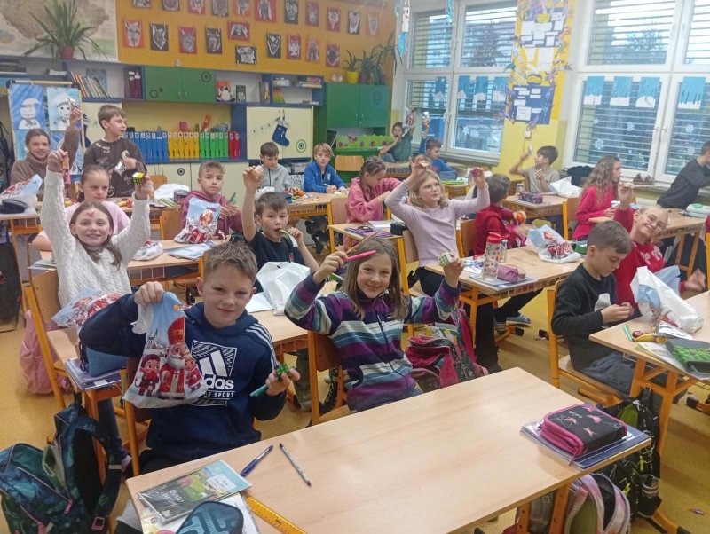 Mikulášský balíček děti dostaly za krásný zpěv naší společné koledy a v tělocviku jsme celý školní týden uzavřeli florbalem.