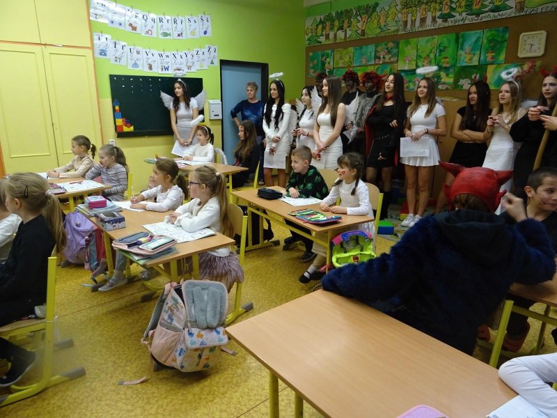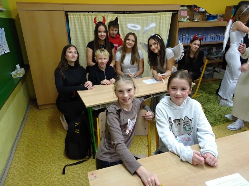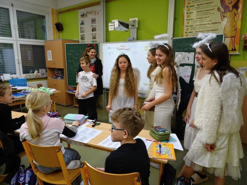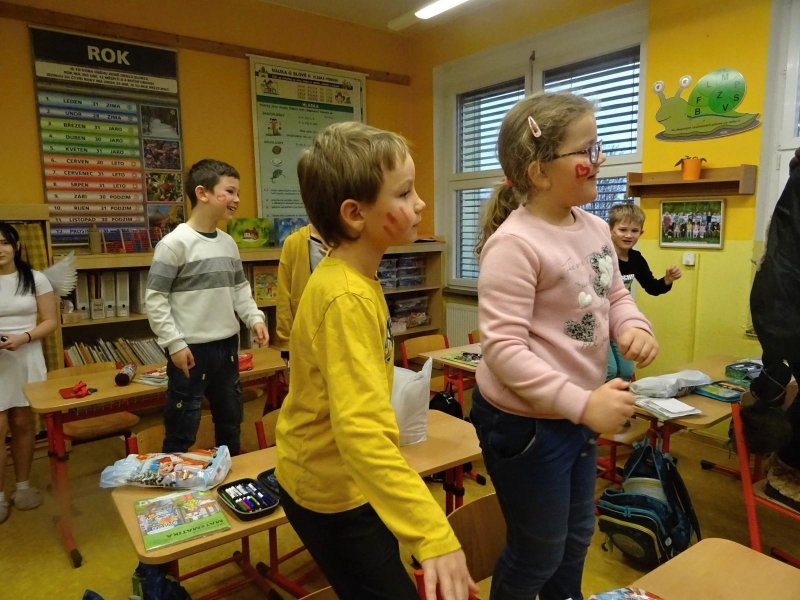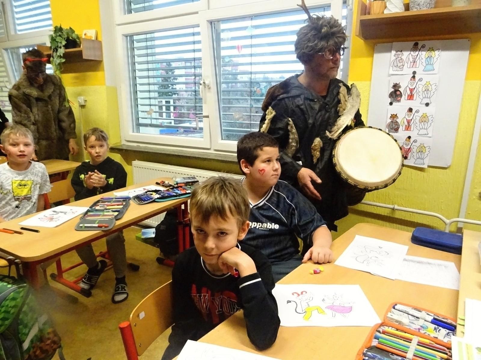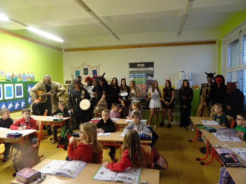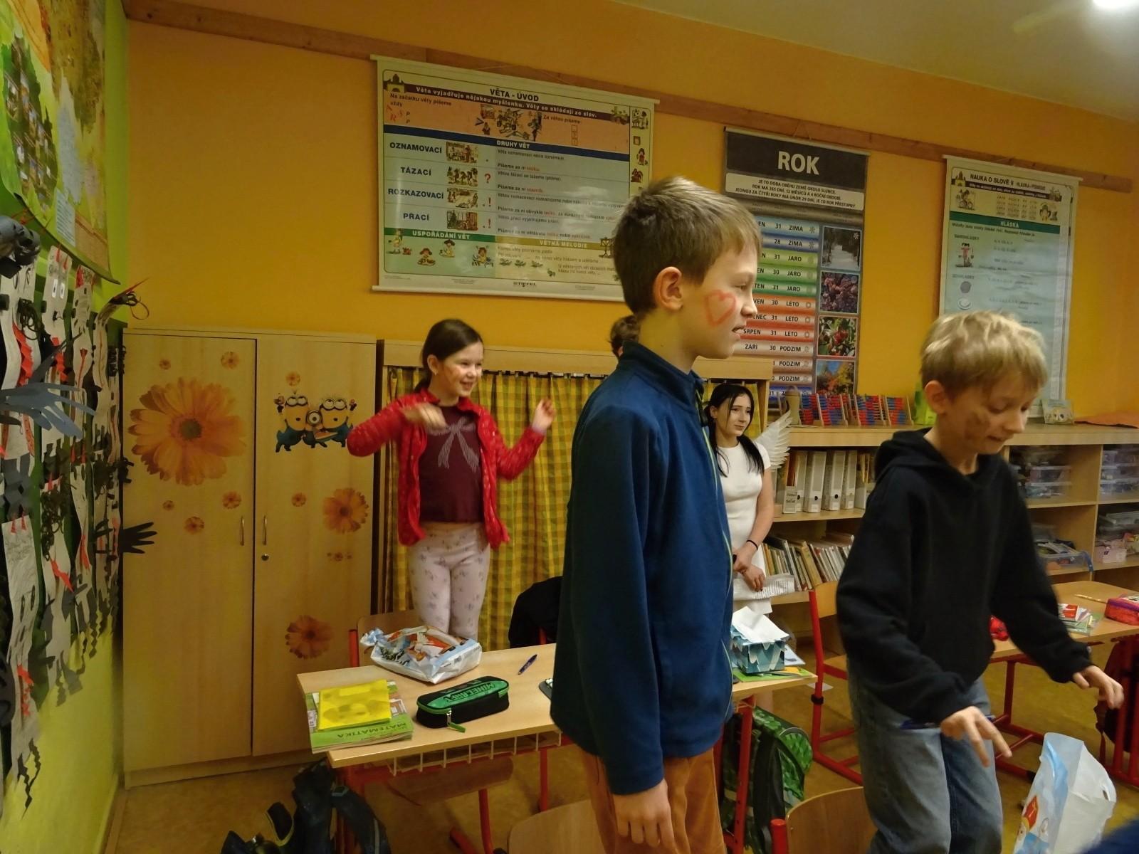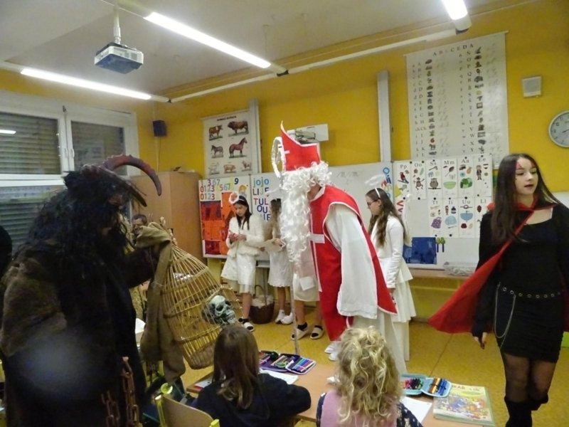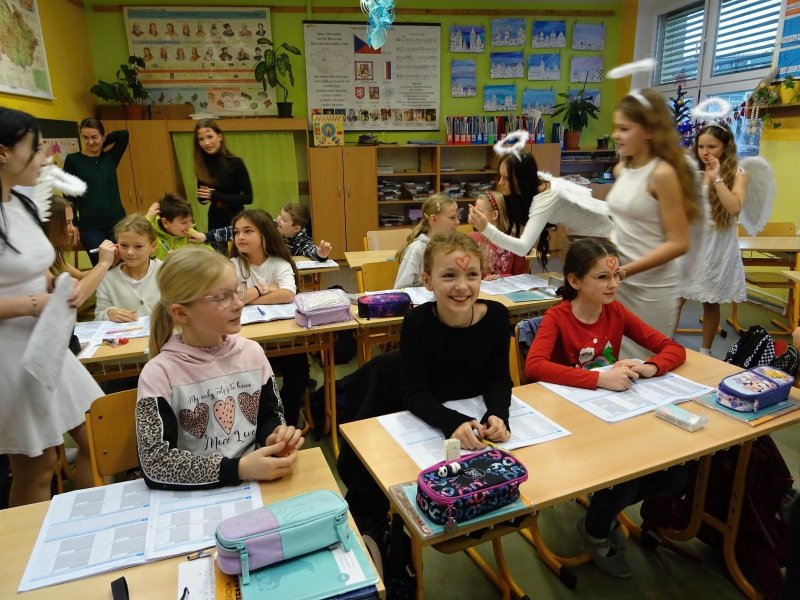 V pátek 5. prosince zavítal do naší školy Mikuláš se svou andělskou i čertovskou družinou, aby potěšil žáky a zpříjemnil jim dopoledne. Navštívil 1., 2. a 3. třídu a neplánovaně se zastavil také u čtvrťáků, kteří jeho příchod nadšeně uvítali. V každé třídě otevřel svou „Knihu hříchů“ a vyhledal několik největších hříšníků, kteří se museli vykoupit písničkou. Děti se úkolu ujaly s úsměvem a statečně zazpívaly před svými spolužáky. Atmosféra byla veselá, přátelská a naplněná očekáváním. Na závěr návštěvy předal Mikuláš každému žákovi malý dáreček.