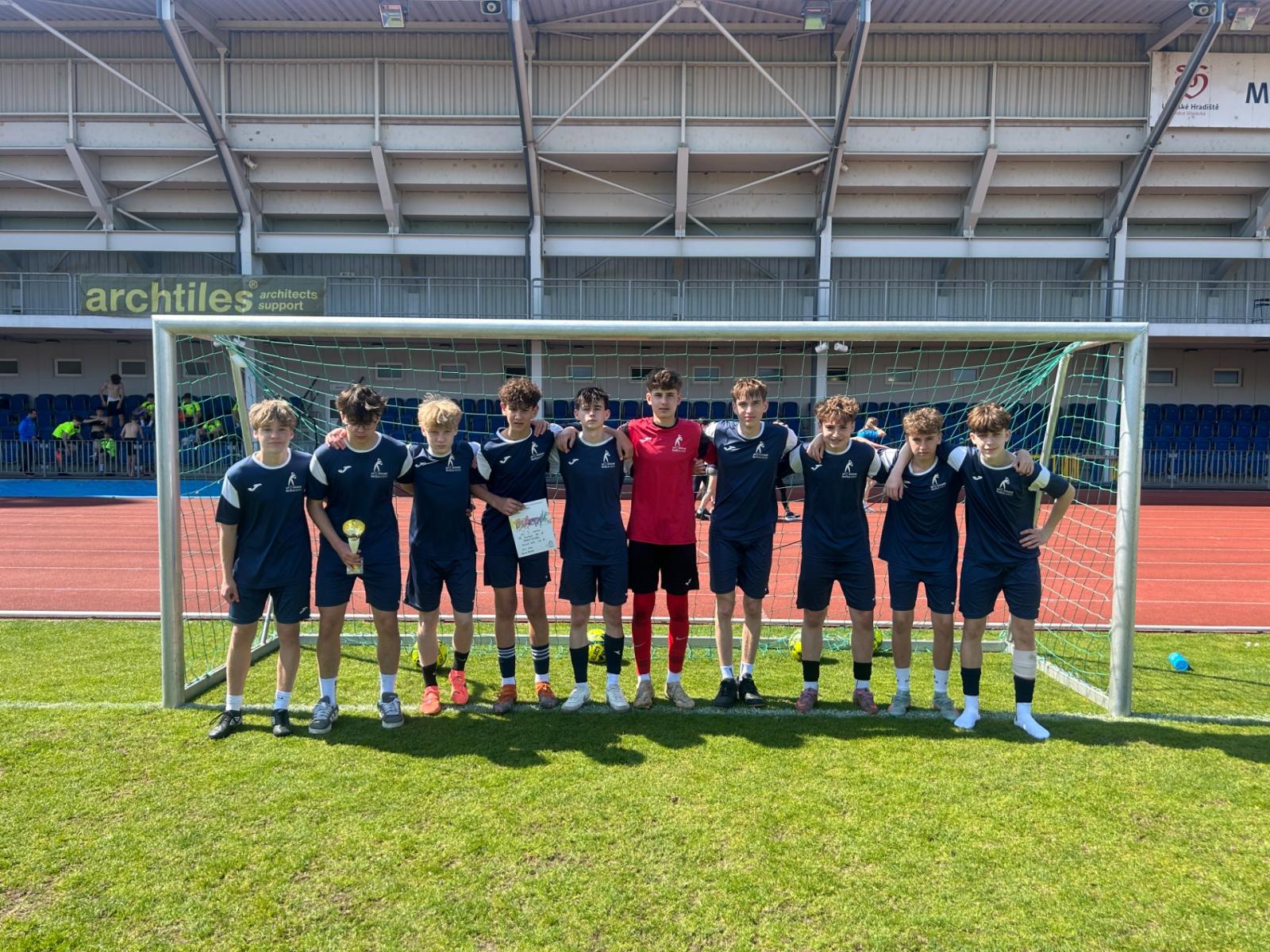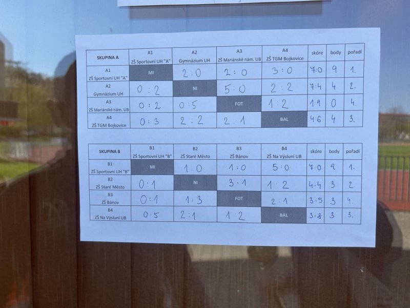 S příchodem jara se opět konal turnaj v minifotbale starších chlapců. V této kategorii měla v okresním kole, které se konalo na domácí půdě, Sportovka hned dva týmy. Kluci z 9.A složení z hráčů 1. FC Slovácko vyhráli skupinu A. Stejně tomu bylo ve skupině B, kde nás reprezentovali fotbalisti ze třídy 9.B, kteří trénují v různých klubech v okolí. Přes výhry v semifinále se pak utkali v rozhodujícím finálovém zápase. Napětí se dalo krájet, ale po bezbrankovém stavu v základní hrací době přišlo na penalty. Jediné překopnutí brány ze strany „béčka“ znamenalo postup našeho A týmu. Gratulujeme klukům z 9.A a přejeme úspěch v dalším kole!