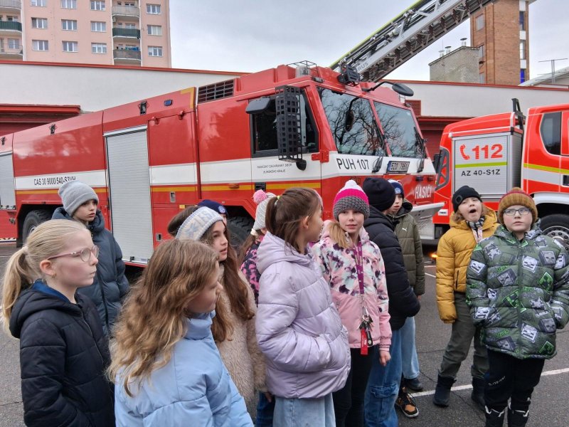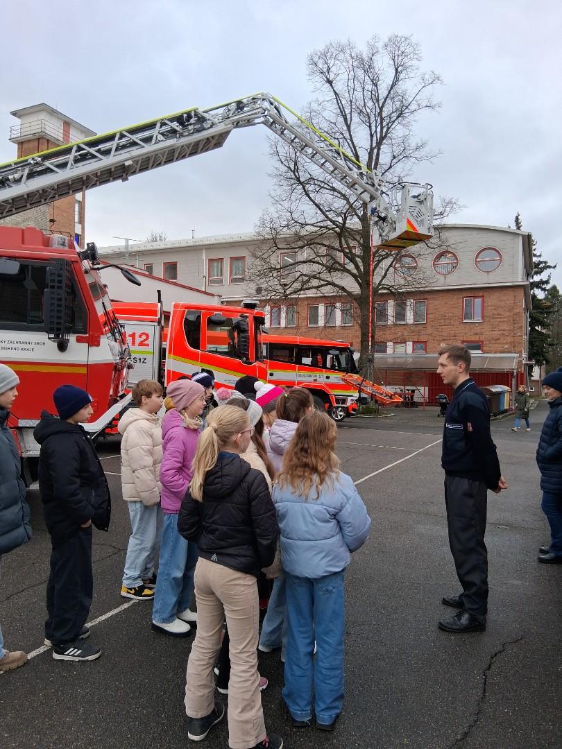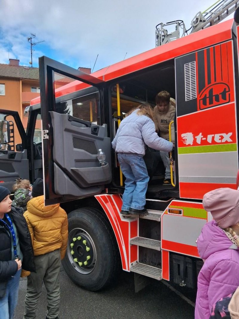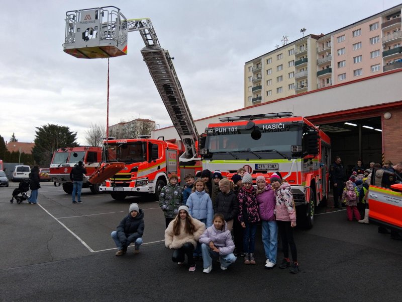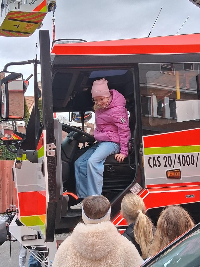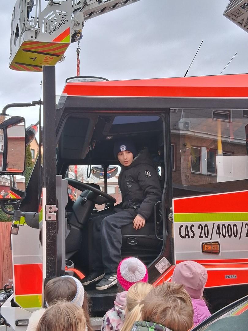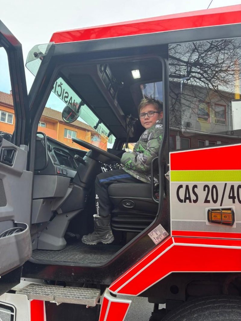 V pátek 13. jsme měli možnost v rámci dne otevřených dveří nahlédnout do zákulisí hasičské stanice v Uherském Hradišti. Ujal se nás velmi ochotný pan Vojtěch Jurásek, který nás provedl zázemím hasičů, ukázal nám jak vypadá poplach a také jsme si mohli sednout do hasičského auta.