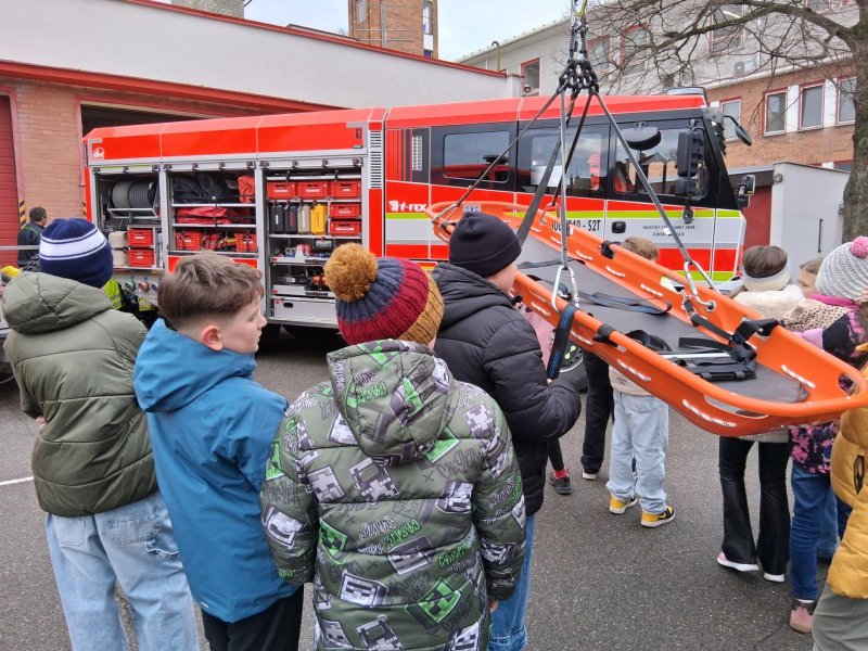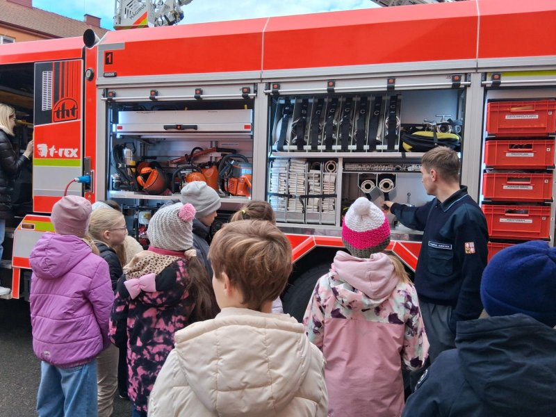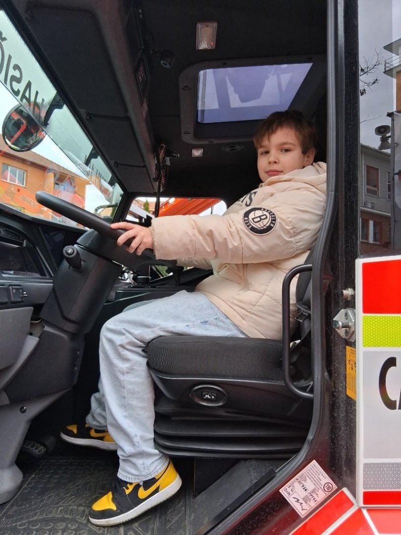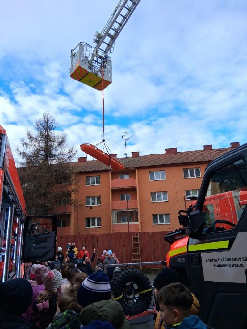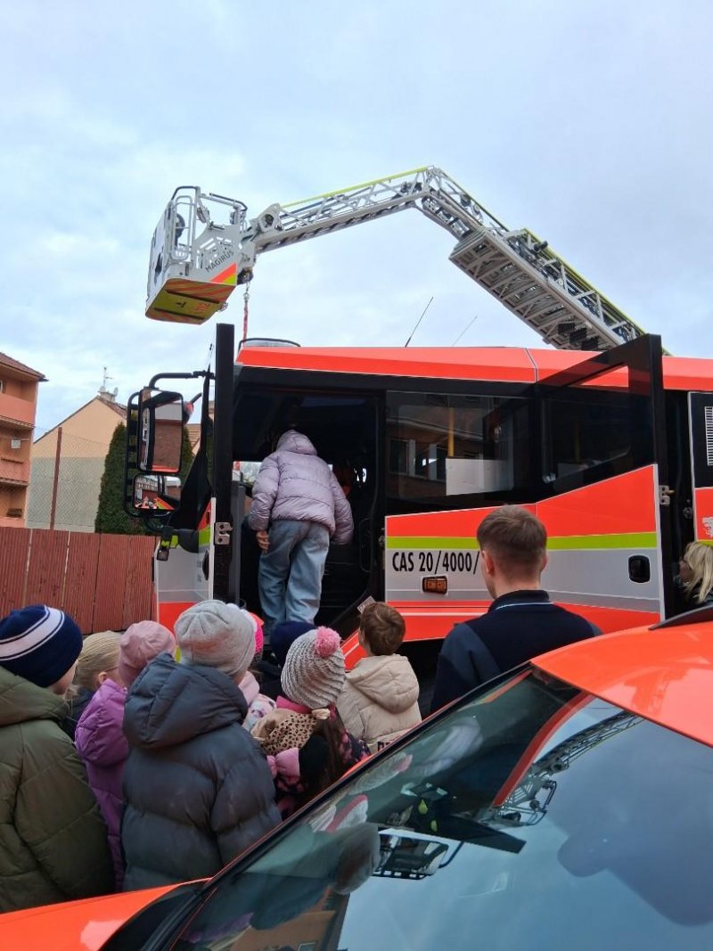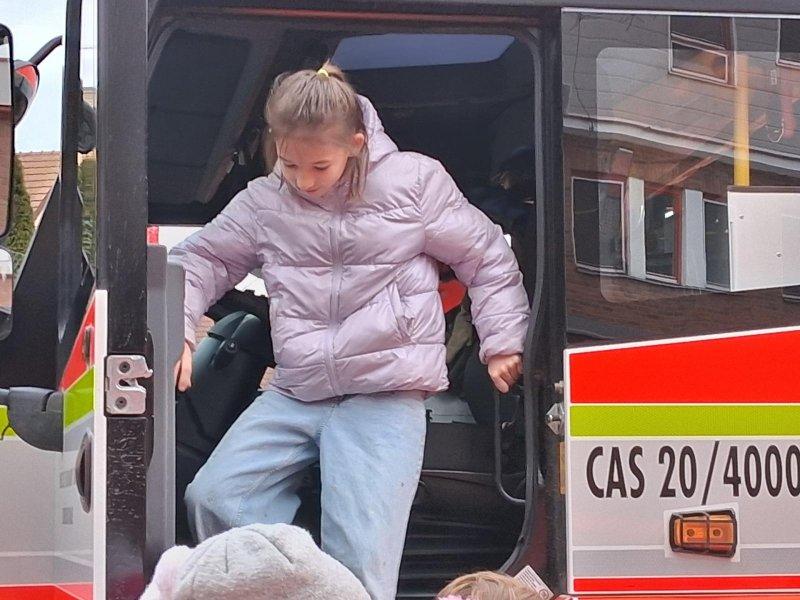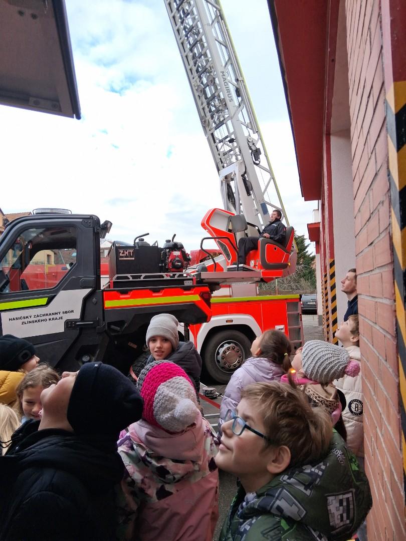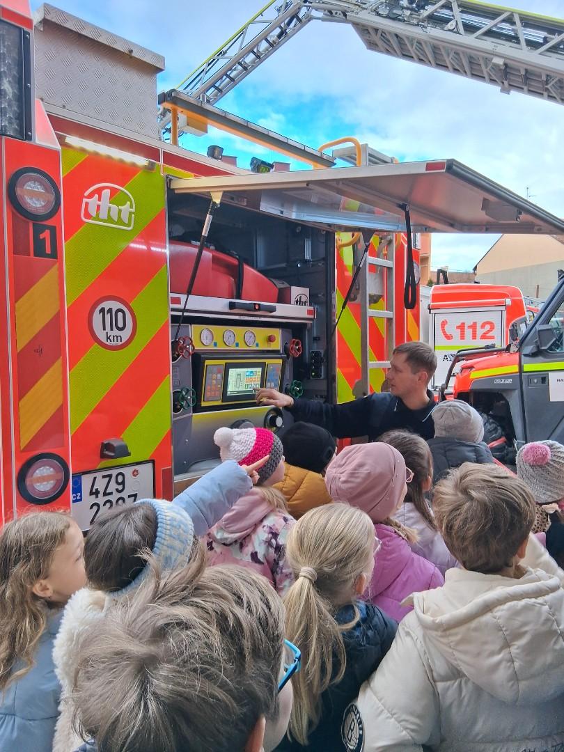 V pátek 13. jsme měli možnost v rámci dne otevřených dveří nahlédnout do zákulisí hasičské stanice v Uherském Hradišti. Ujal se nás velmi ochotný pan Vojtěch Jurásek, který nás provedl zázemím hasičů, ukázal nám jak vypadá poplach a také jsme si mohli sednout do hasičského auta.