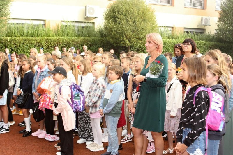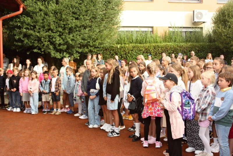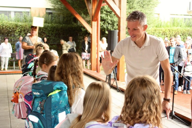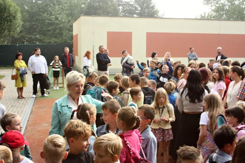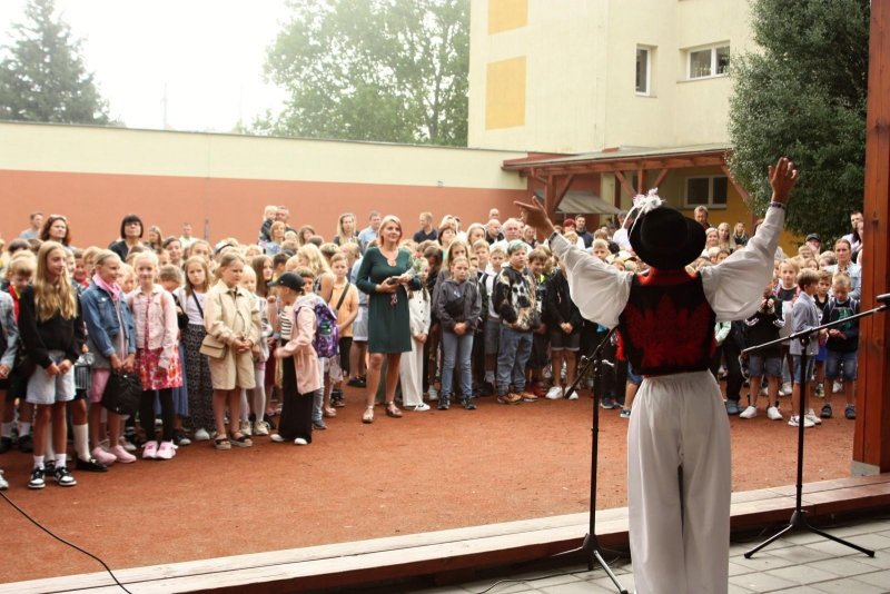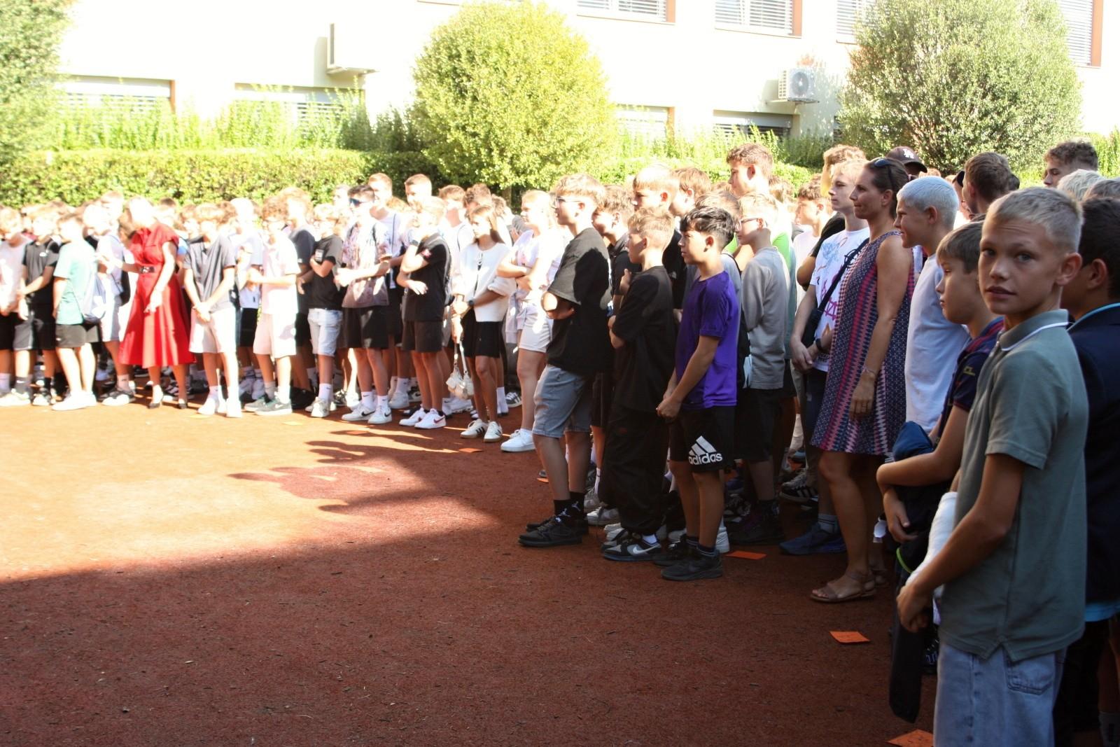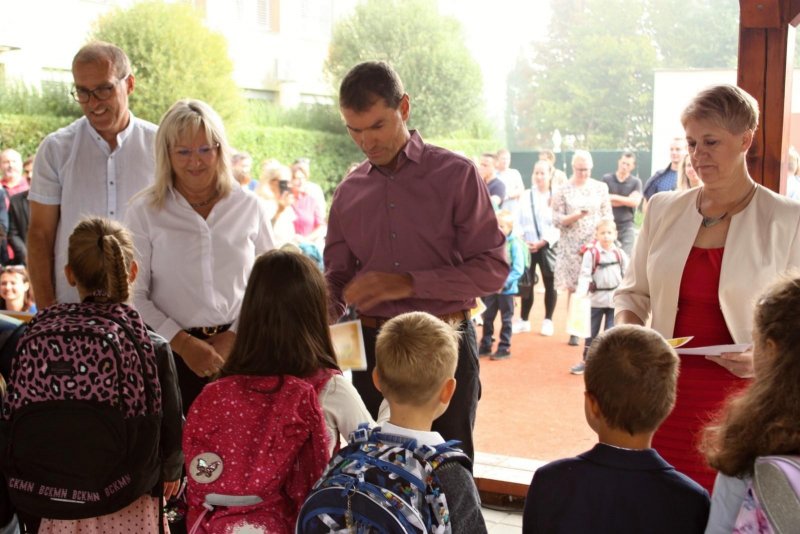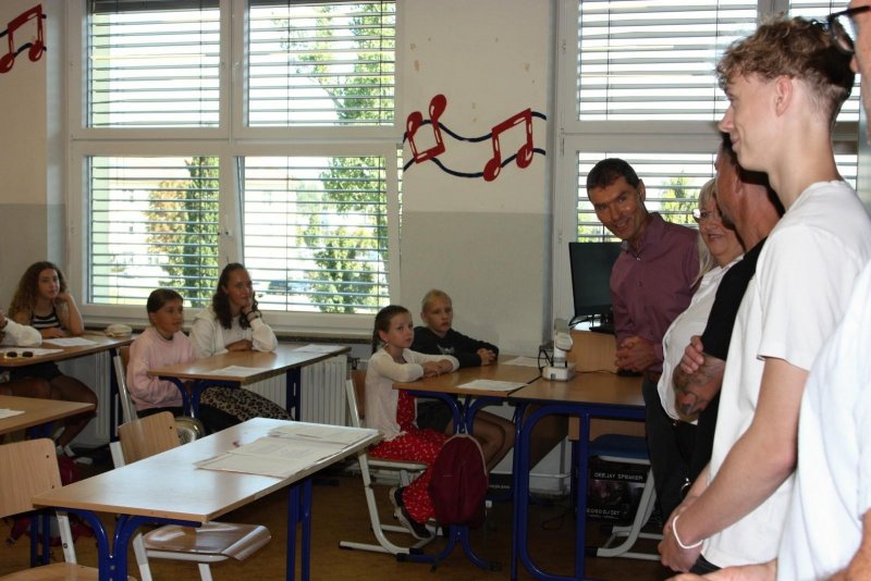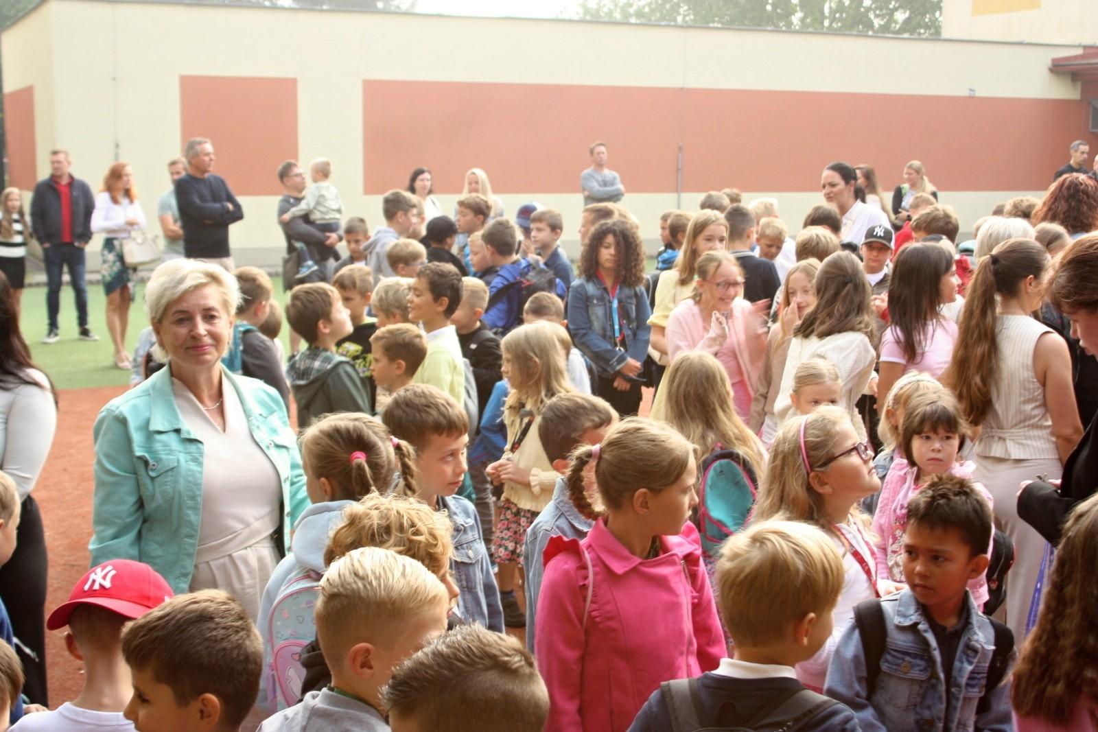Barunka Janků a Damián Prášek v úvodu zazpívali na lidovou notu. Poté již všechny žáky a pedagogy přivítala paní místostarostka Pavlína Jagošová, pan ředitel a zástupci 1. FC Slovácko – trenér Jan Kameník, šéftrenér mládeže pan Marek Hábl, kapitán mužů Michal Trávník a hráč Milan Petržela. Letos se poprvé našeho zahájení zúčastnil i vynikající atlet, odchovanec uherskohradišťské atletiky a náš bývalý žák, Petr Meindlschmid, který se stal nedávno juniorským mistrem Evropy ve skoku do dálky.