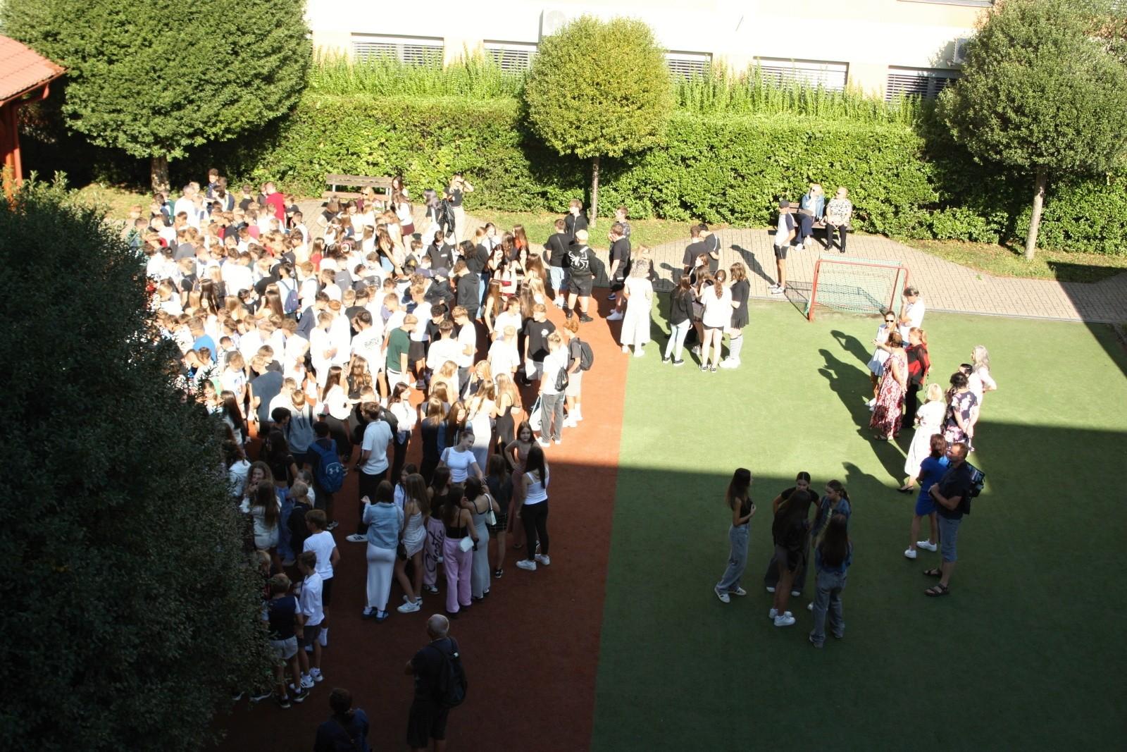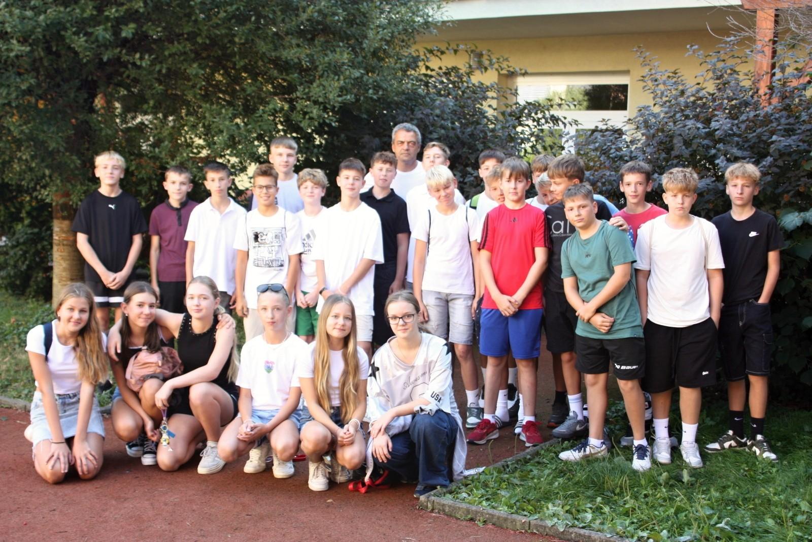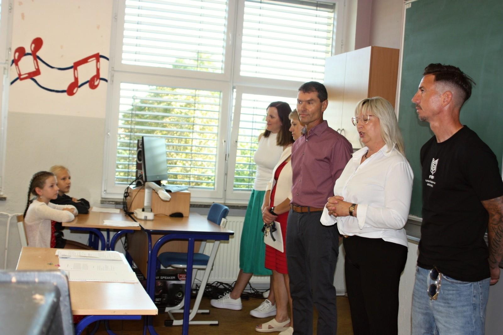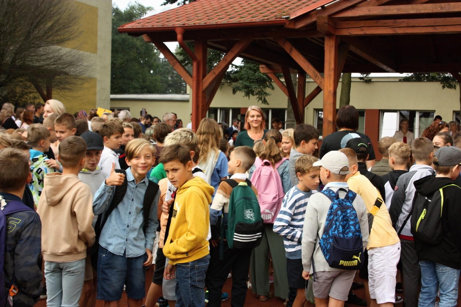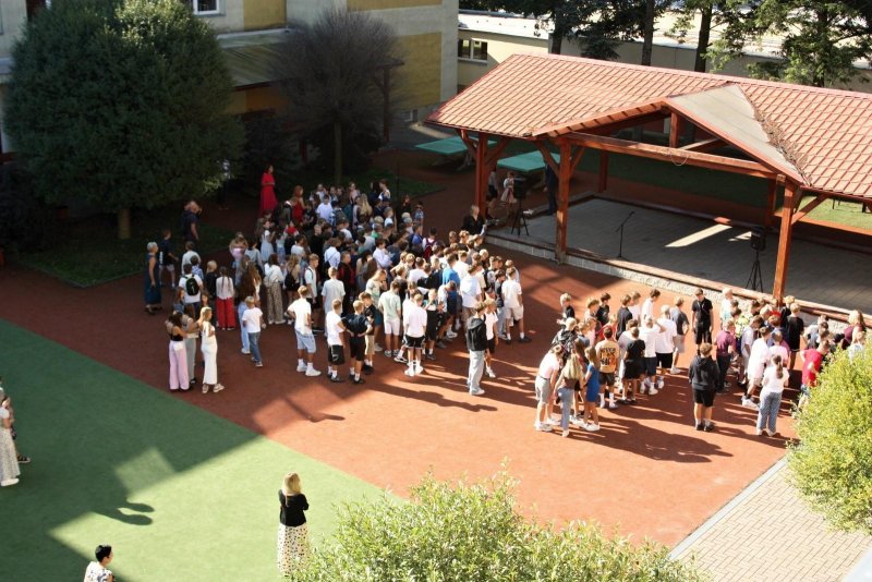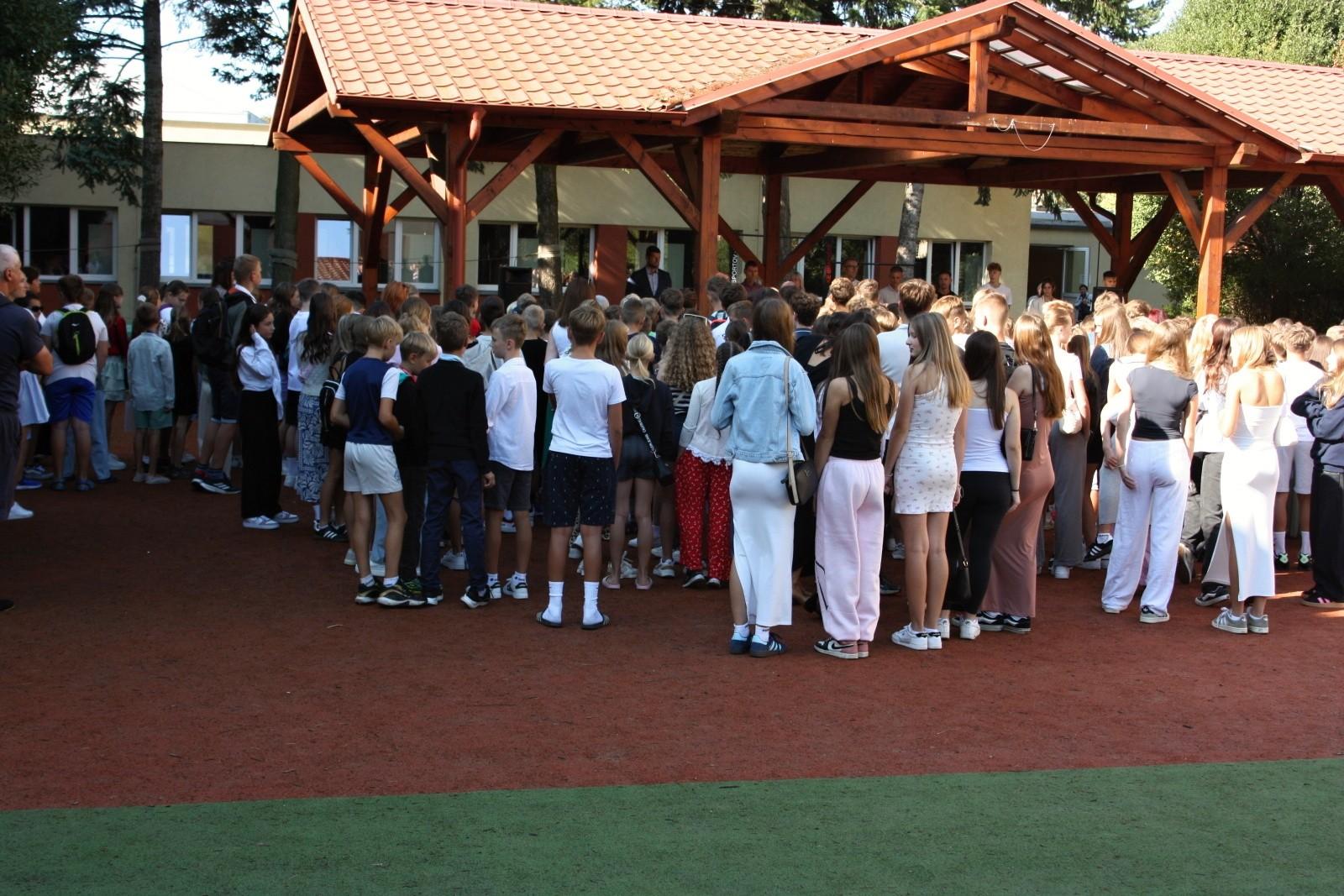 Barunka Janků a Damián Prášek v úvodu zazpívali na lidovou notu. Poté již všechny žáky a pedagogy přivítala paní místostarostka Pavlína Jagošová, pan ředitel a zástupci 1. FC Slovácko – trenér Jan Kameník, šéftrenér mládeže pan Marek Hábl, kapitán mužů Michal Trávník a hráč Milan Petržela. Letos se poprvé našeho zahájení zúčastnil i vynikající atlet, odchovanec uherskohradišťské atletiky a náš bývalý žák, Petr Meindlschmid, který se stal nedávno juniorským mistrem Evropy ve skoku do dálky.