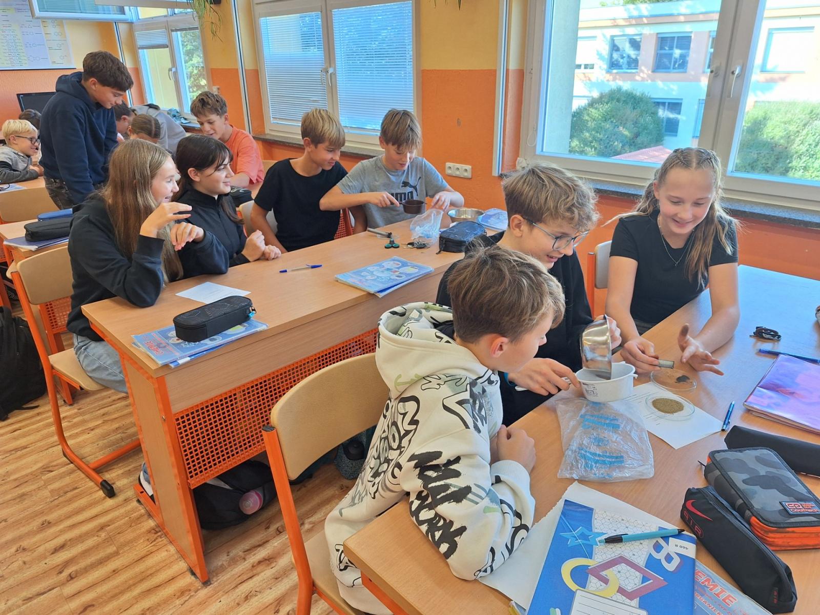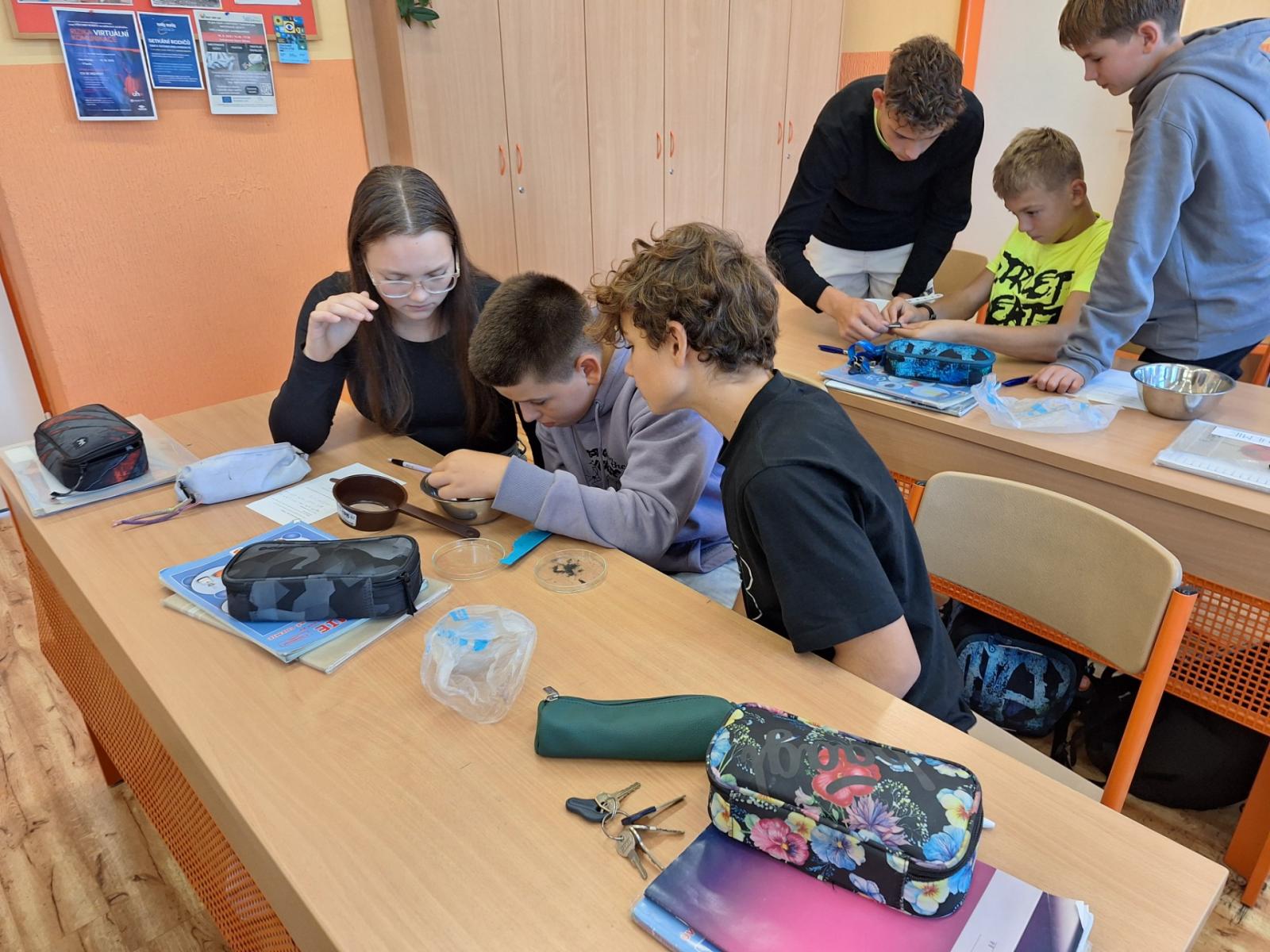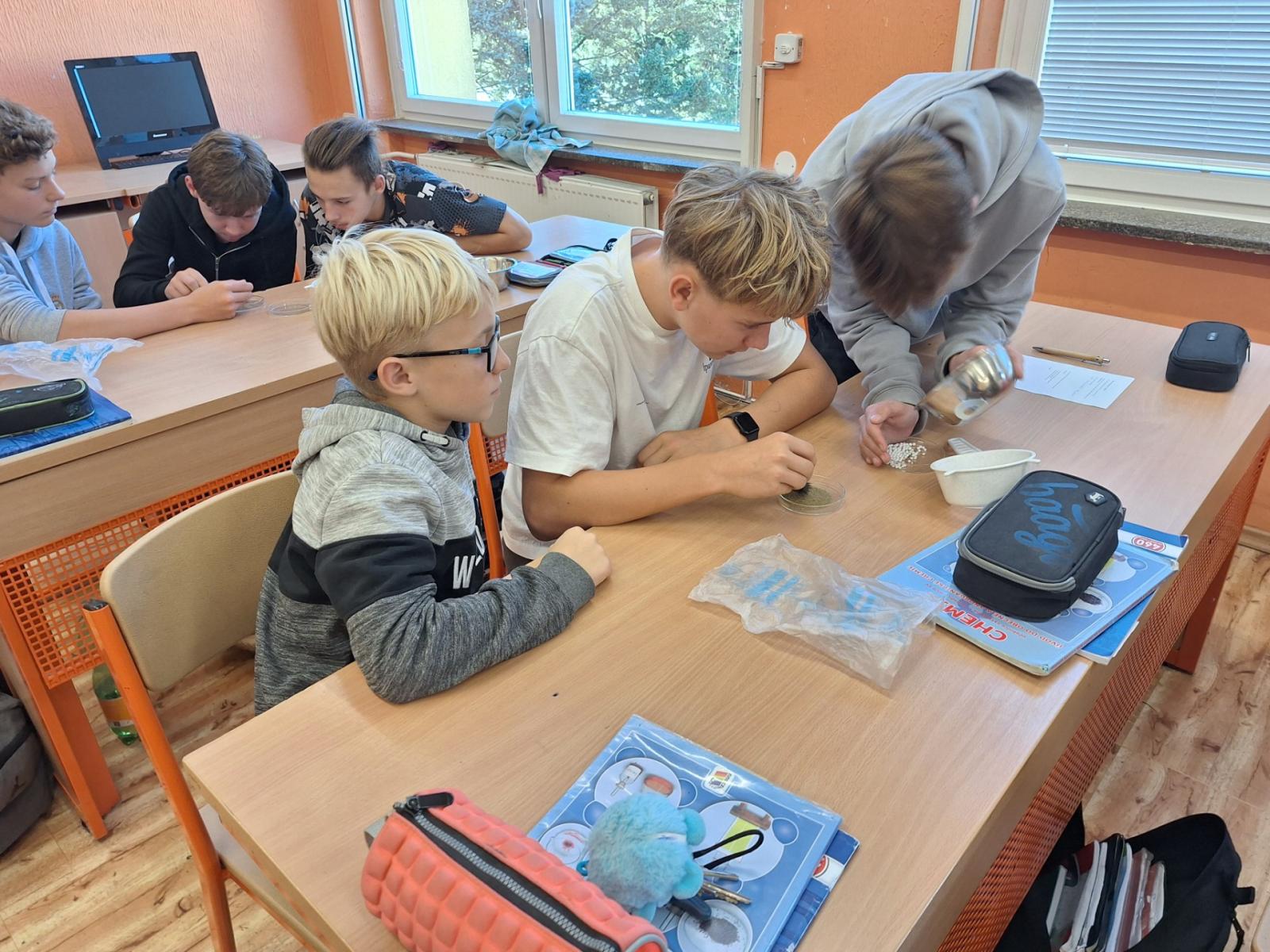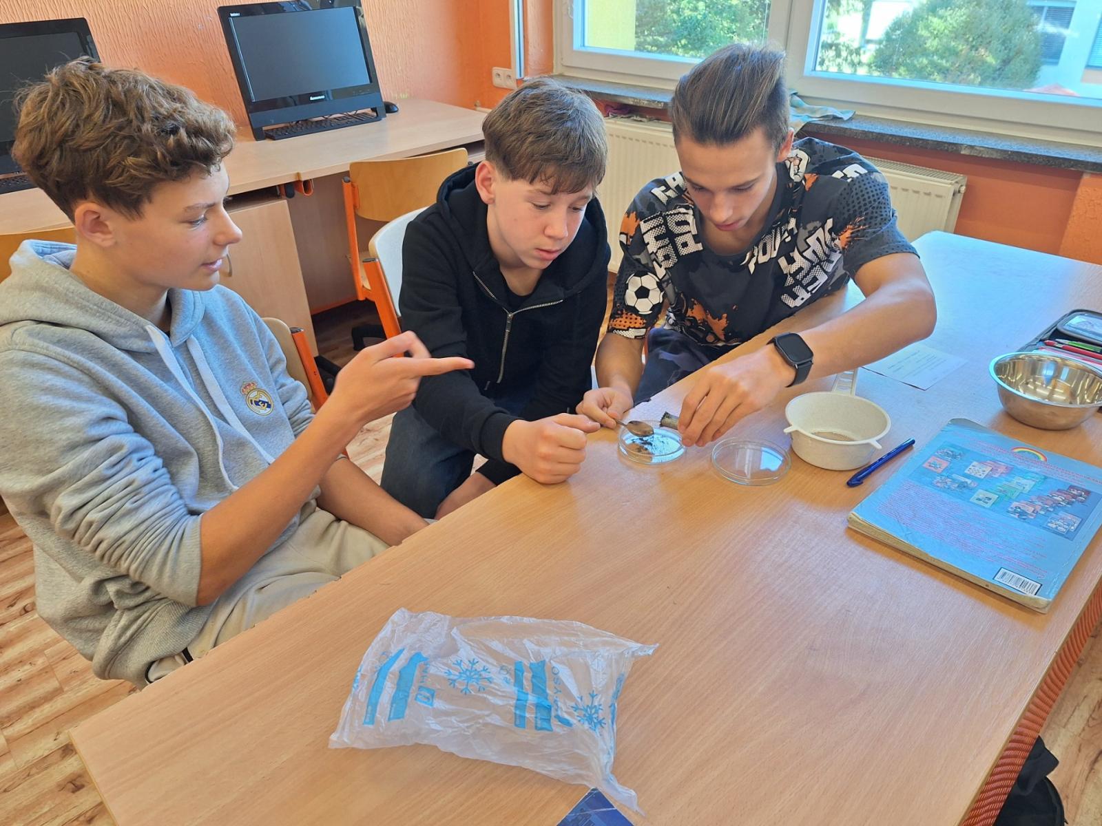 Oddělujeme železné piliny, písek a polystyrenové kuličky