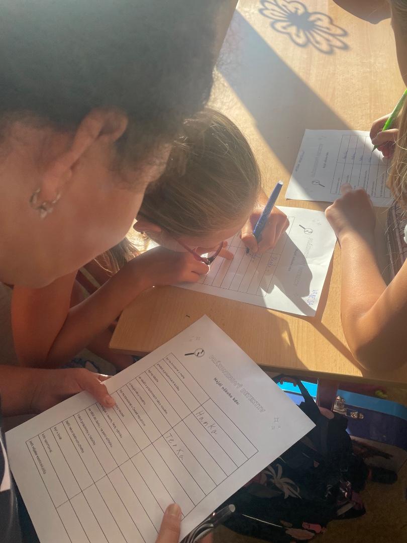 Školní rok jsme odstartovali hravou aktivitou „Prázdninový detektiv“. Děti pátraly po zážitcích svých spolužáků a nakonec jsme je sdíleli společně v kruhu na koberci. Zároveň jsme s radostí přivítali dva nové spolužáky, kteří se k nám přidali. Těšíme se na společná dobrodružství!