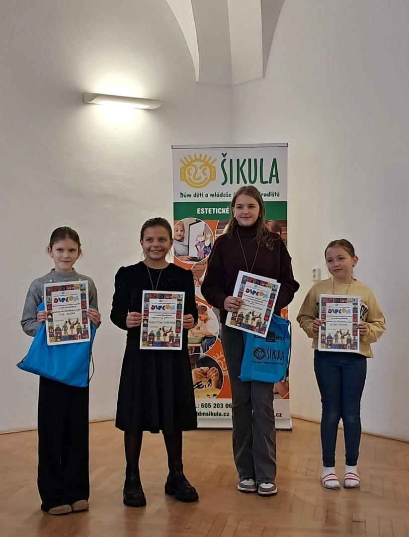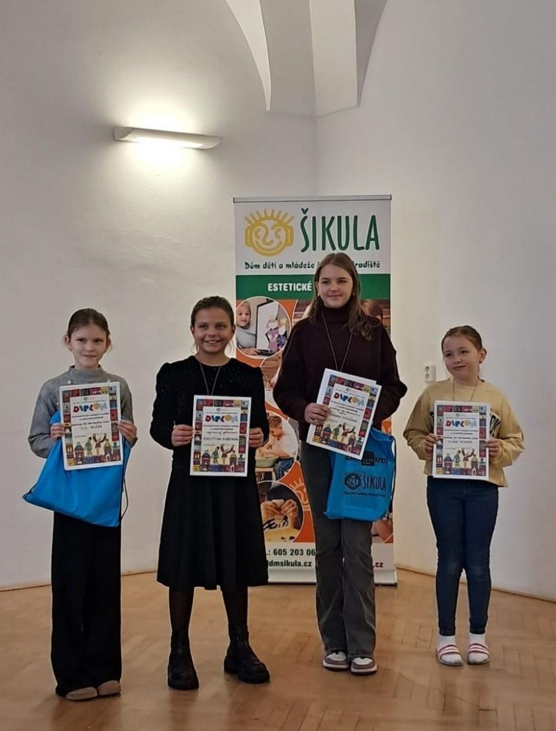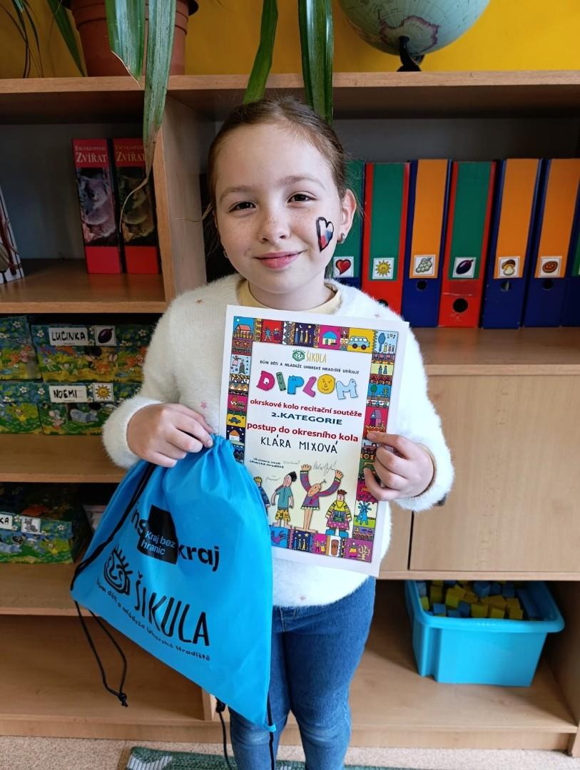 Přesto slavíme jednu postupující. V okresním kole v Uherském Brodě bude naši školu reprezentovat žákyně 4. B Klárka Mixová.