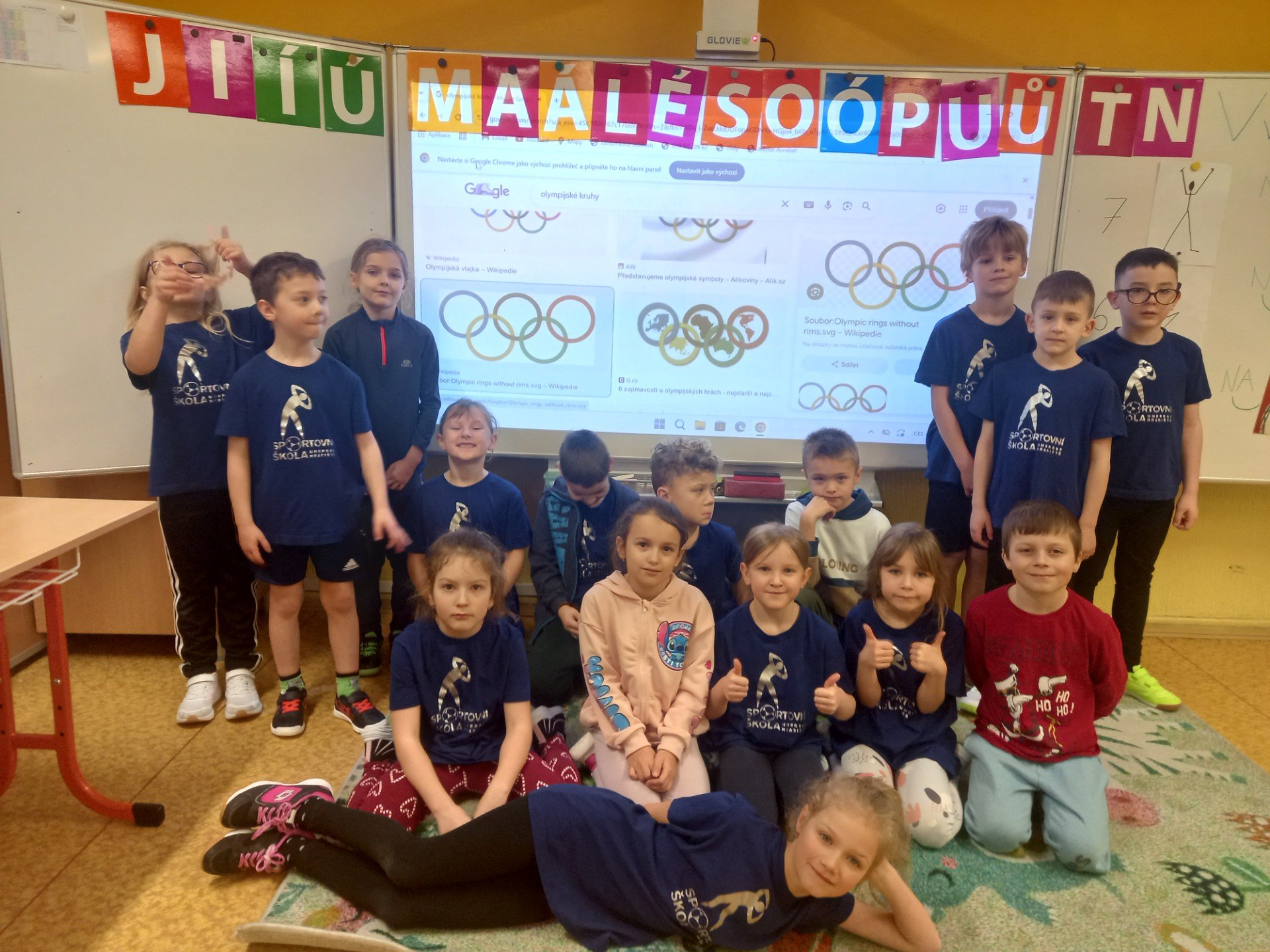 Udělali jsme si malou olympiáda i my u nás v tělocvičně. Překážková dráha na čas. Připomenutí zimní olympiády a významu olympijských kruhů. A taky Celestýnka se svým pohárem z BASEBALL CUPU.